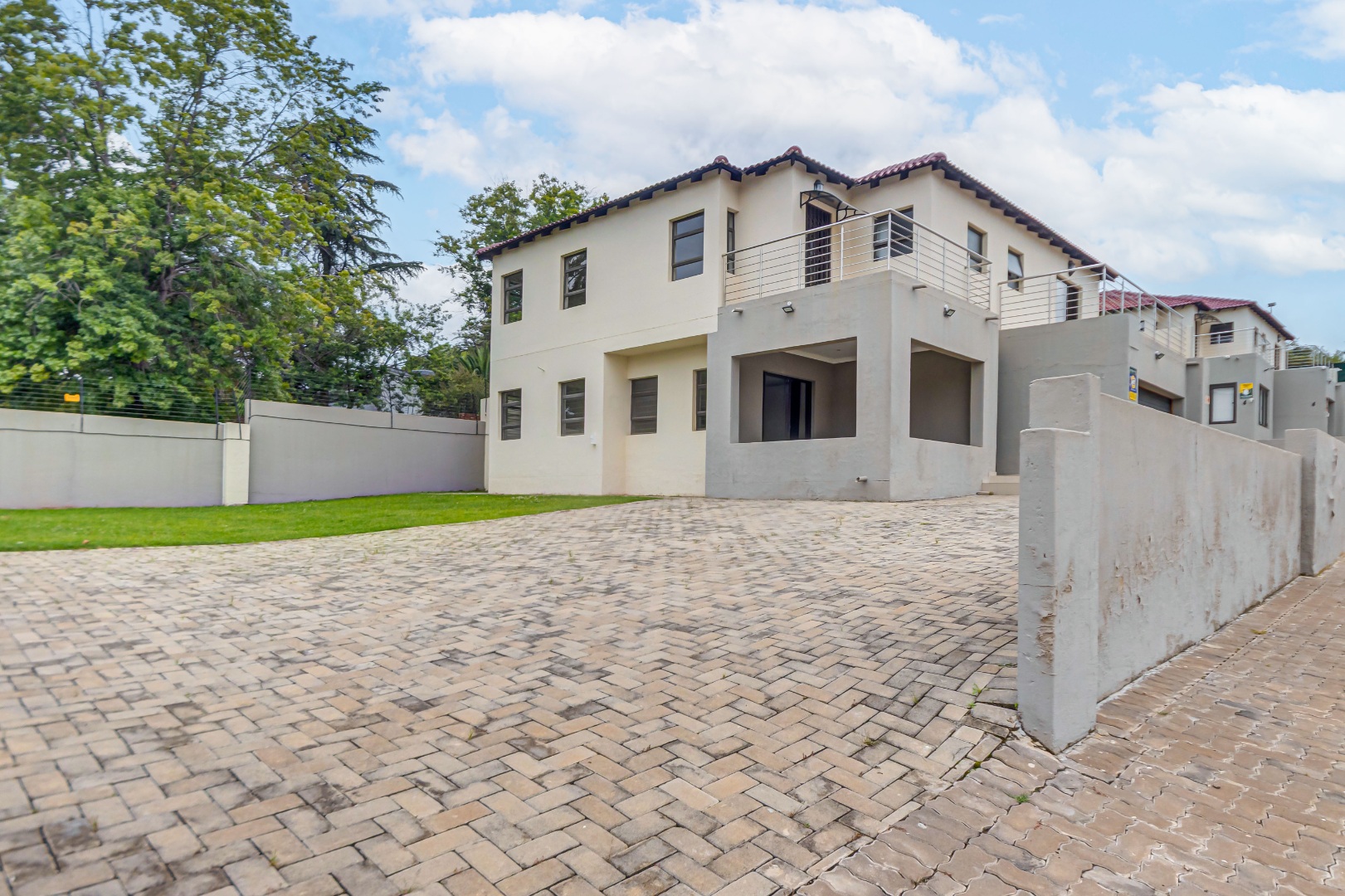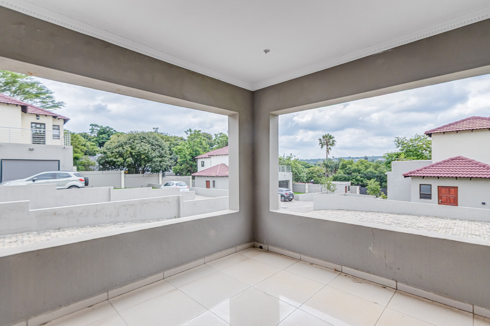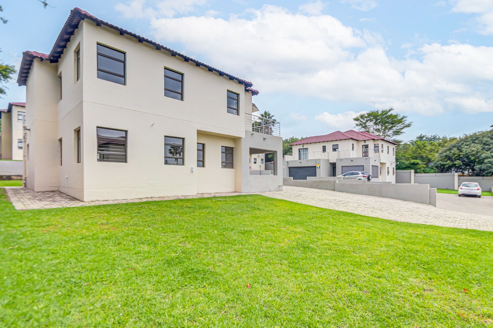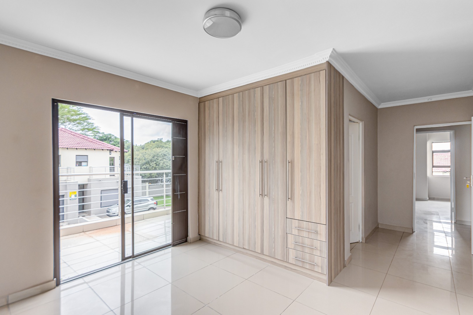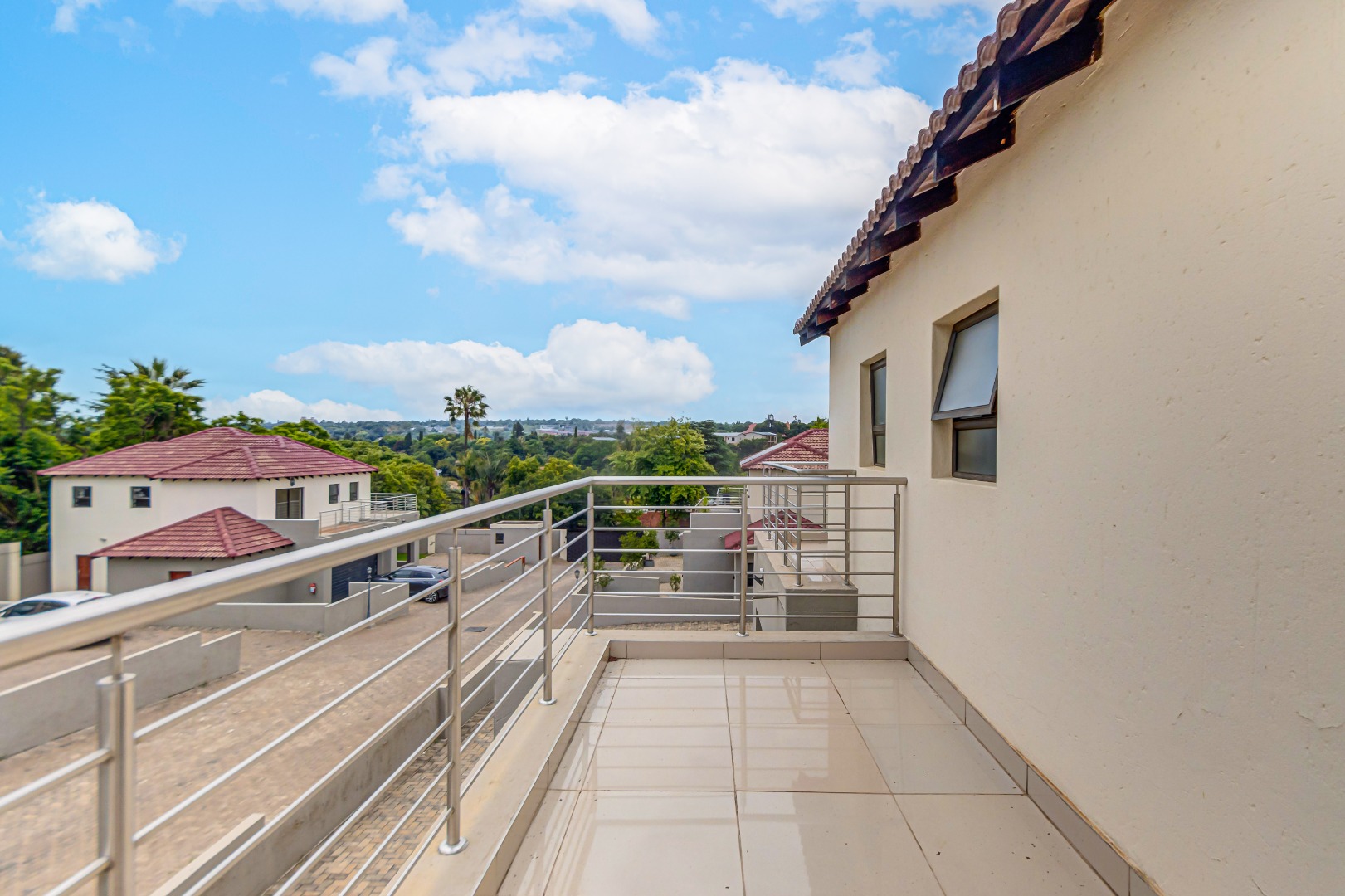 Upstairs, you’ll find three generously sized en-suite bedrooms. The main bedroom is a true retreat, offering his-and-her basins and ample cupboard space. The second and third bedrooms both open onto private balconies, adding to the sense of space and comfort.