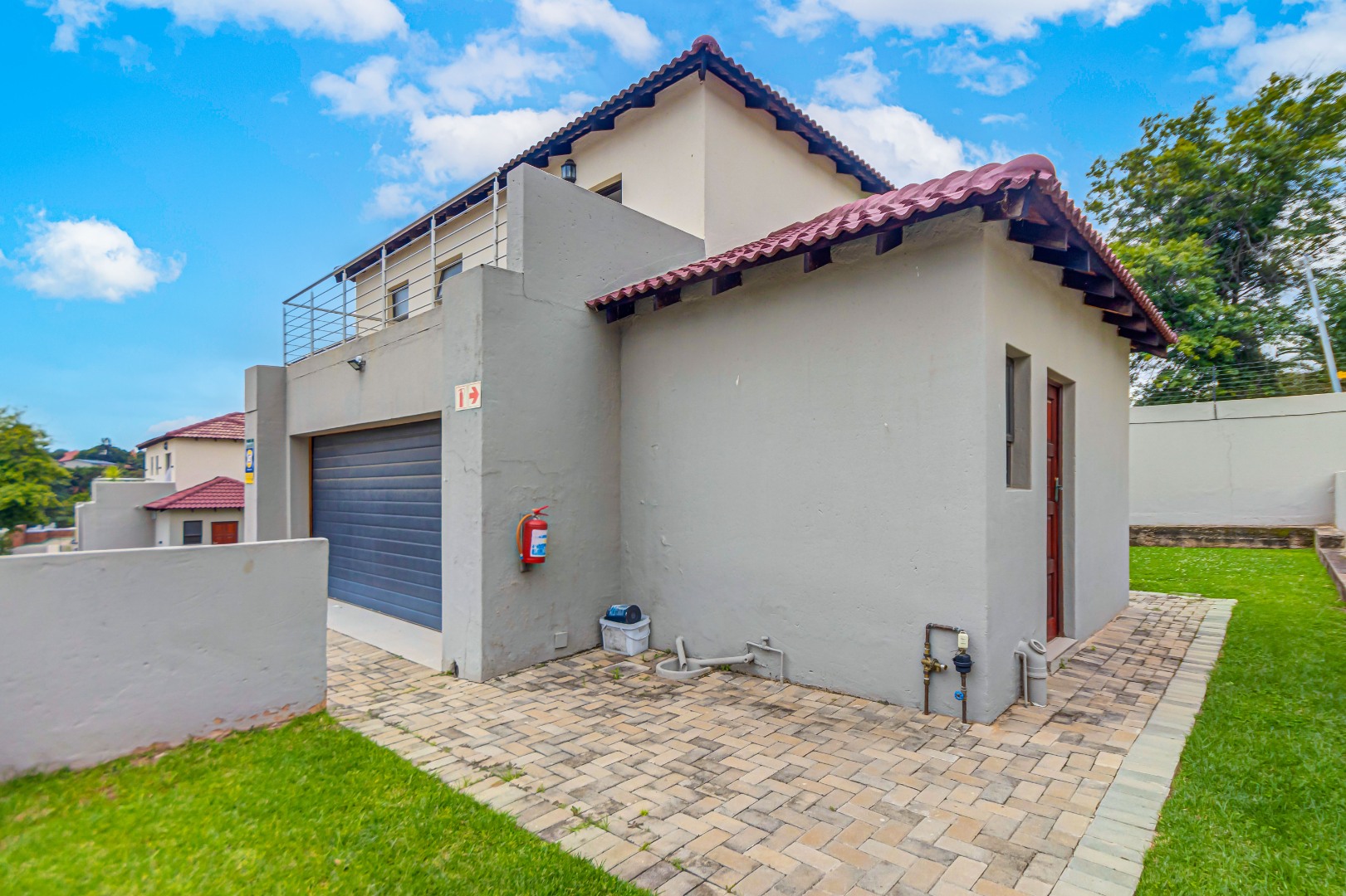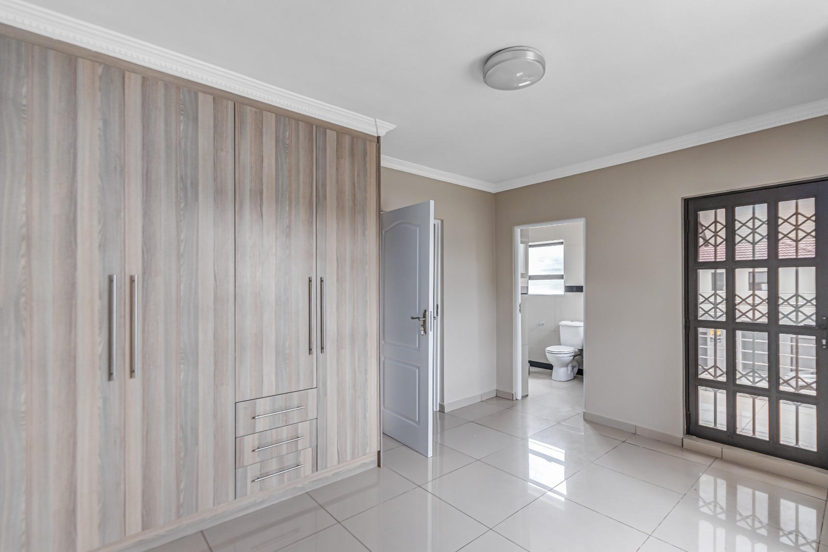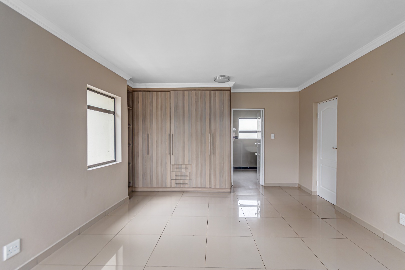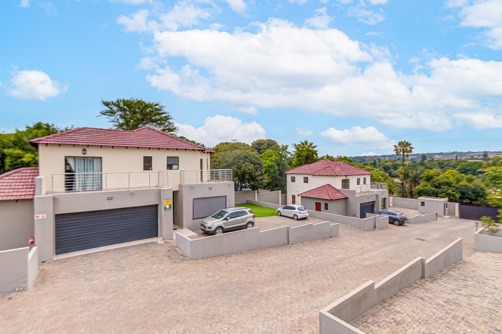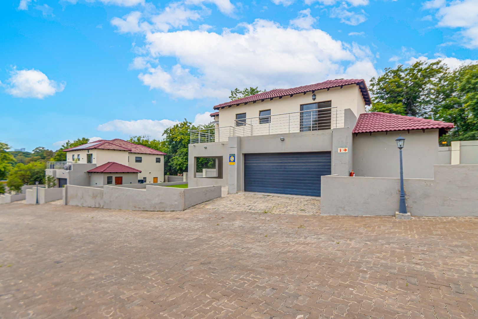 Upstairs, you’ll find three generously sized en-suite bedrooms. The main bedroom is a true retreat, offering his-and-her basins and ample cupboard space. The second and third bedrooms both open onto private balconies, adding to the sense of space and comfort.