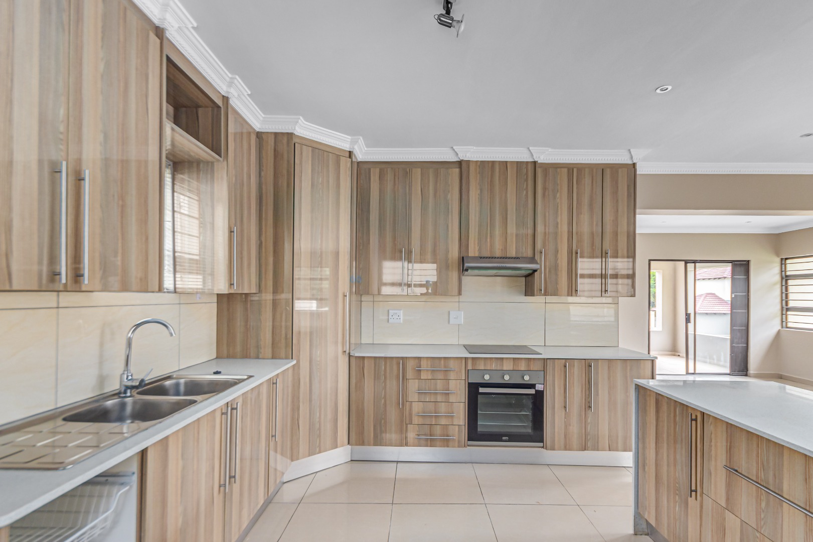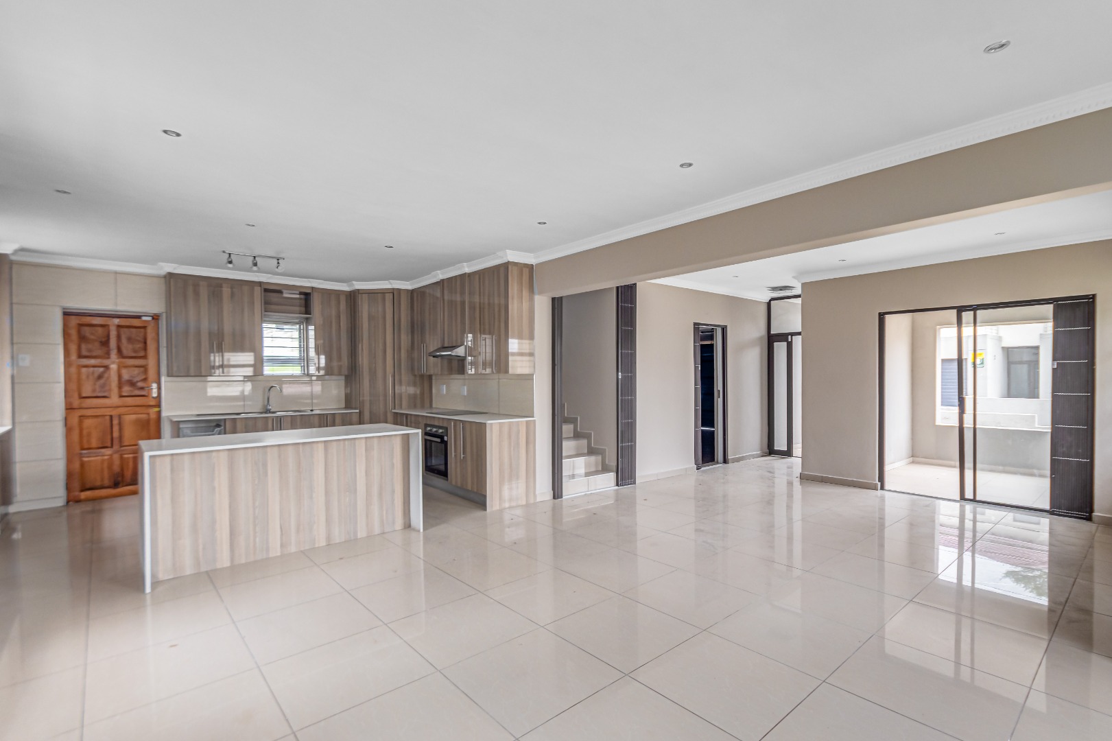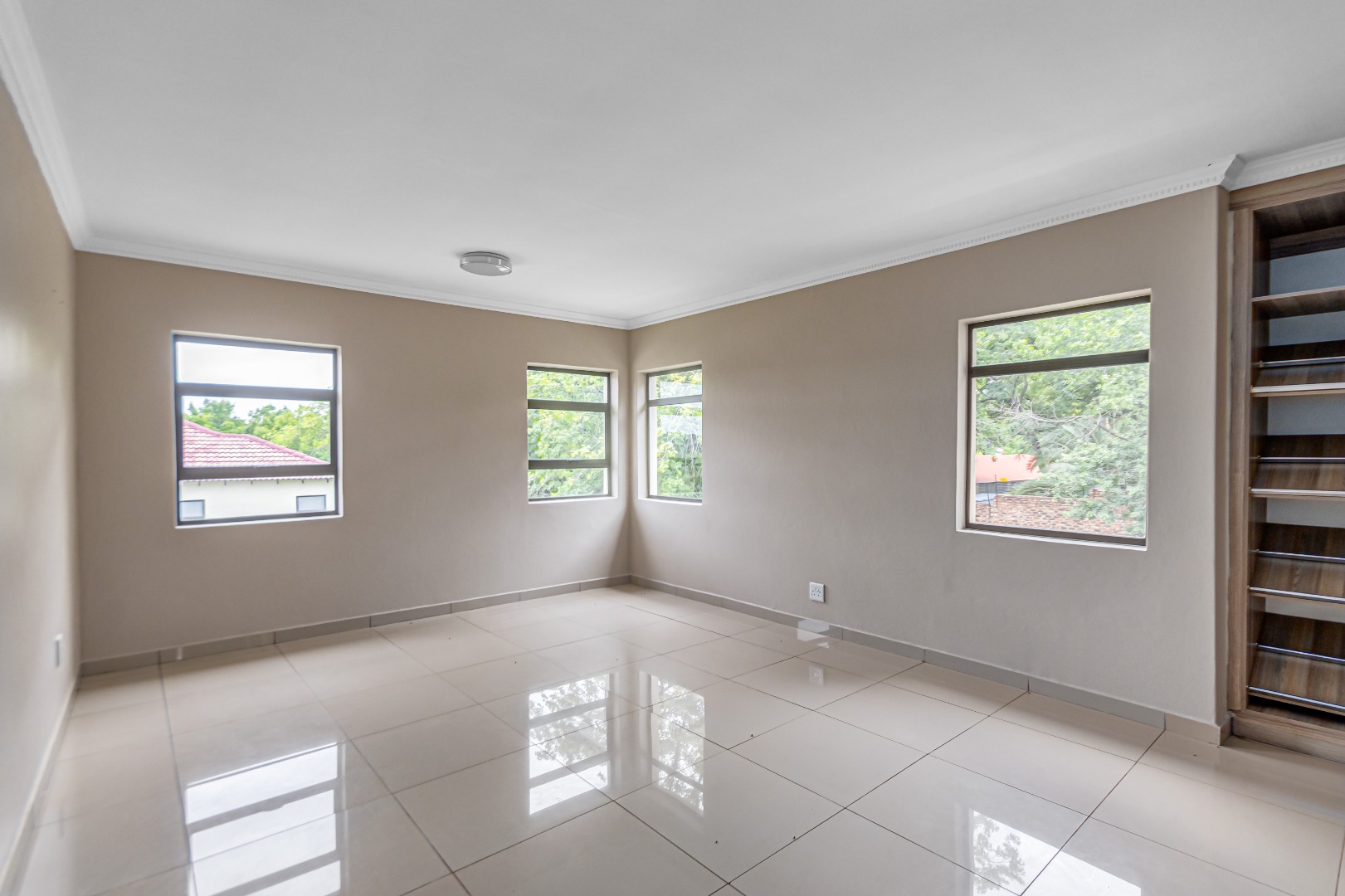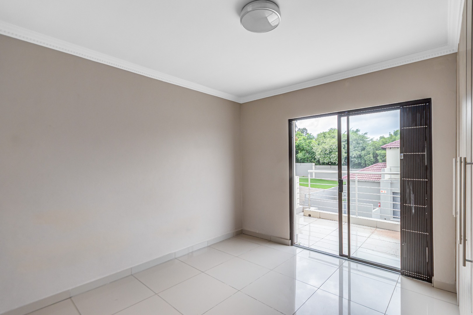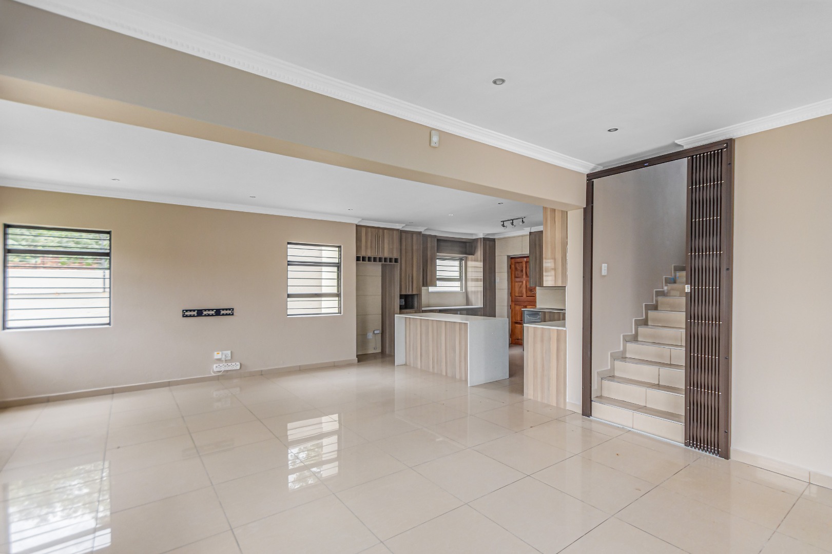 Upstairs, you’ll find three generously sized en-suite bedrooms. The main bedroom is a true retreat, offering his-and-her basins and ample cupboard space. The second and third bedrooms both open onto private balconies, adding to the sense of space and comfort.