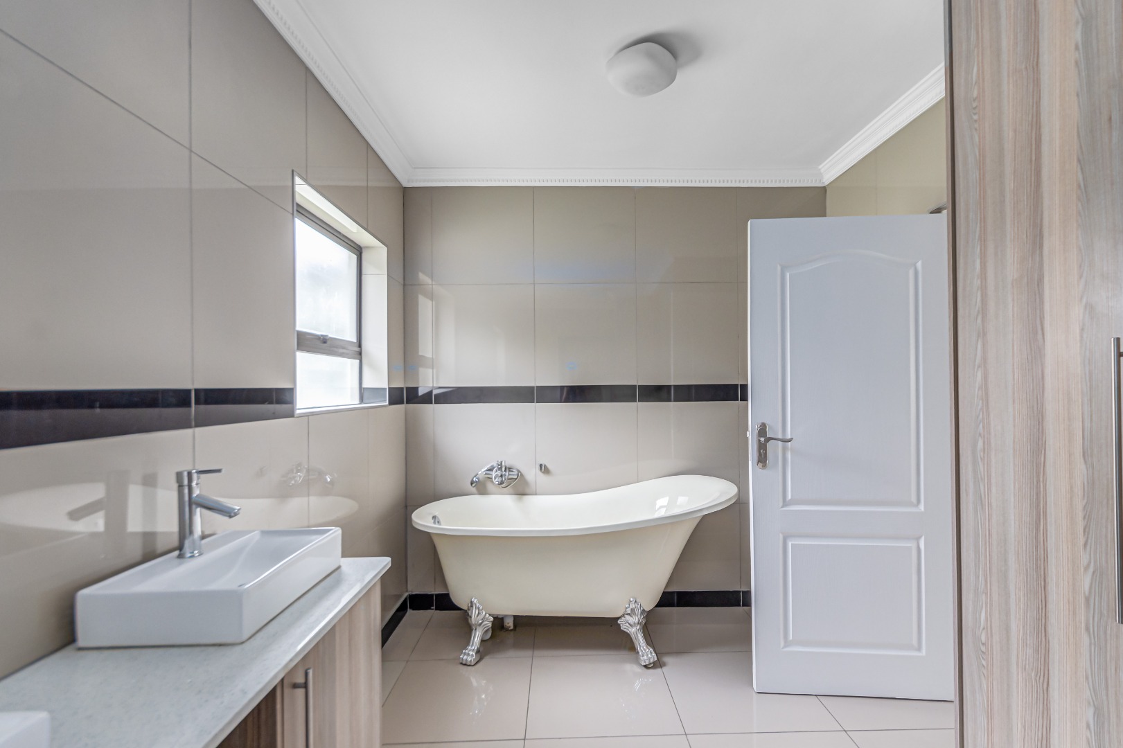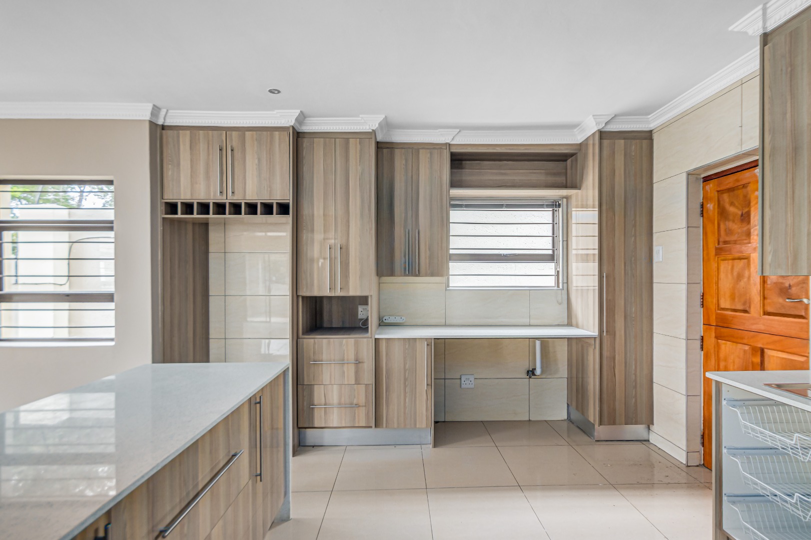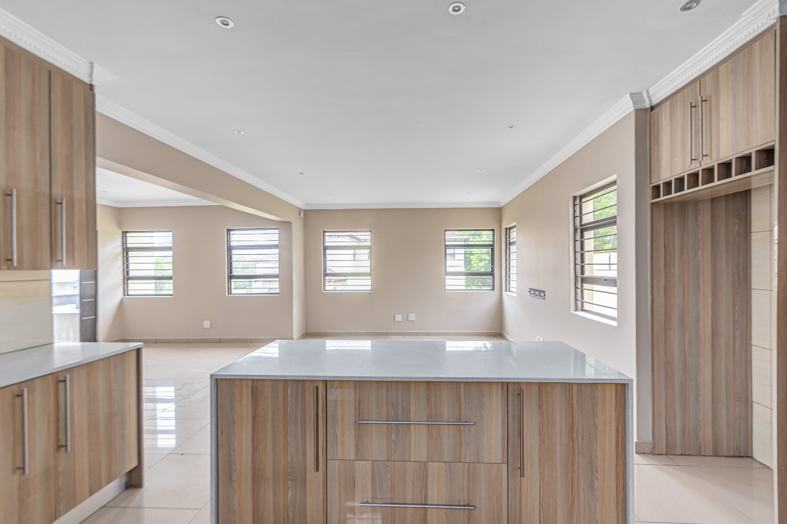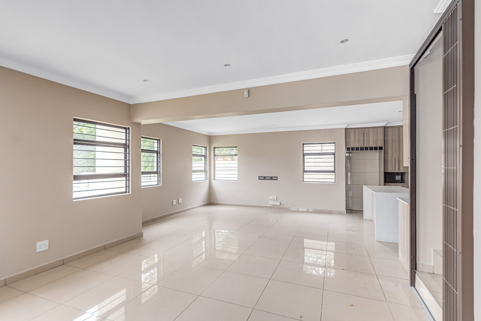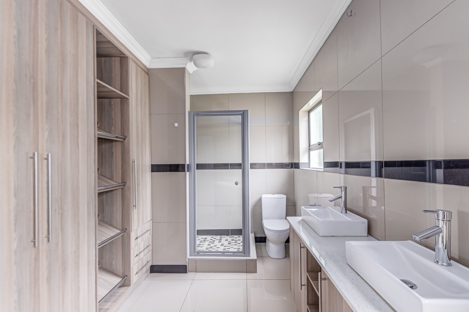 Upstairs, you’ll find three generously sized en-suite bedrooms. The main bedroom is a true retreat, offering his-and-her basins and ample cupboard space. The second and third bedrooms both open onto private balconies, adding to the sense of space and comfort.