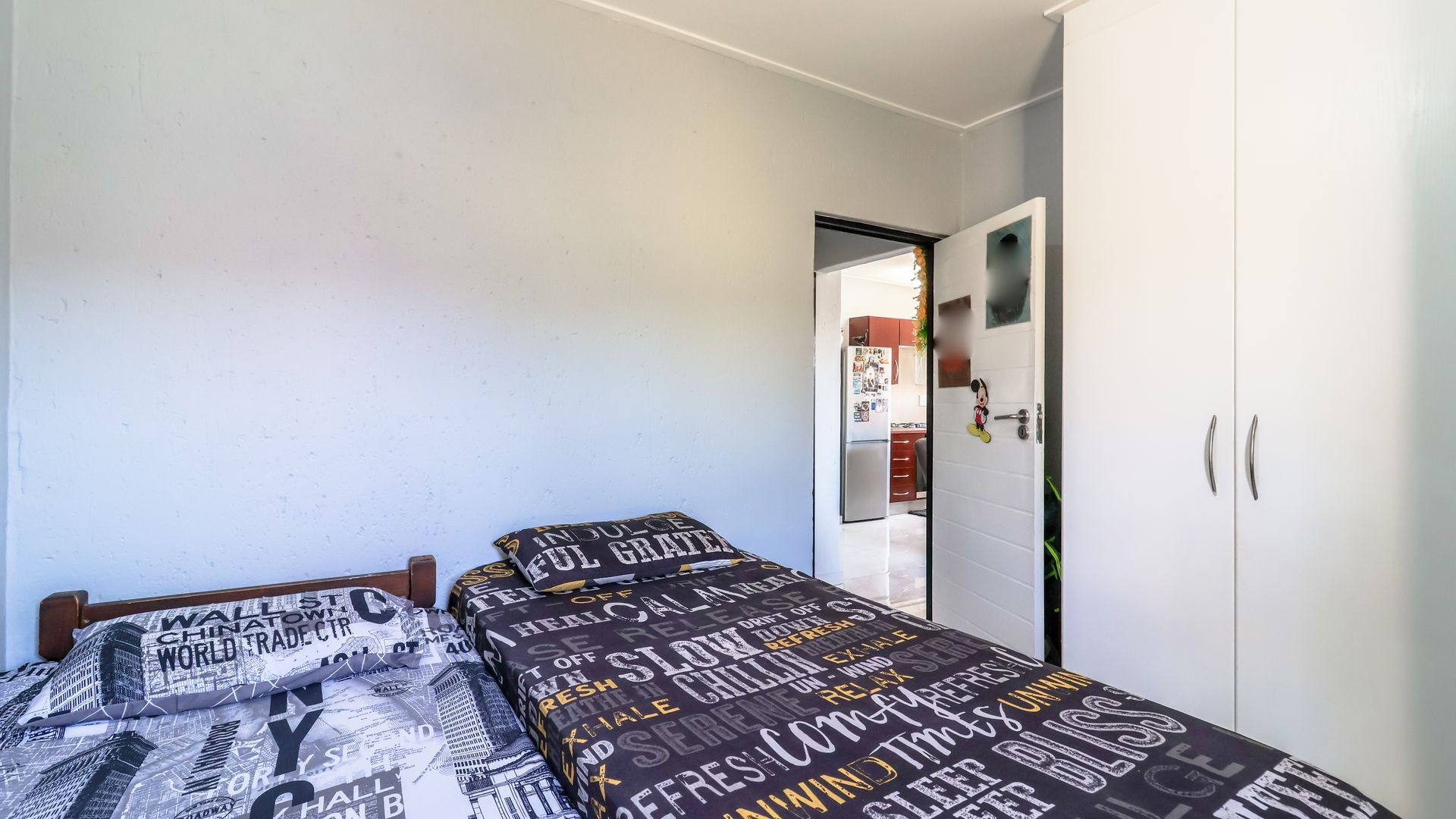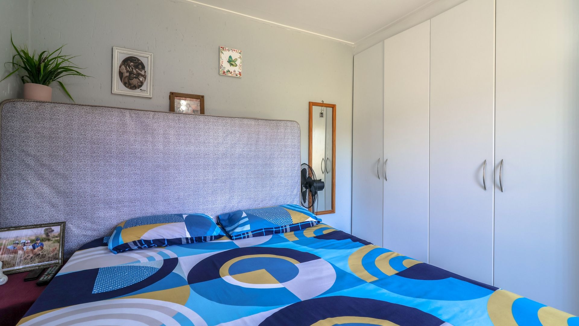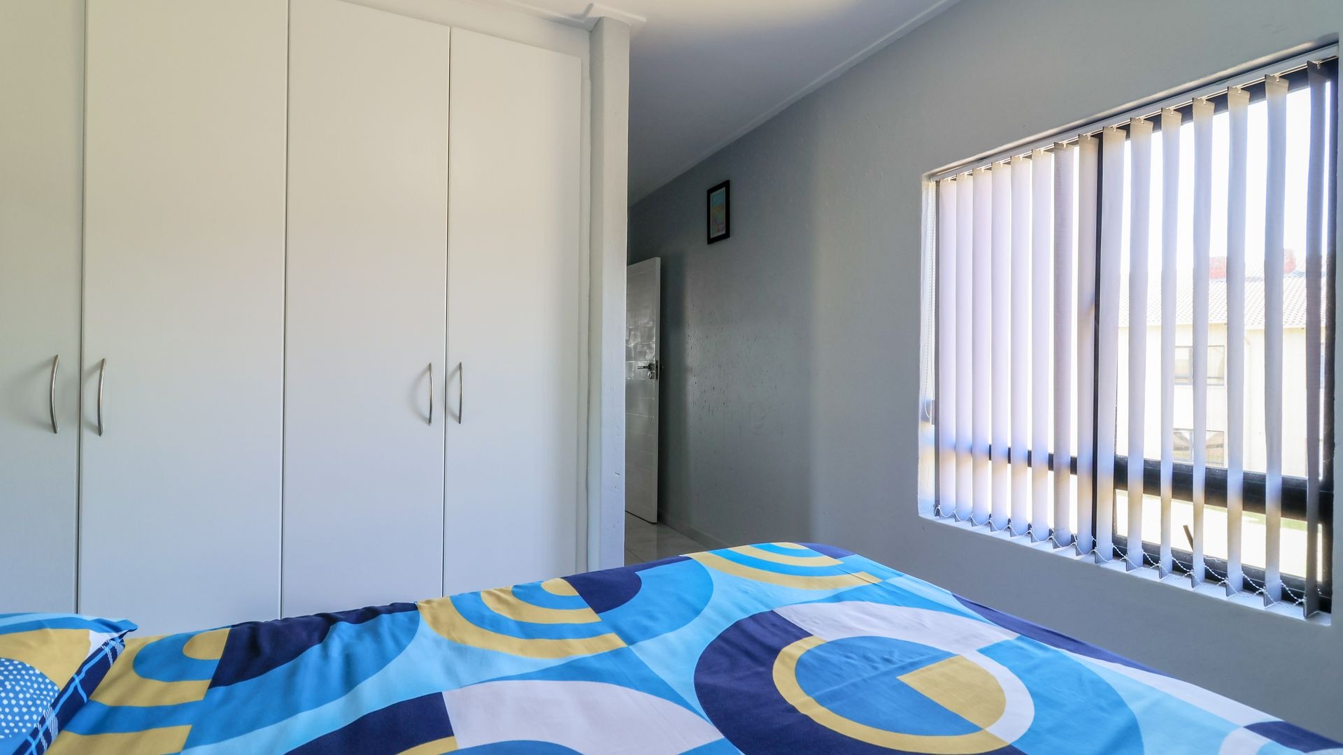 Tiled lounge and dining area , beautiful porcelain tiles with sliding door to private balcony. Computer nook in corner of lounge/work from home area. Open-plan kitchen with space for a fridge, 2 appliances, lots of cupboards, double sink, water purifier, under cover oven and gas hob . Main bedroom, tiled 4 BIC. MES has bath, shower in bath, loo and vanity. 2nd bedroom, tiled, 3 BIC, Bathroom has bath, loo and vanity. Blinds throughout. Mosquito nets on windows. Single carport. 1 open allocated parking. Prepaid electricity. This precinct has its own pool.
