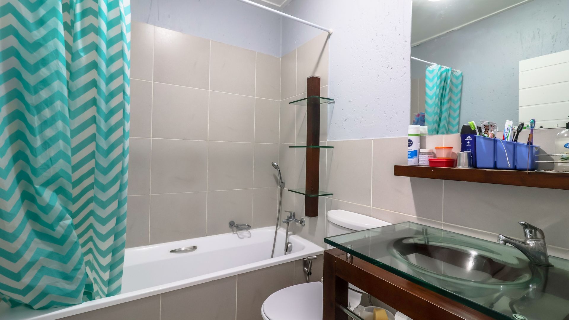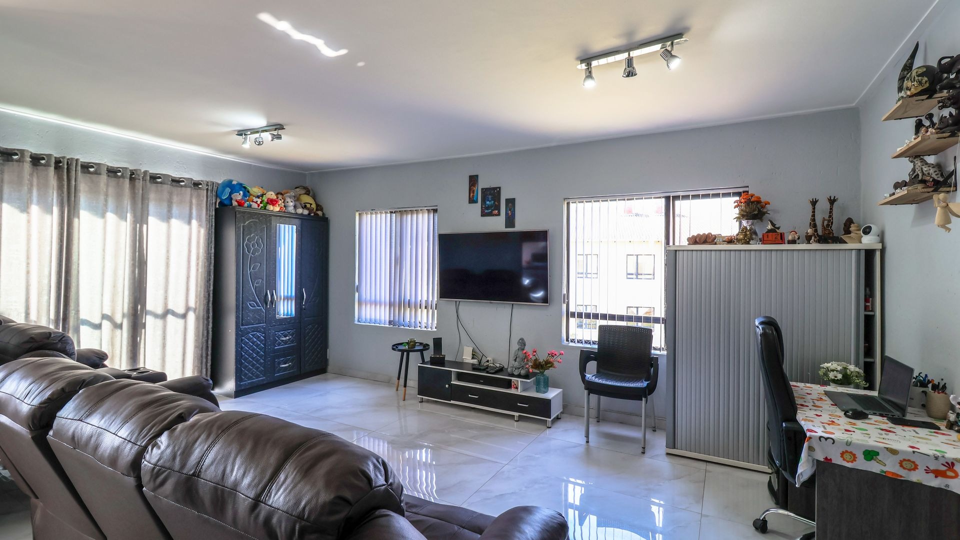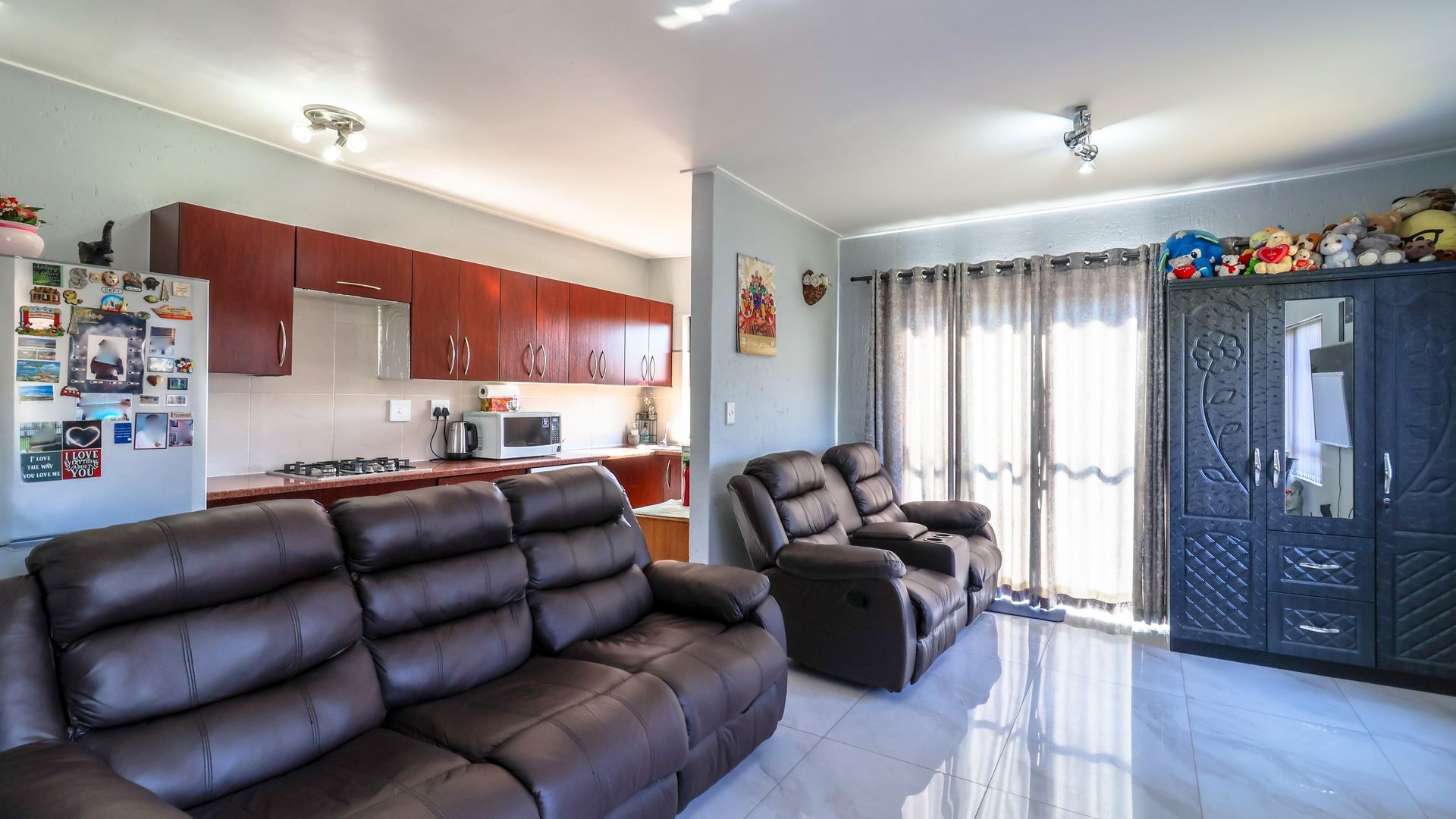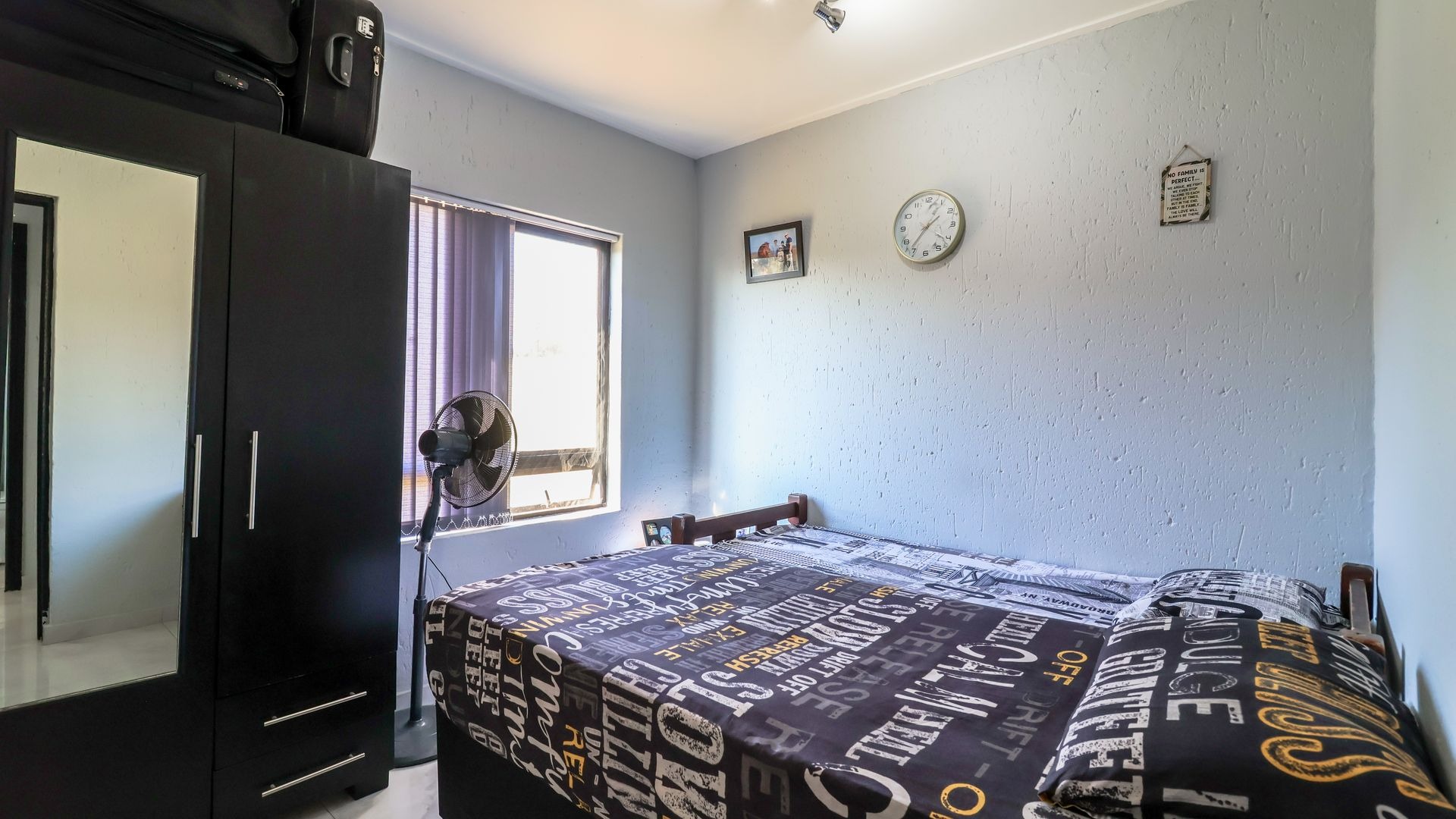 Tiled lounge and dining area , beautiful porcelain tiles with sliding door to private balcony. Computer nook in corner of lounge/work from home area. Open-plan kitchen with space for a fridge, 2 appliances, lots of cupboards, double sink, water purifier, under cover oven and gas hob . Main bedroom, tiled 4 BIC. MES has bath, shower in bath, loo and vanity. 2nd bedroom, tiled, 3 BIC, Bathroom has bath, loo and vanity. Blinds throughout. Mosquito nets on windows. Single carport. 1 open allocated parking. Prepaid electricity. This precinct has its own pool.