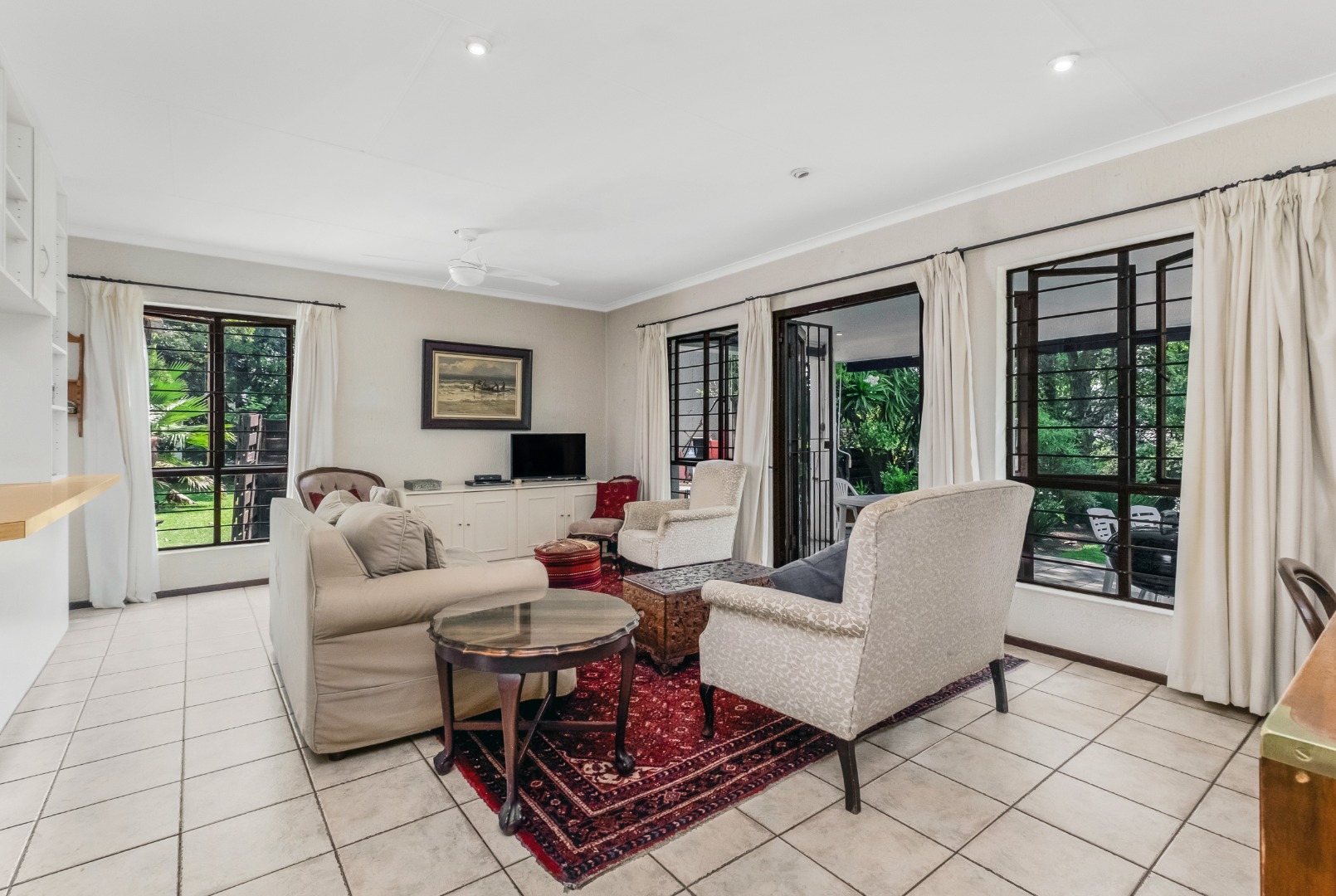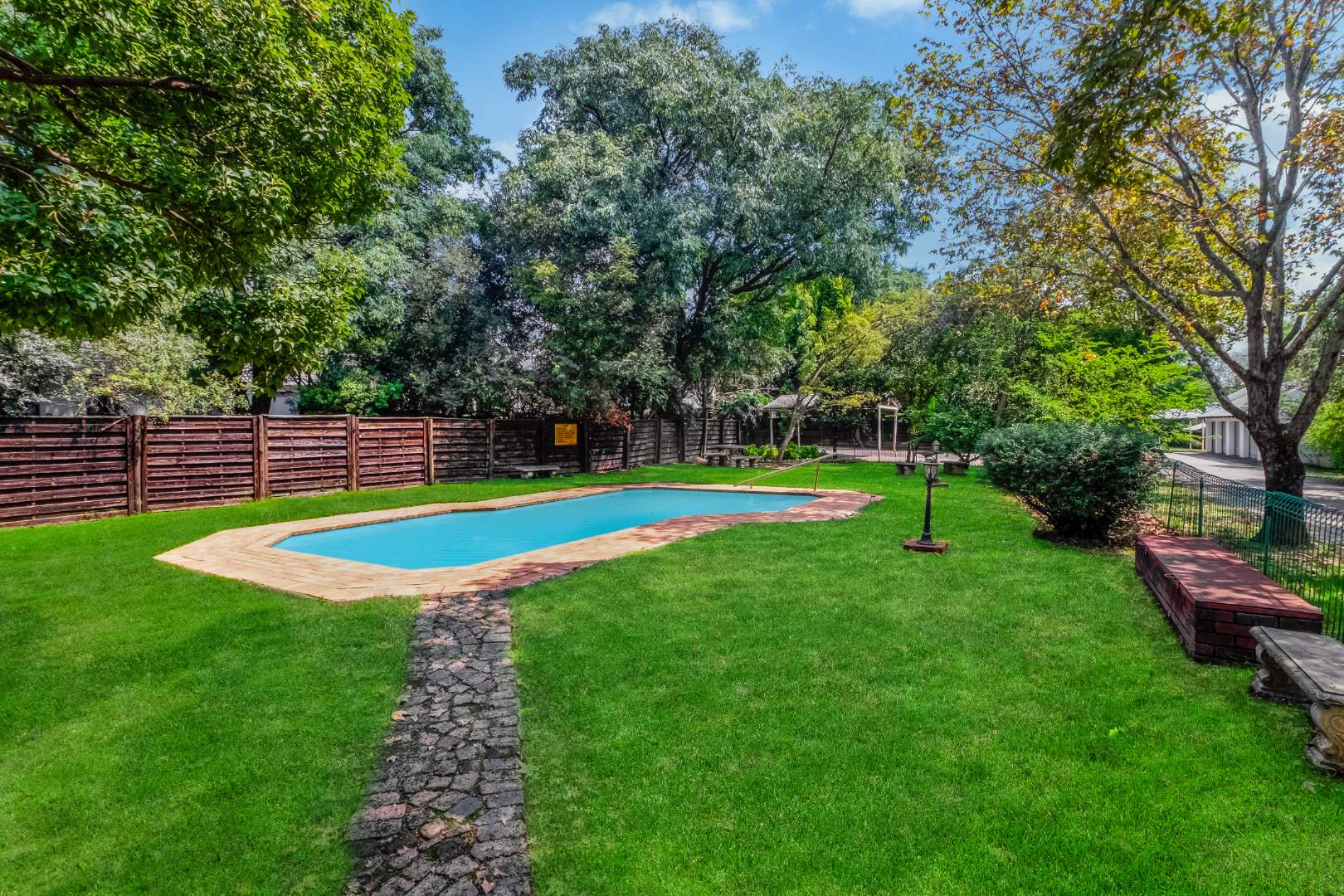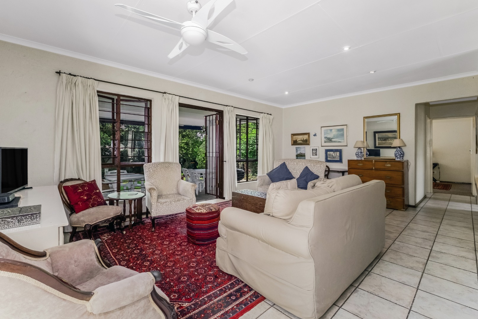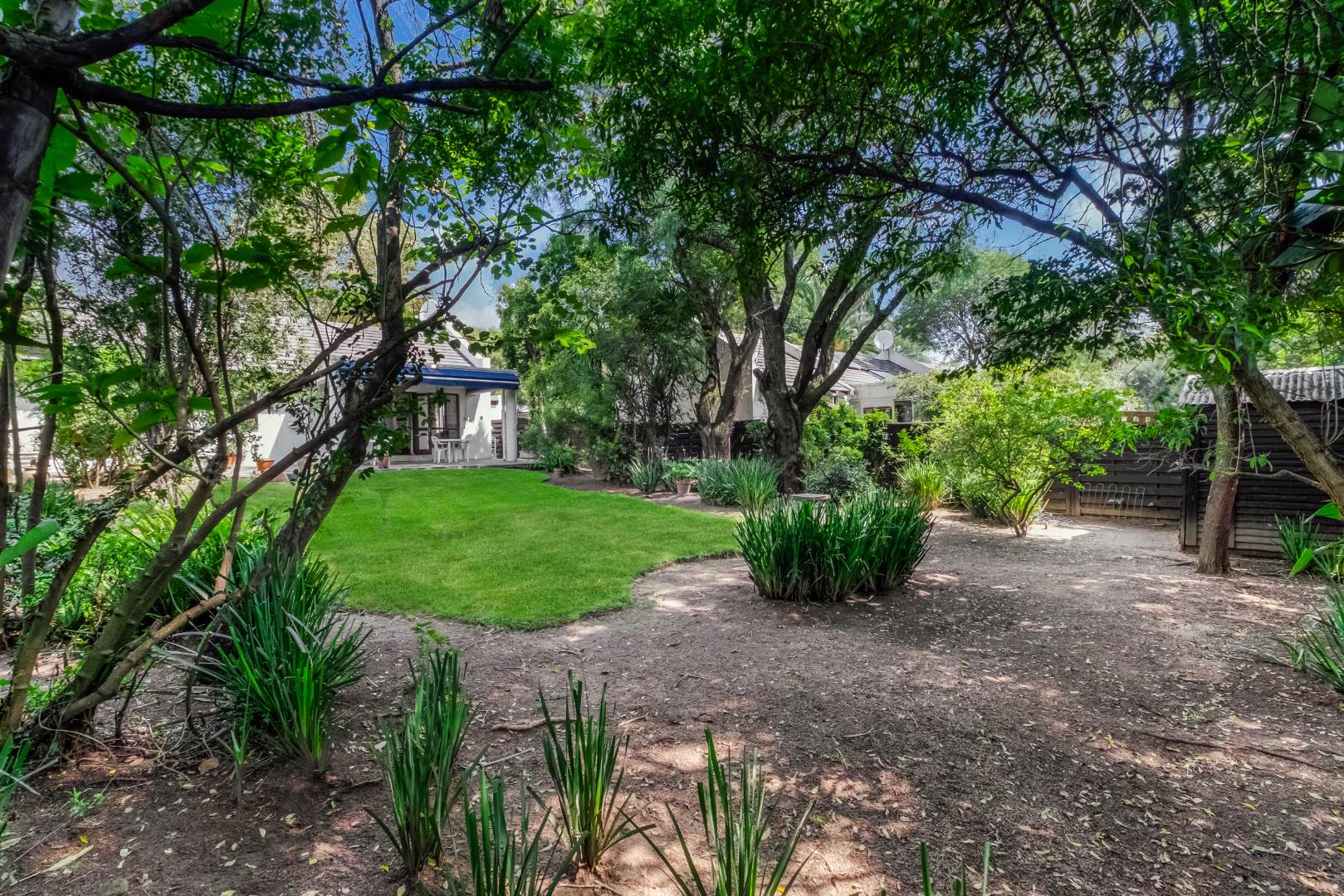 This property is private and tucked away in the heart of the complex therefore spacious private garden. Enter into open plan living space with Kitchen. The open plan living opens up with French Doors leading onto the covered patio overlooking the garden. The kitchen has a breakfast bar/counter with built in cupboard and additional utility room for additional appliances and storage. Three Bedrooms with two Bathrooms. The main bedroom offers a bathroom on suite with bath only. The second bathroom a shower only. The two bedrooms are small and able to fit single beds only. All 3 bedrooms have new carpets. The golden oldie has loads of potential. It is neat and looked after but will need modernizing to your personal taste. This complex is 34 years old and offer 24 Units in the complex hence the space. Allocated Single garage with single carport. Additional parking in the complex plus a swimming pool. The Complex is Pet friendly, Fibre Ready. This home ideal for starter family. You are allowed to build your own private pool.