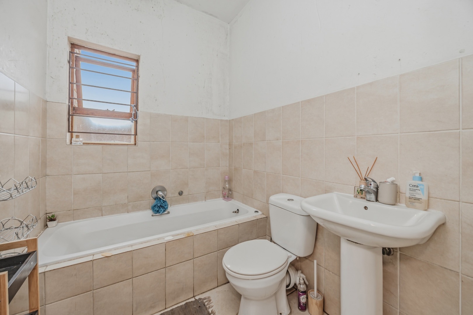 This apartment features three comfortable bedrooms, with tiled flooring and neutral walls, offering a versatile canvas for personal touches. There are two bathrooms, with one being an ensuite, providing convenience and privacy. The main bathroom includes a bathtub, catering to your relaxation needs.
