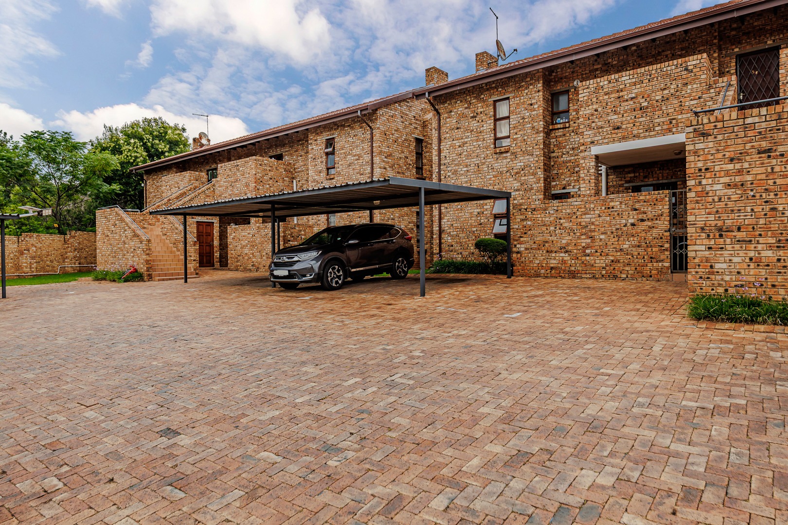 Enjoy outdoor living on the private patio, perfect for unwinding. The property includes two dedicated parking spaces, ensuring convenience for residents. The complex itself offers a secure environment with 24-hour security, a security post, access gate, intercom and security gates, providing peace of mind. Security bars on windows further enhance safety.