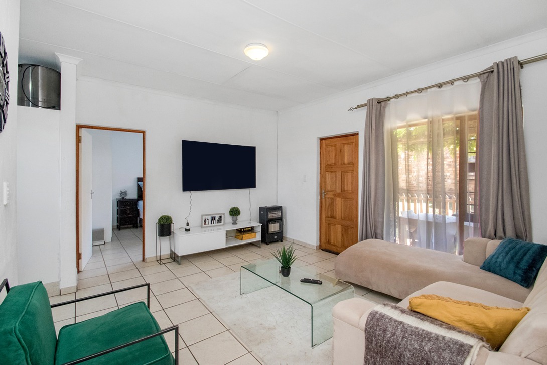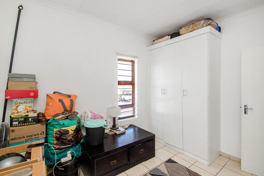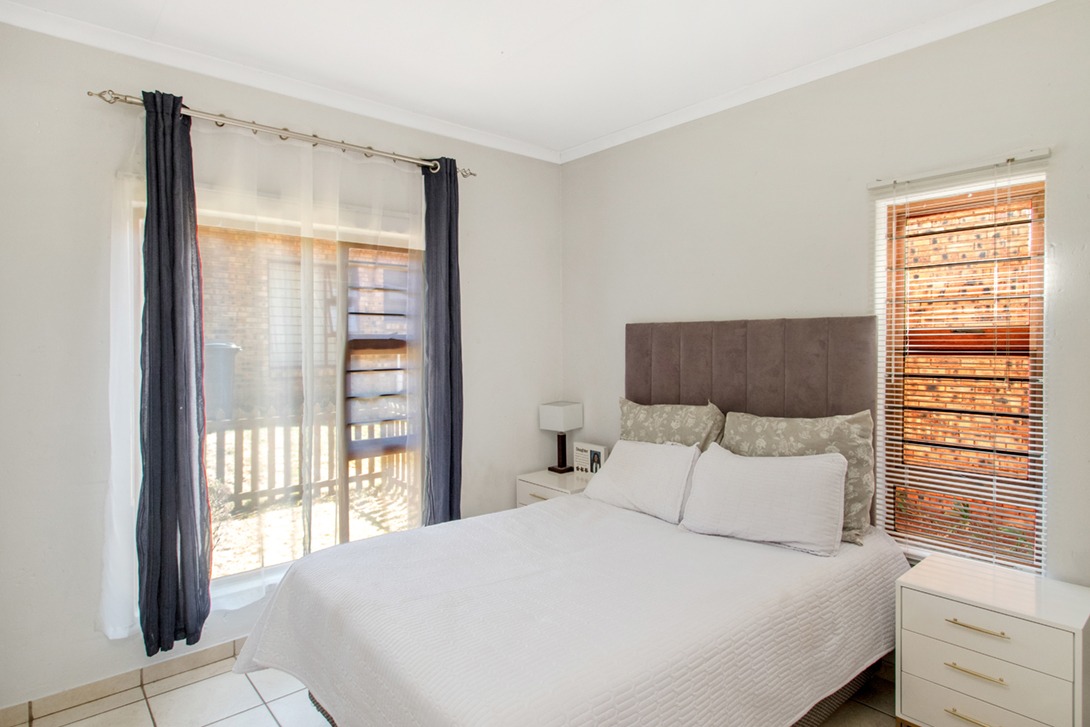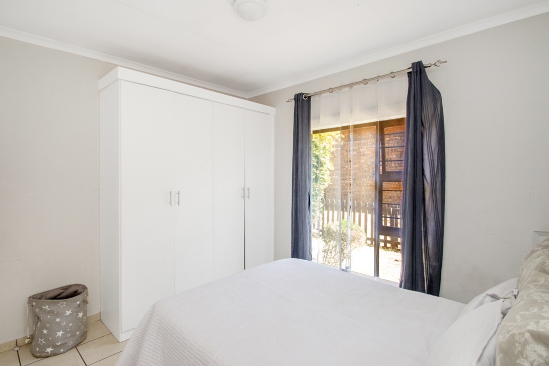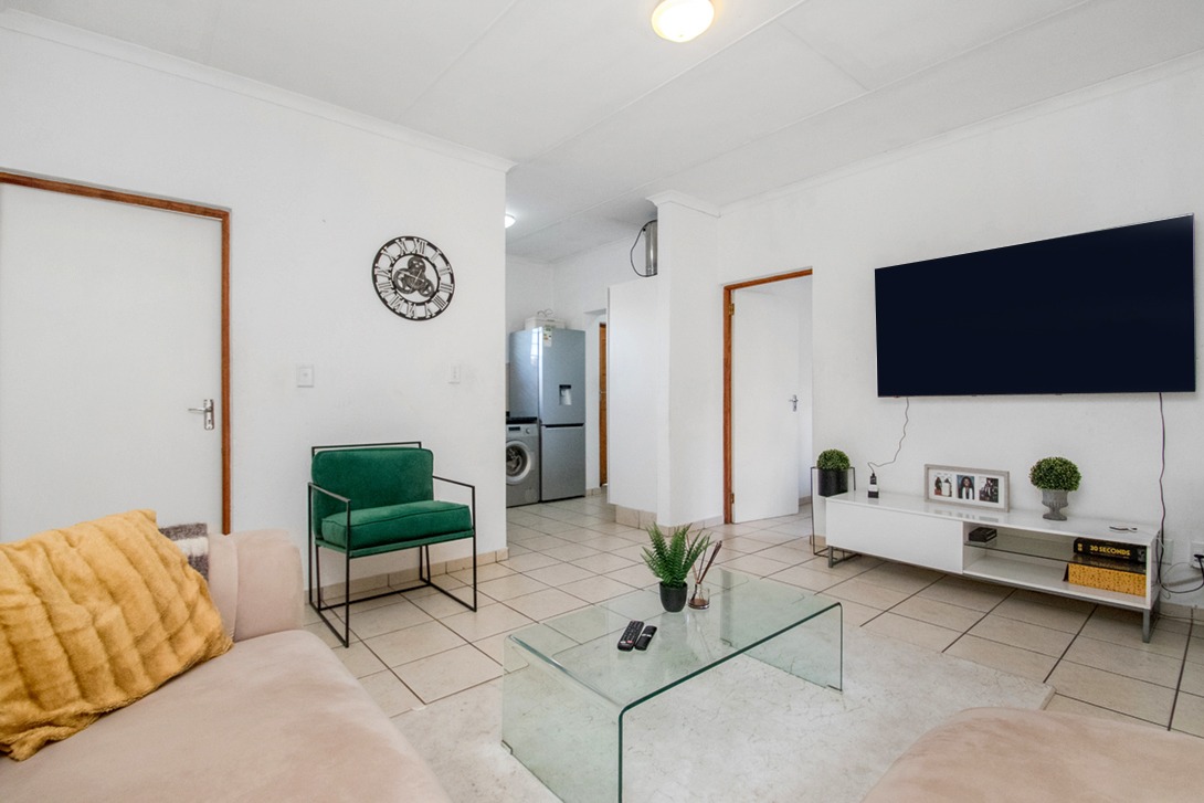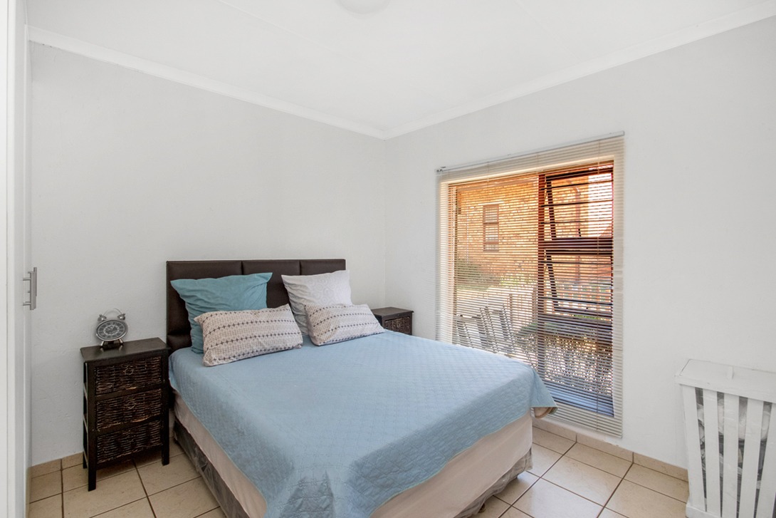Step outside to discover a private fenced patio area, perfect for outdoor dining or enjoying the well-maintained small garden. An awning provides shade, enhancing the outdoor living experience. The unit comes with two dedicated parking bays, adding to the convenience. This townhouse is situated within a security complex, benefiting from 24-hour security, an access gate, security post, and security gate, ensuring peace of mind for residents.