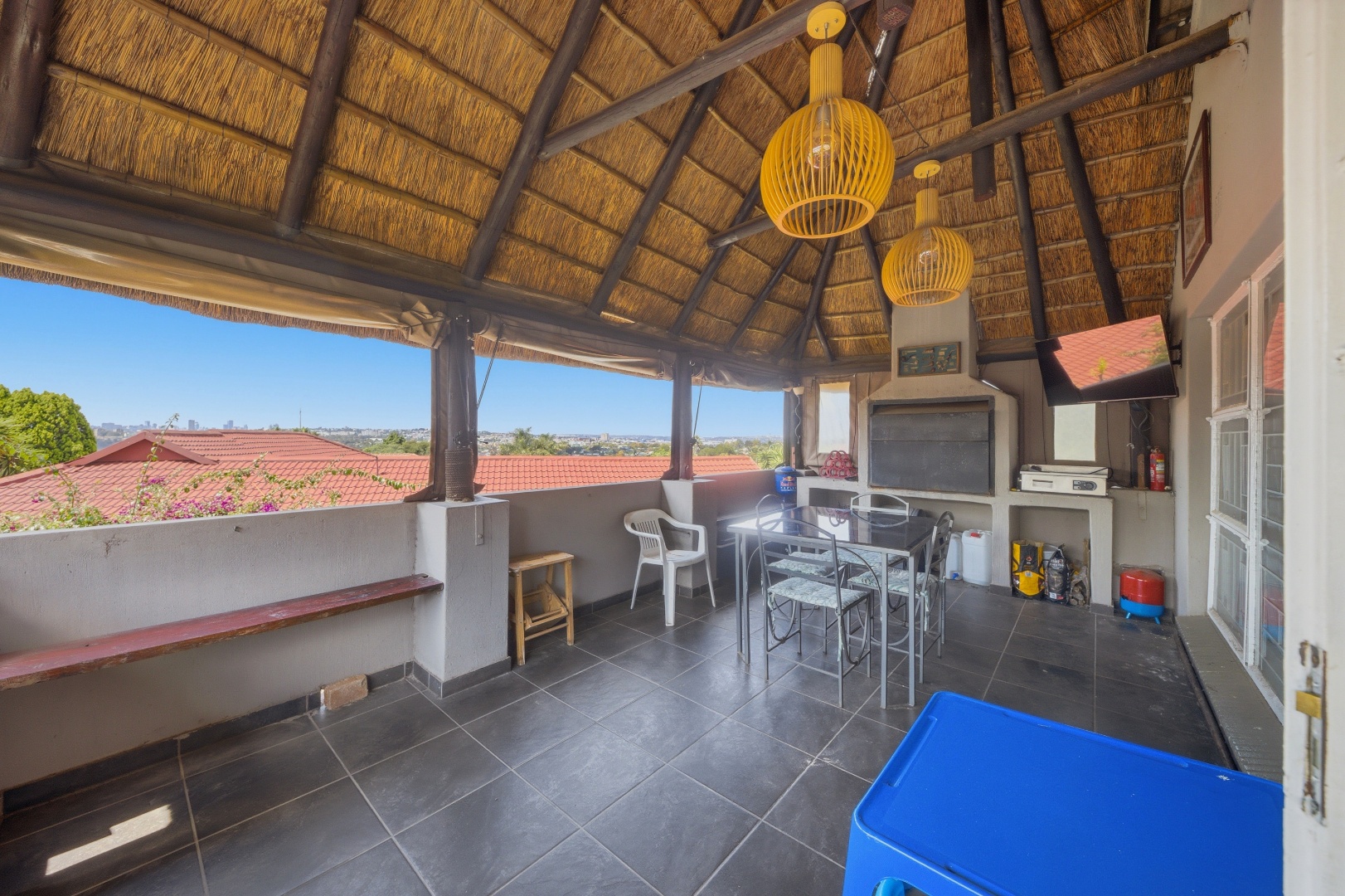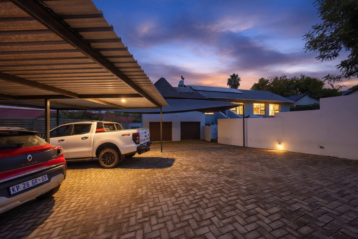 Parking and security are top-tier, with a double manual garage, an additional carport, and an automated gate leading into the property. The entire home is secured with an electric fence and alarm system, giving you peace of mind around the clock.