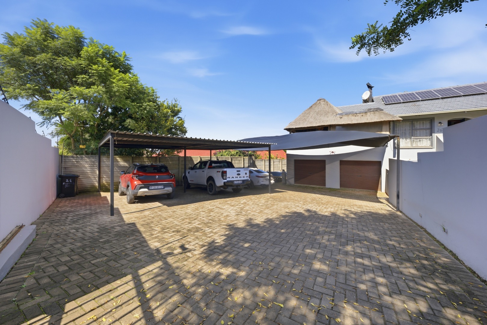 Parking and security are top-tier, with a double manual garage, an additional carport, and an automated gate leading into the property. The entire home is secured with an electric fence and alarm system, giving you peace of mind around the clock.