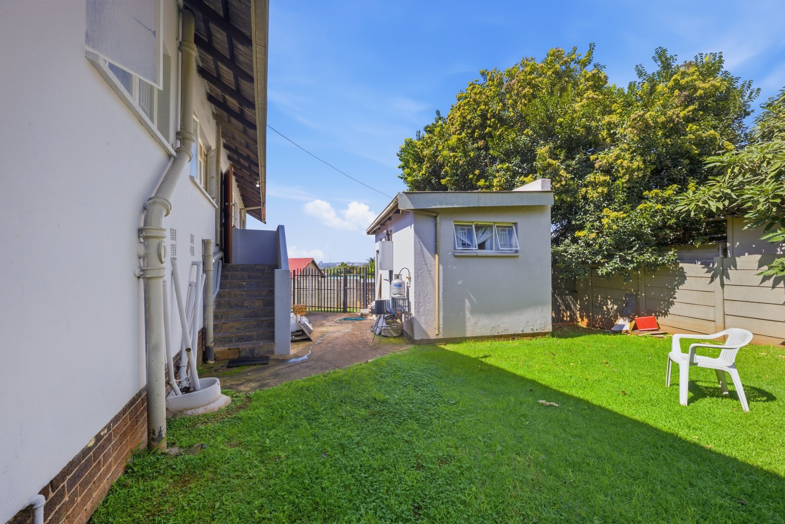 Step outside to a large, wrap-around garden, ideal for families with children and pets, or for anyone who enjoys gardening and outdoor living. There’s plenty of space for a vegetable patch, outdoor seating, or even a pool in the future.