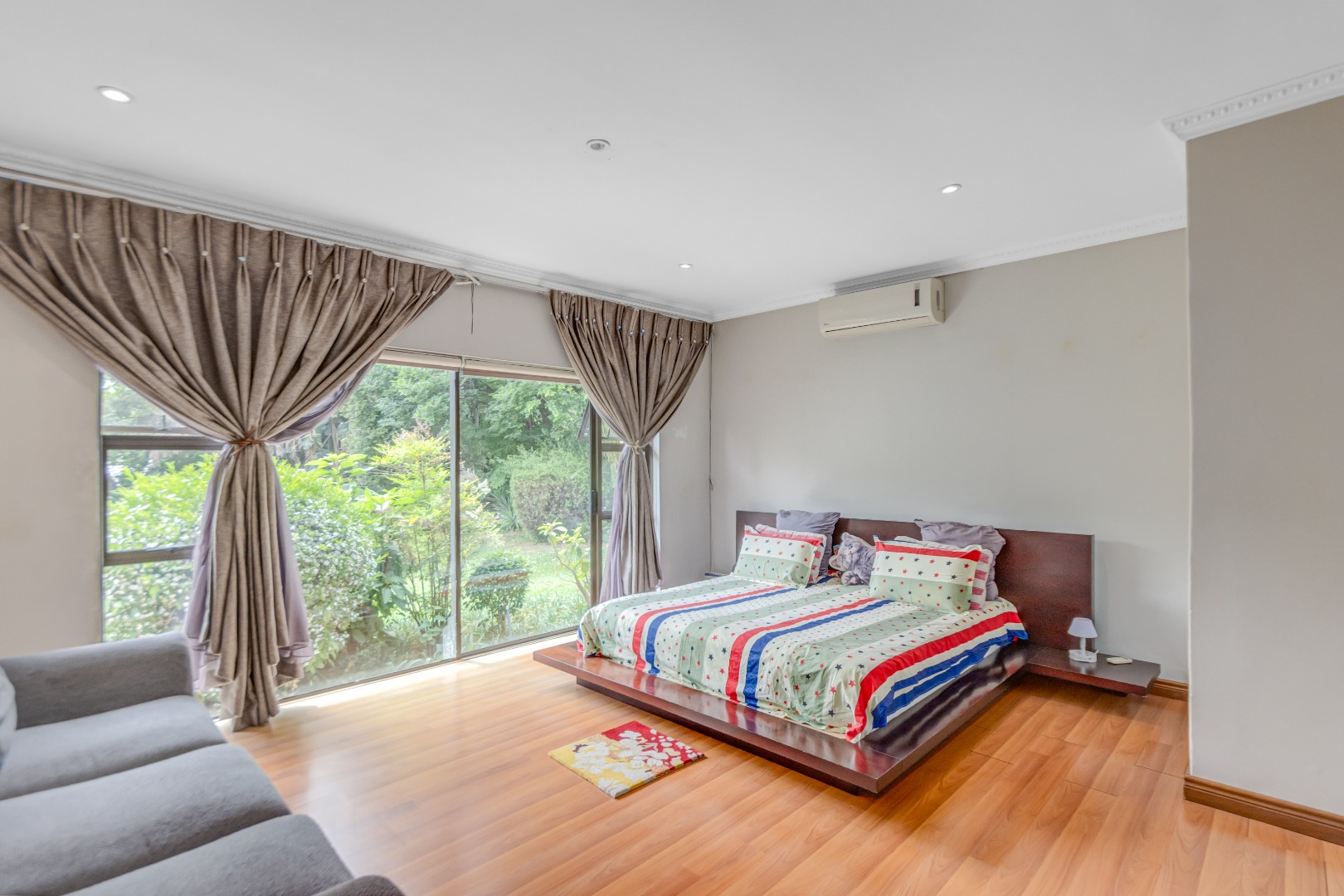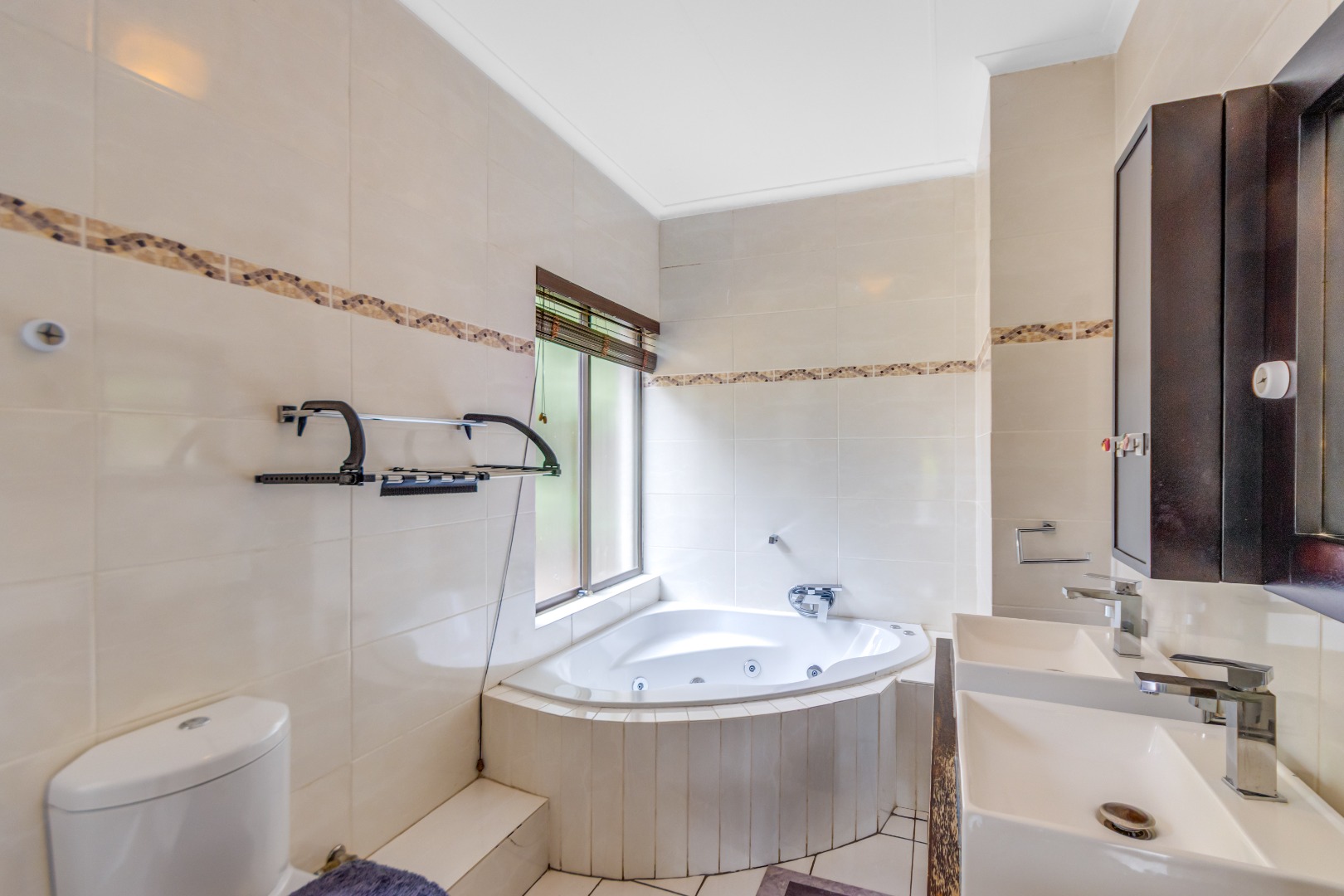 The heart of the home is the massive kitchen, boasting a separate scullery, ample cupboard space, a gas stove, and room for a double-door fridge—perfect for the family chef.