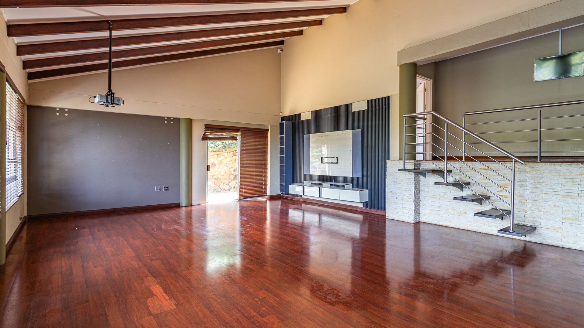 Upstairs, the home offers three well-sized bedrooms and two bathrooms, including a main en-suite, providing both comfort and privacy. Step outside to a beautifully maintained garden with breathtaking 180-degree scenic views and a welcoming patio ideal for relaxed outdoor living. Additional features include a laundry room, two automated garages with extra parking, and excellent security with alarm system, electric fencing, CCTV, intercom, and a fully walled perimeter. Fibre-ready and pet-friendly, and conveniently located close to major highways and amenities such as SuperSpar and Builders Warehouse, this home is the perfect blend of lifestyle, location, and modern convenience. Book your viewing today and step into your dream entertainment haven!