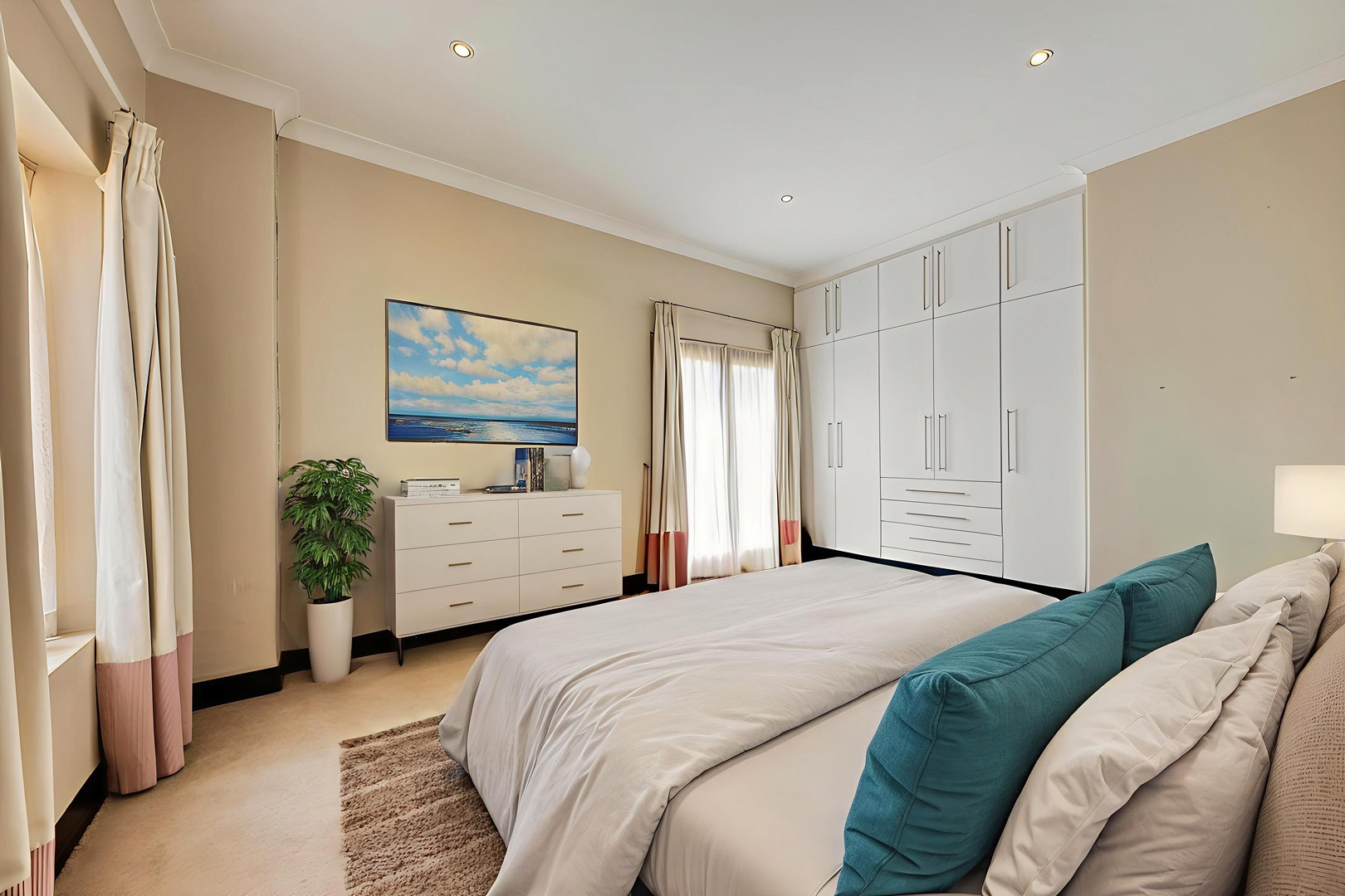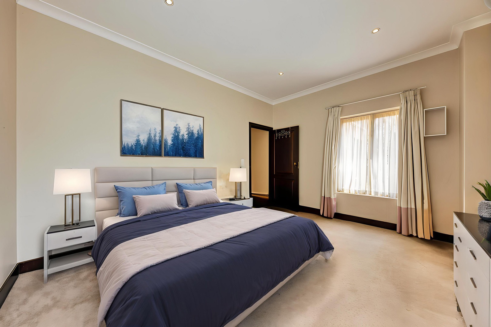 cupboards. The main suite features a luxurious en-suite bathroom, while the