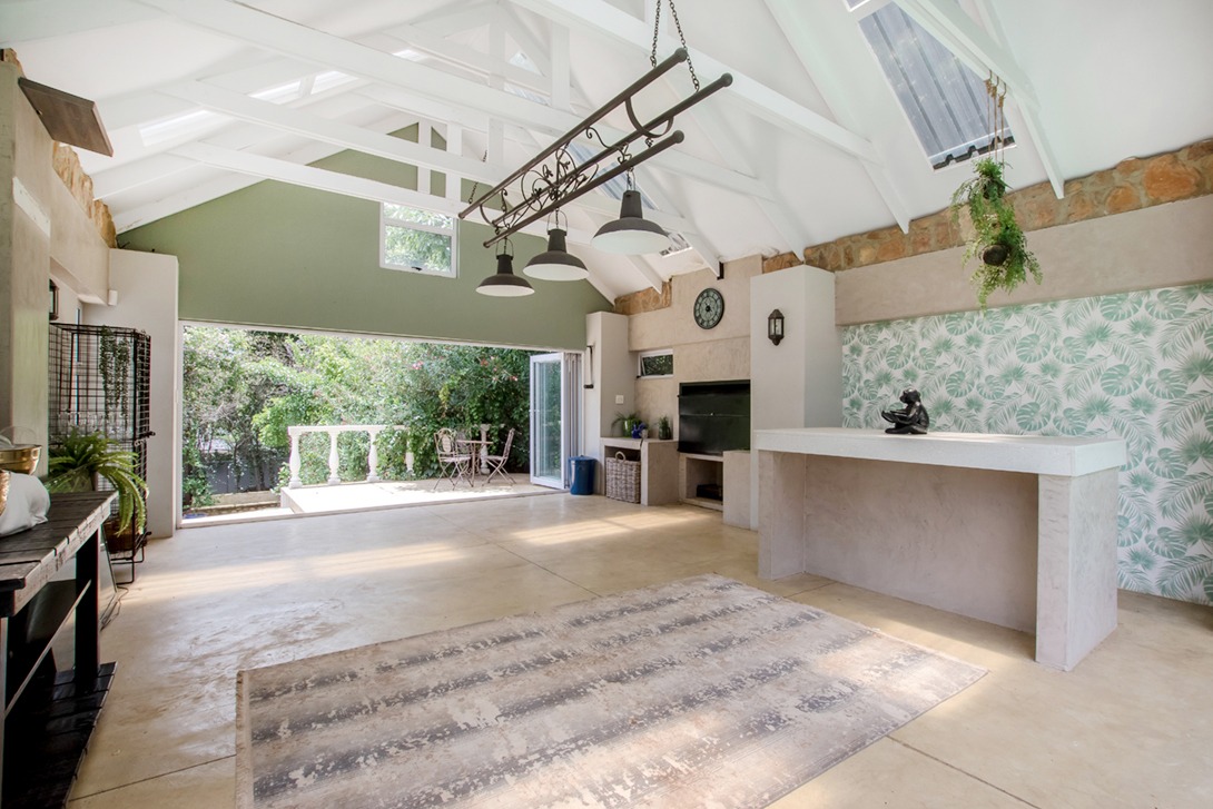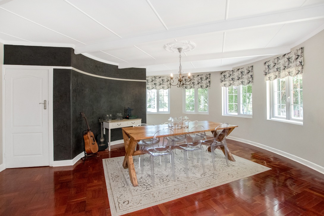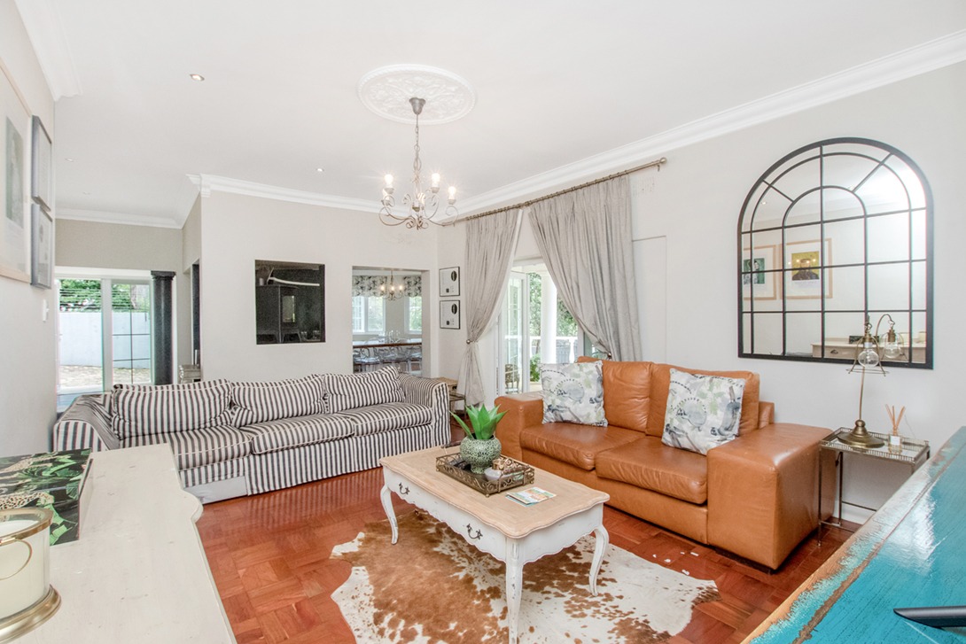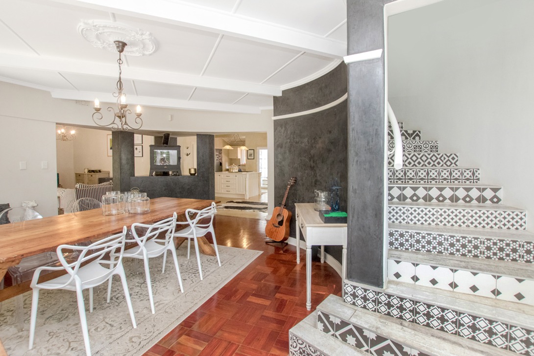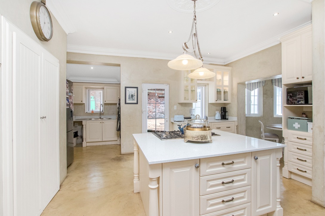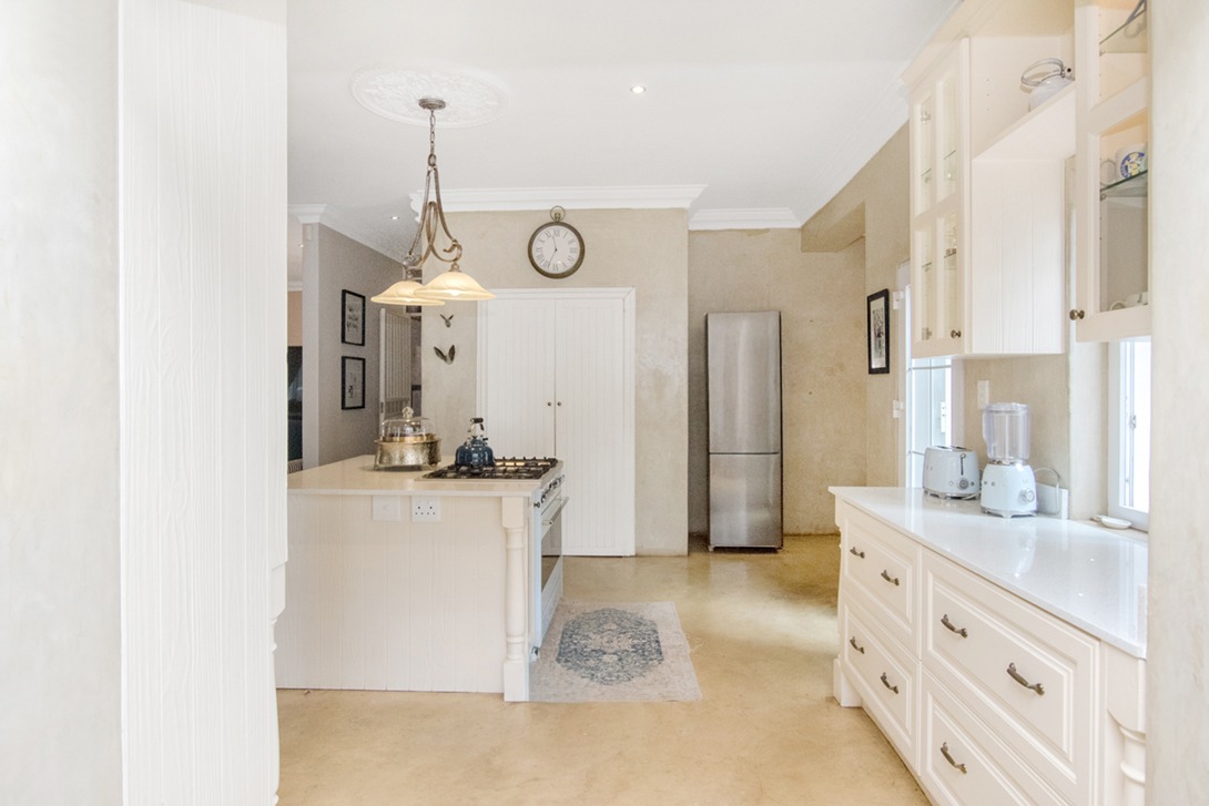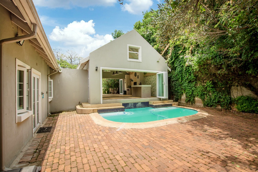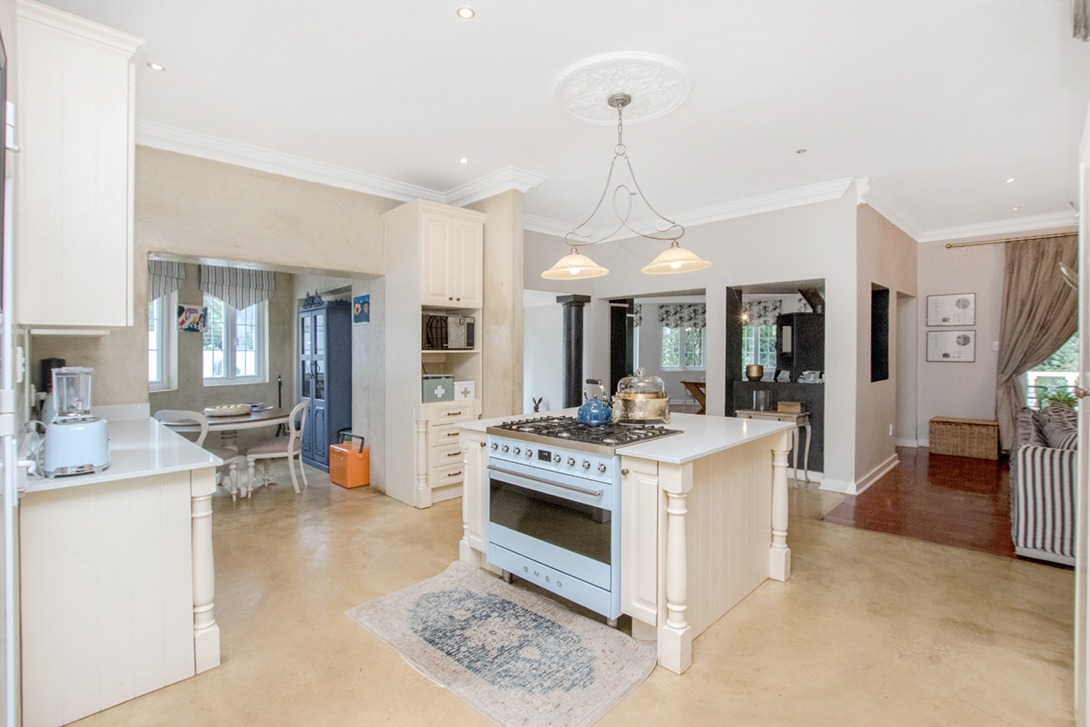 Discover an exceptional family home in the highly sought-after suburb of Northcliff, This spacious 4-bedroom, 3.5-bathroom residence offers 386 sqm of comfortable living under roof, set on a generous 1682 sqm erf. From the moment you arrive, the beautifully terraced garden, mature trees, and inviting kerb appeal set the tone for a home designed for both relaxation and entertaining. Inside, the open-plan layout seamlessly connects bright and airy living spaces, including a stylish kitchen featuring cream cabinetry, light countertops, a SMEG range cooker, and a large central island—with additional features such as parquet flooring, coffered ceilings, a wood-burning stove, and a dedicated braai room with built-in bar enhancing the charm and functionality.