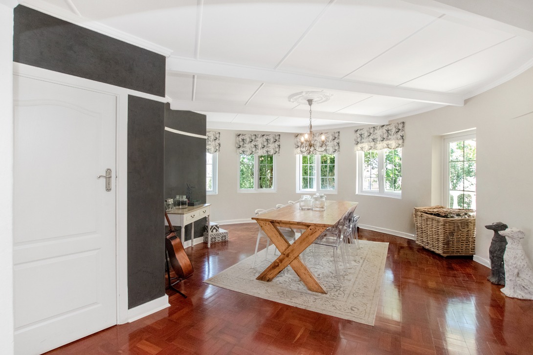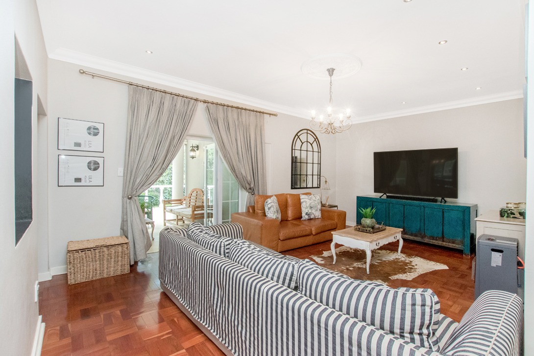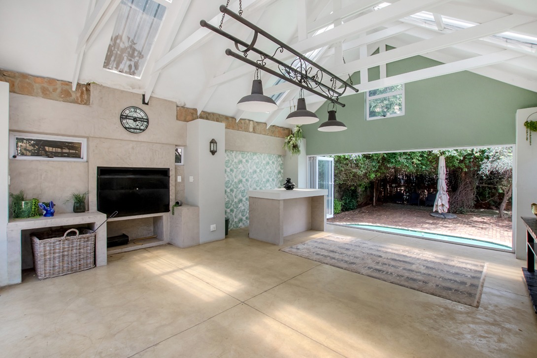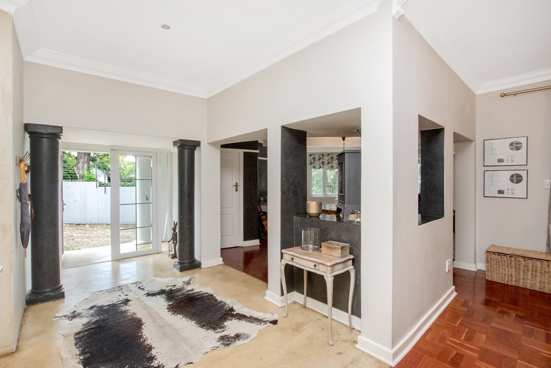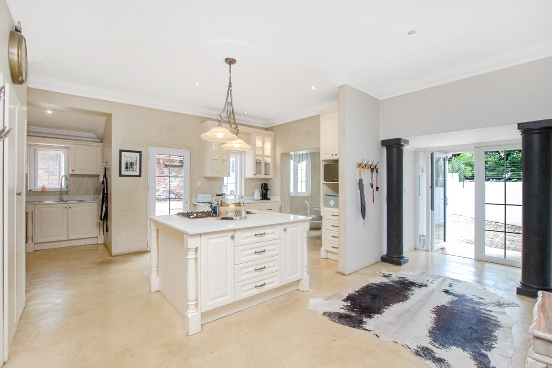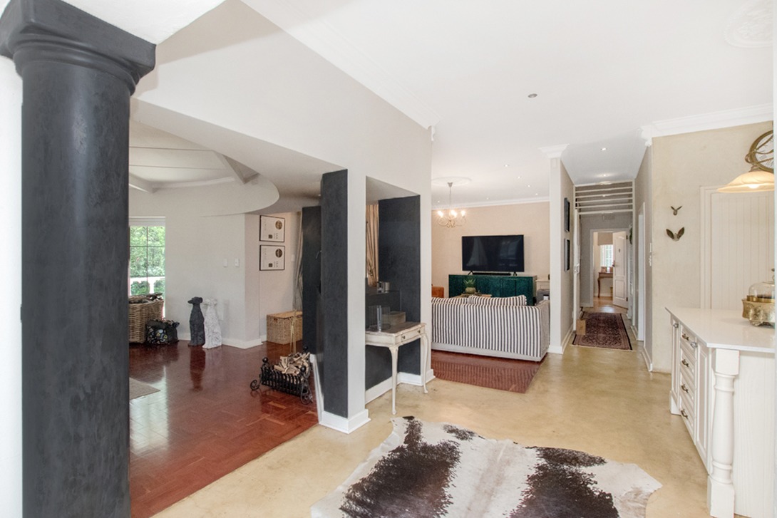 Discover an exceptional family home in the highly sought-after suburb of Northcliff, This spacious 4-bedroom, 3.5-bathroom residence offers 386 sqm of comfortable living under roof, set on a generous 1682 sqm erf. From the moment you arrive, the beautifully terraced garden, mature trees, and inviting kerb appeal set the tone for a home designed for both relaxation and entertaining. Inside, the open-plan layout seamlessly connects bright and airy living spaces, including a stylish kitchen featuring cream cabinetry, light countertops, a SMEG range cooker, and a large central island—with additional features such as parquet flooring, coffered ceilings, a wood-burning stove, and a dedicated braai room with built-in bar enhancing the charm and functionality.