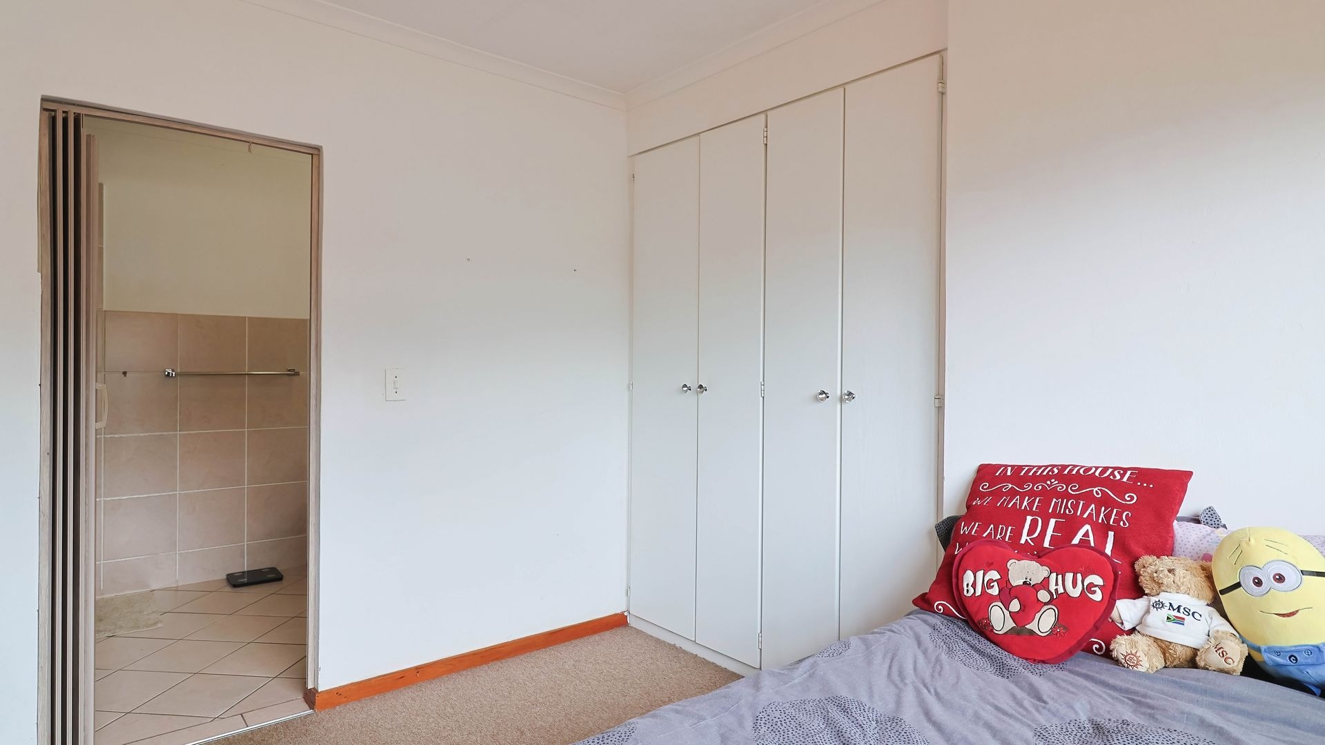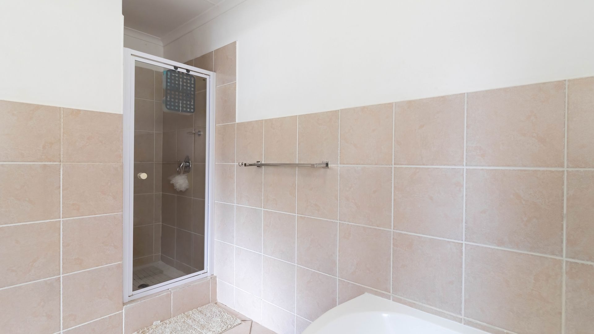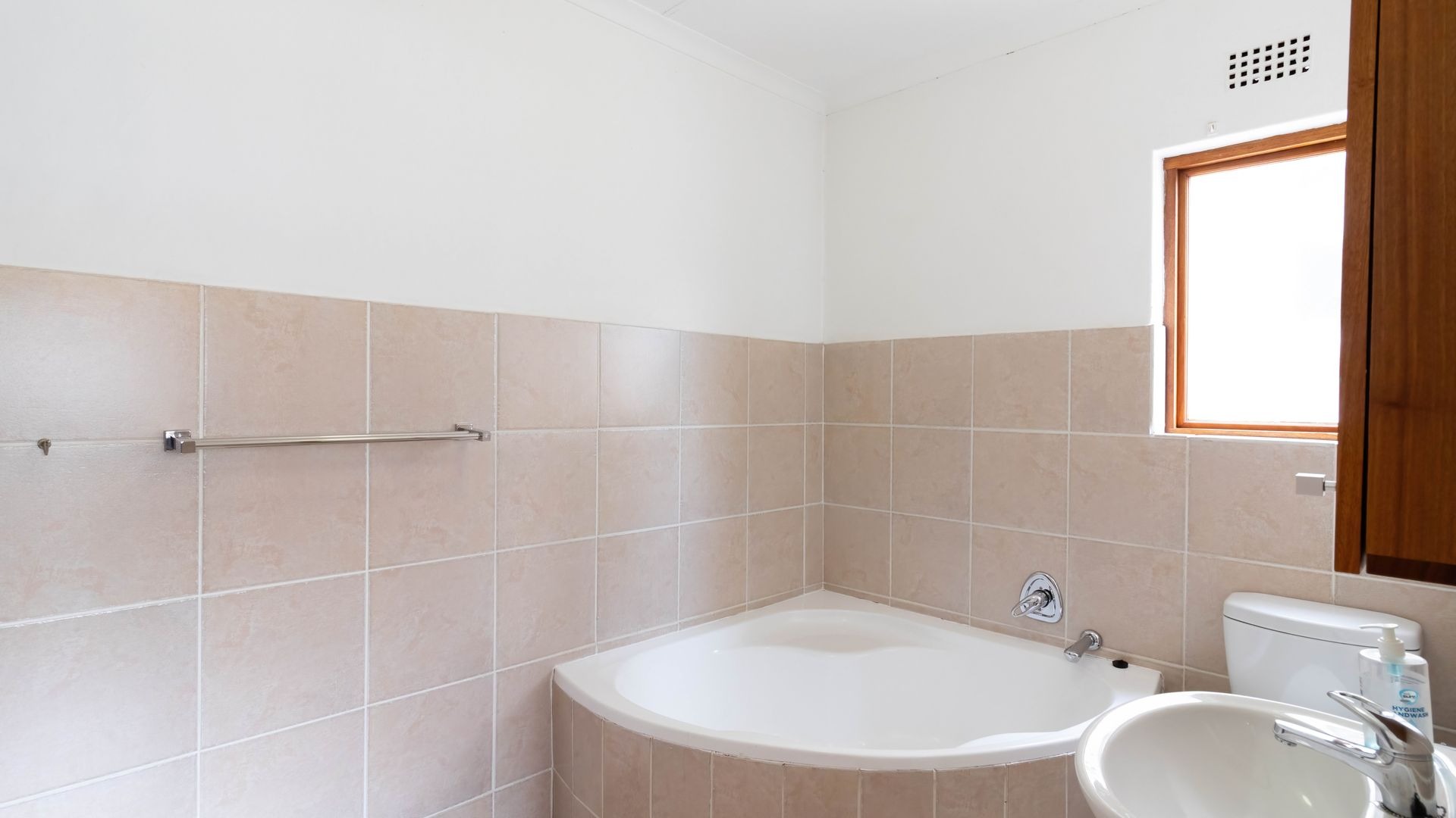 To the left, you’ll find a generously sized bedroom fitted with built-in cupboards and an en-suite bathroom featuring a relaxing corner bath. The open-plan lounge comfortably accommodates a large couch and flows seamlessly onto a private balcony, perfect for enjoying your morning coffee or unwinding after a long day.