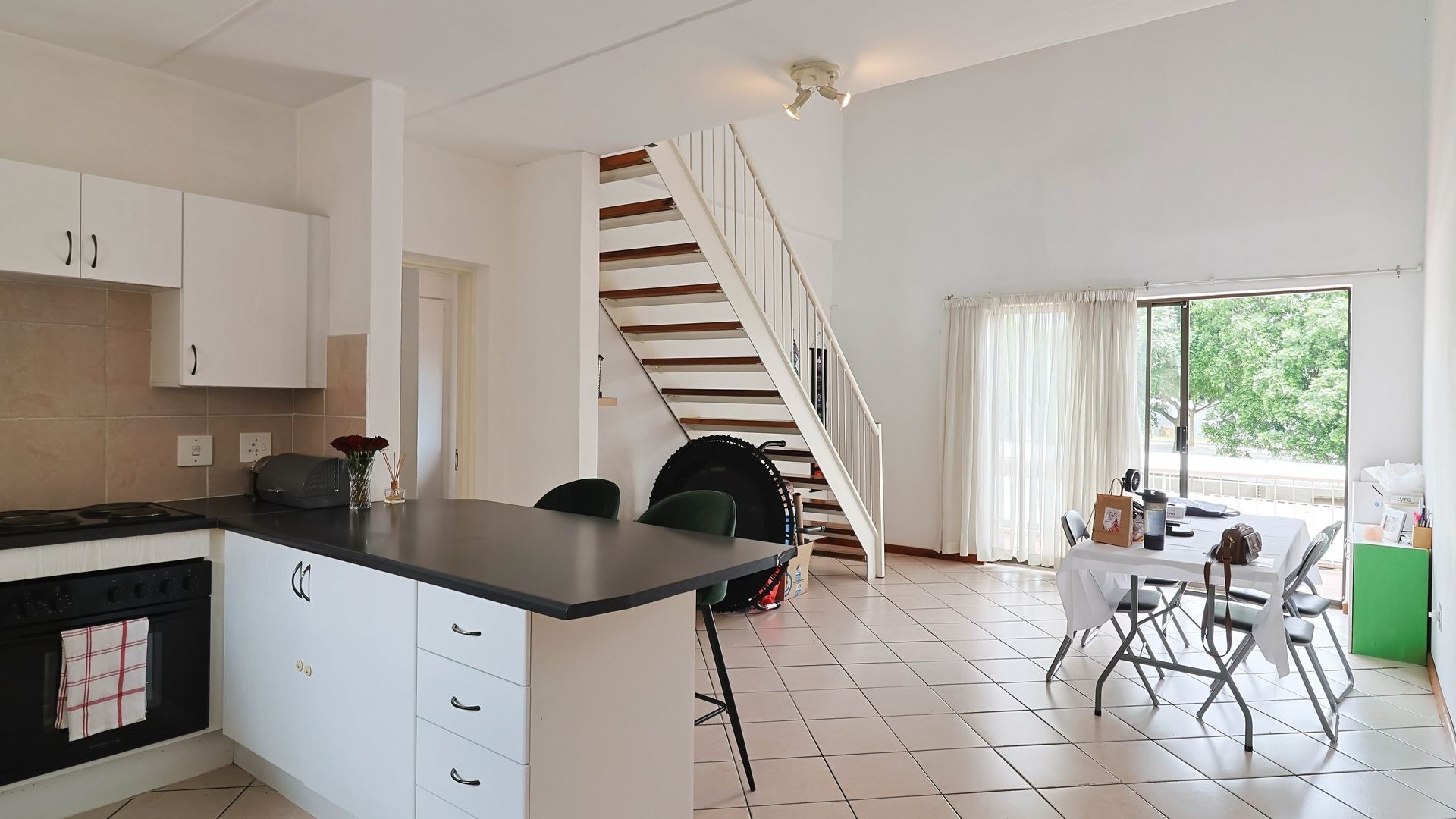 To the right, a staircase leads to a large loft area, offering versatile space ideal for a home office, second bedroom, or additional living area.