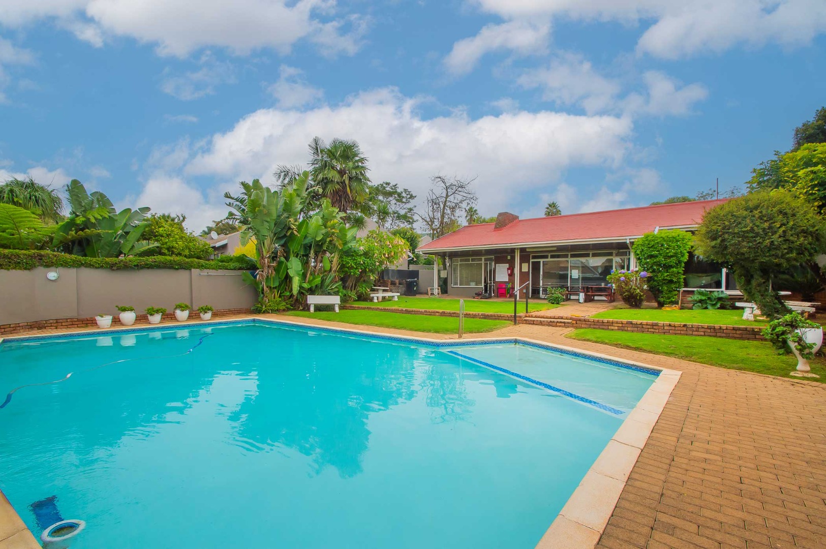The complex has a clubhouse with a BIG blue sparkling swimming pool, braai facilities, inside area for functions and toilets. And 24-Hour security guarding!