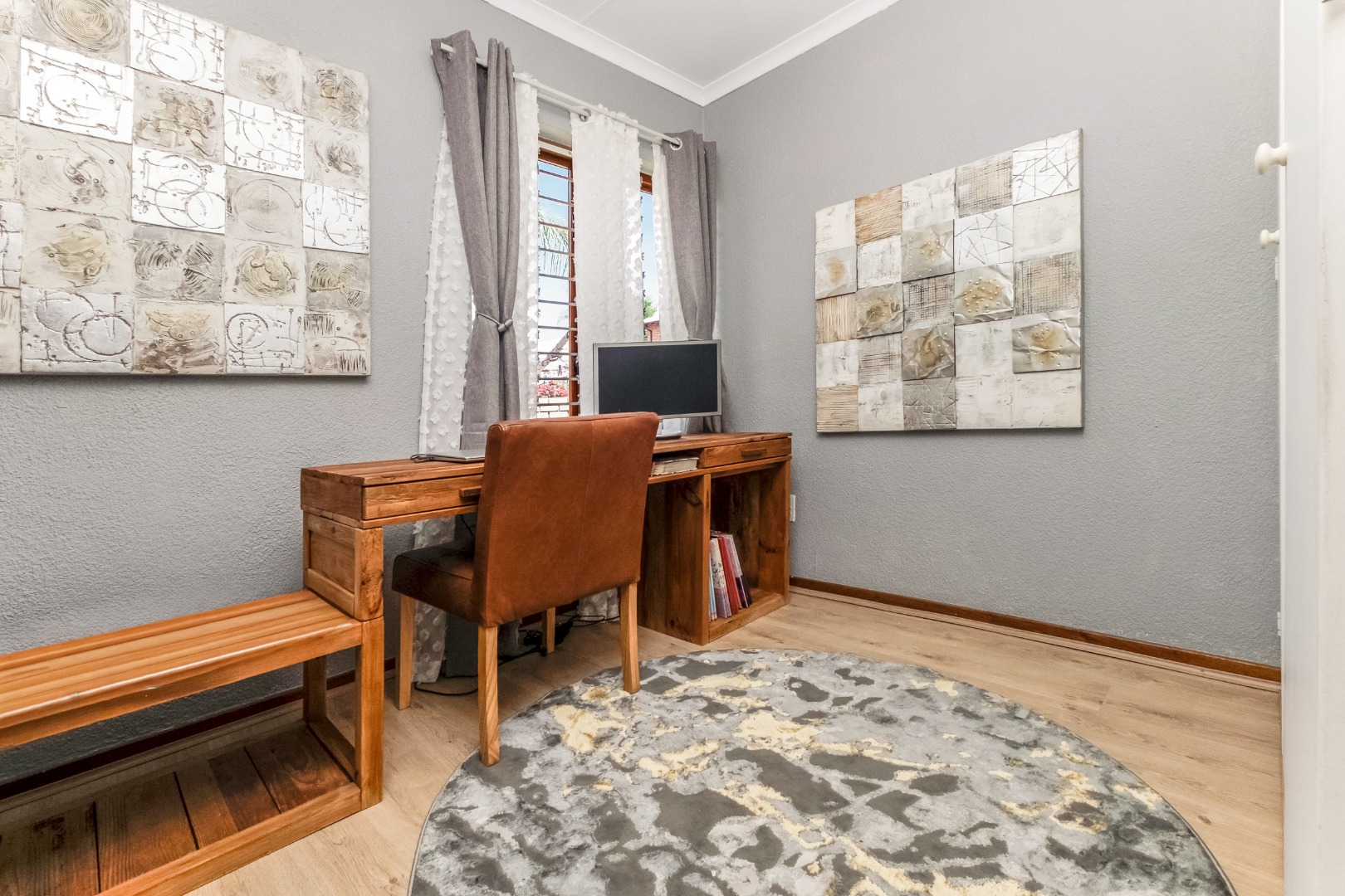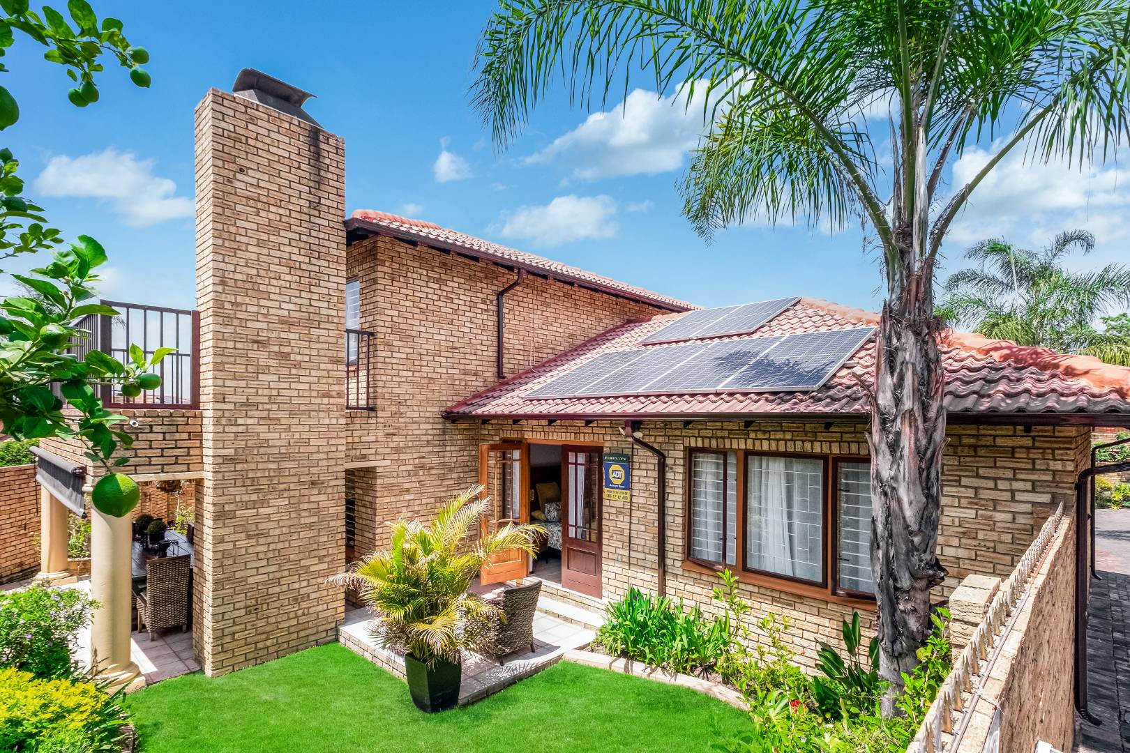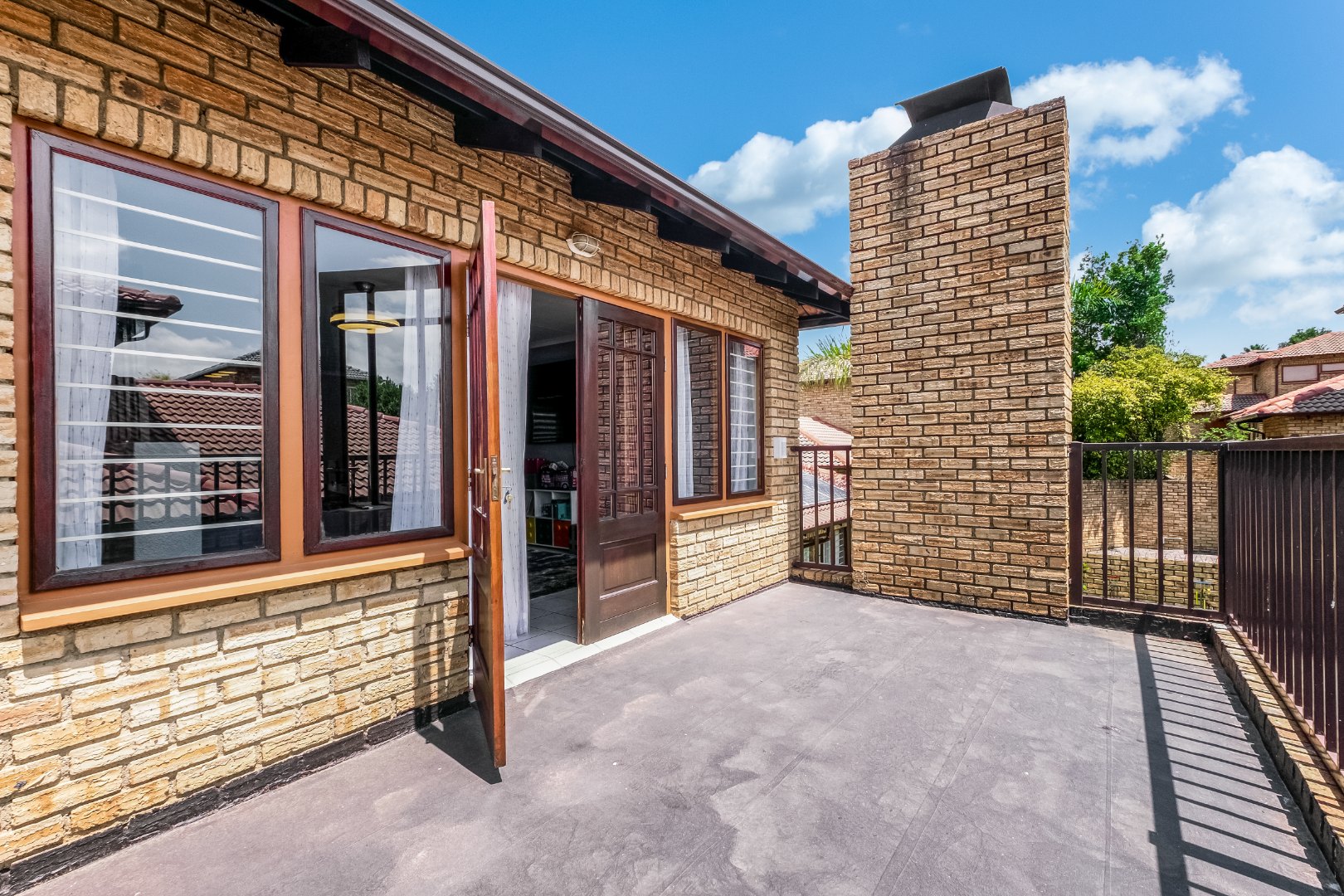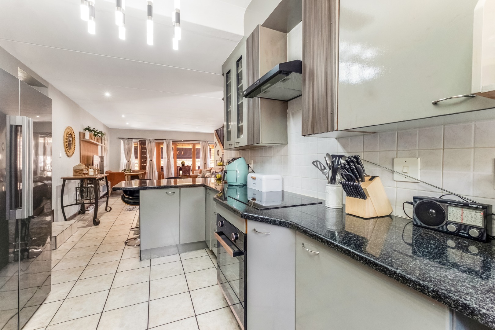 Enter into formal entrance hall with spacious living area with modern Kitchen. The living area leads out to the covered patio with Built in Braai. The Open Plan kitchen offers breakfast bar/counter, ample cupboard and working space, stylish Light fittings. Granite Tops and Pantry cupboard. The scullery and back door lead out to the Private Drying Yard. Three bedrooms with laminated flooring in mint condition. The master bedroom has ample cupboard space with a full bathroom. The one bedroom has French doors leading into the garden. The guest Bathroom offers a bath only. Upstairs offers a family room/PJ Lounge consisting of 65 sqm, the one side could easily be used as work from office or Dry walled for separate space. This property is tucked away in the heart of the complex. The double automated garages offer direct access into the home. The small garden offers a beautiful established garden to the one side and the other side is paved for small pets and grassed drying area all with minimal upkeep. Double Automated garages with direct access into the house. Pet friendly (2) Fibre Ready. This complex is safe and secure with Electric Fence and Affordable Levies. Visitors Parking. This home ideal for starter family with minimal Maintenance. The Invertor and Solar system are owned outright with no lease or contract. Both bathrooms and kitchen have blinds. Bedrooms laminated flooring and Living areas are tiled. The property is full enclosed for pets. Please email us to make arrangements to view.