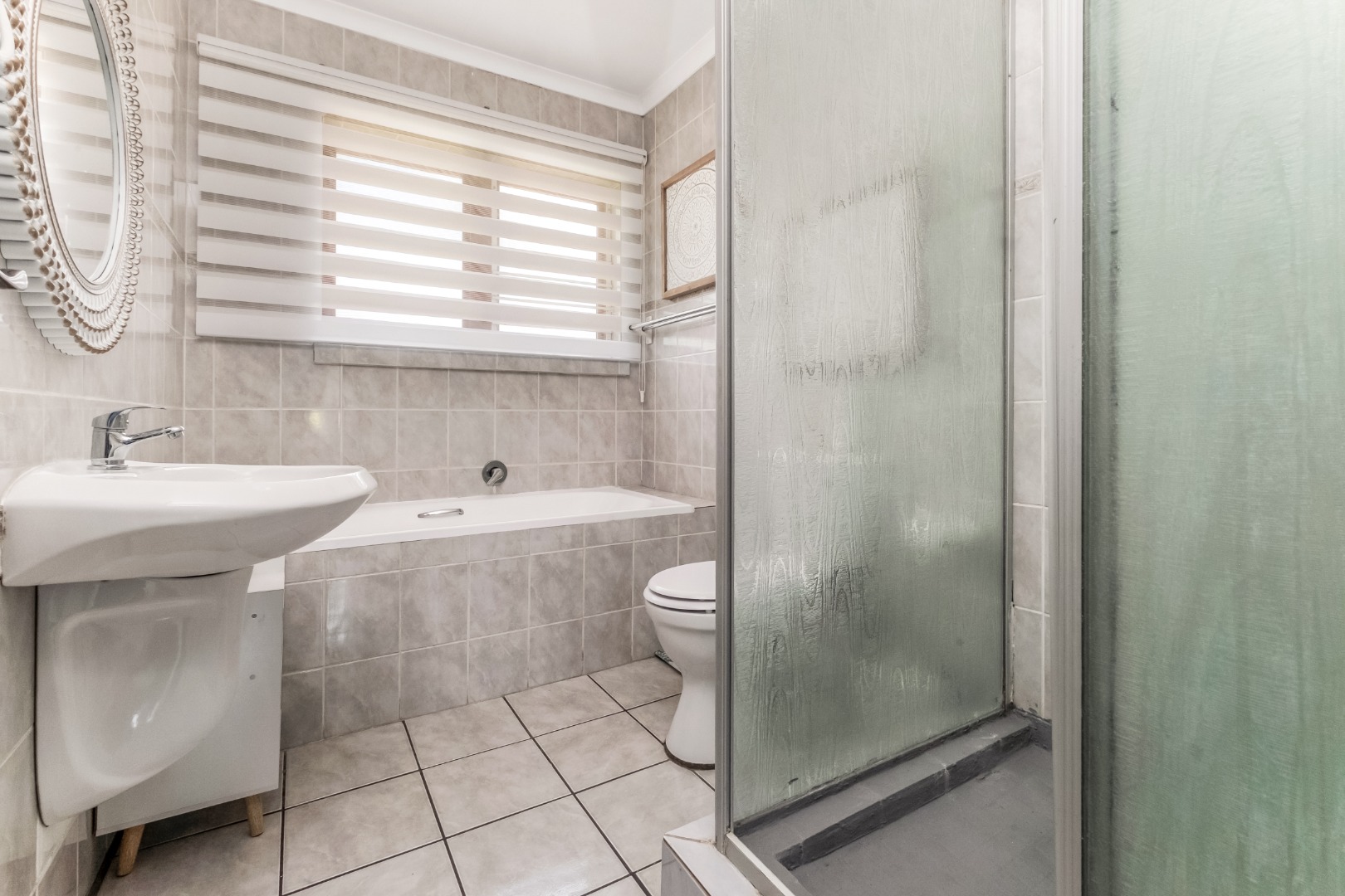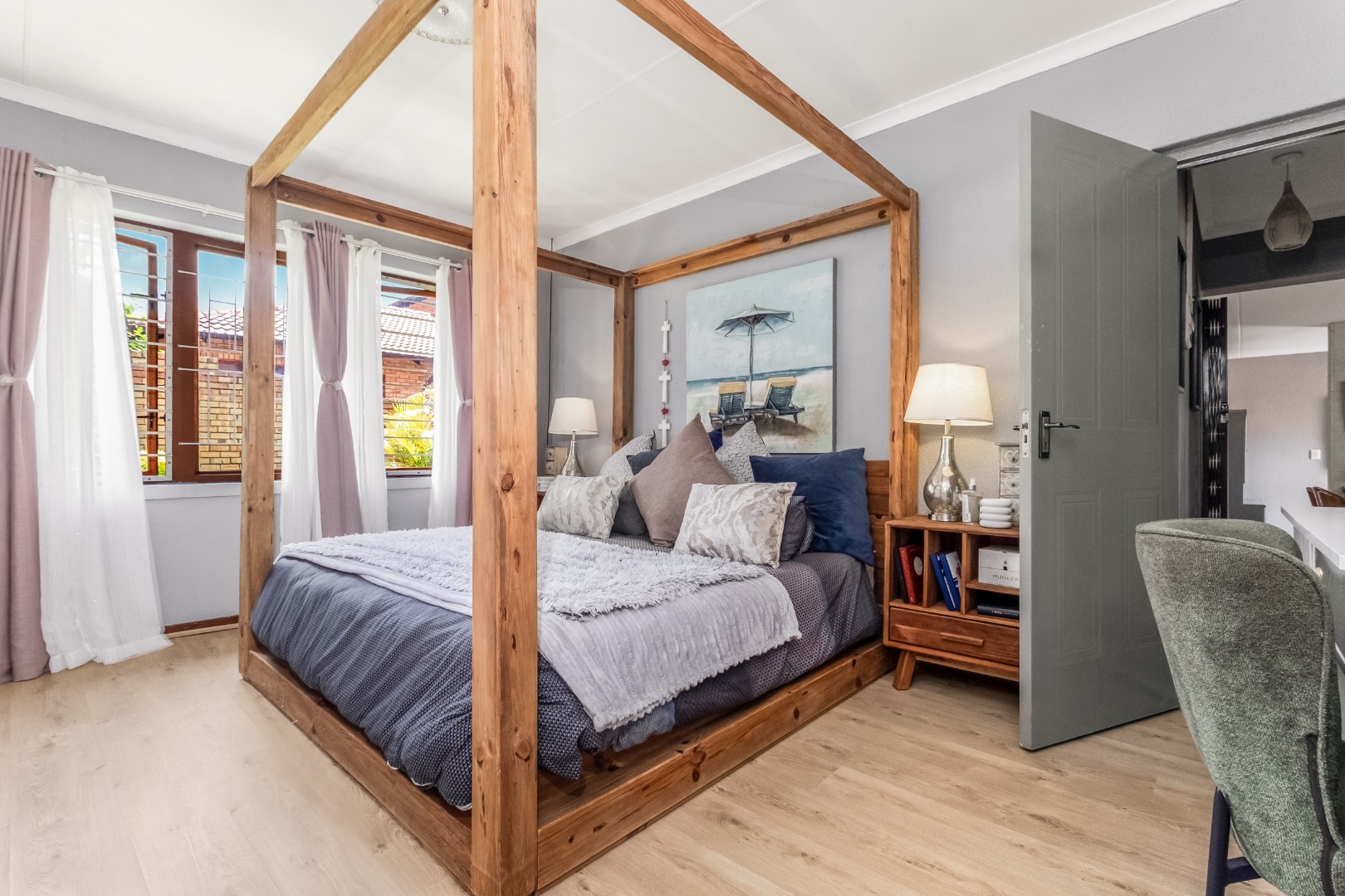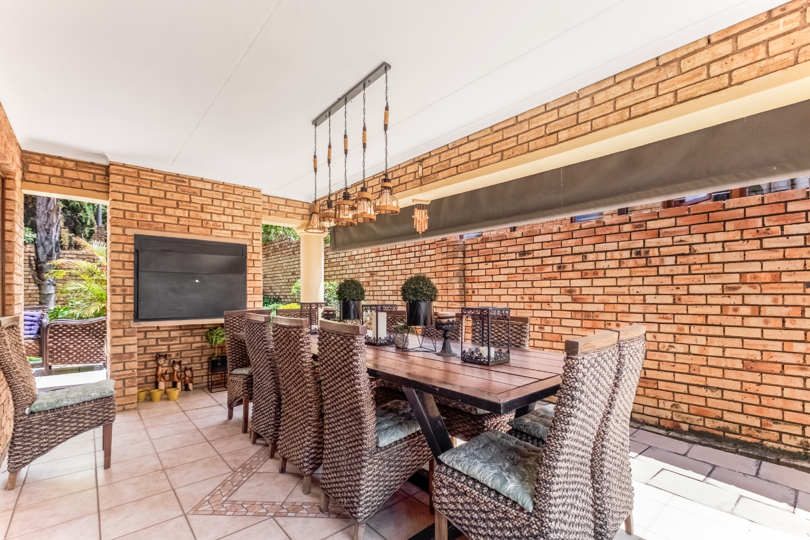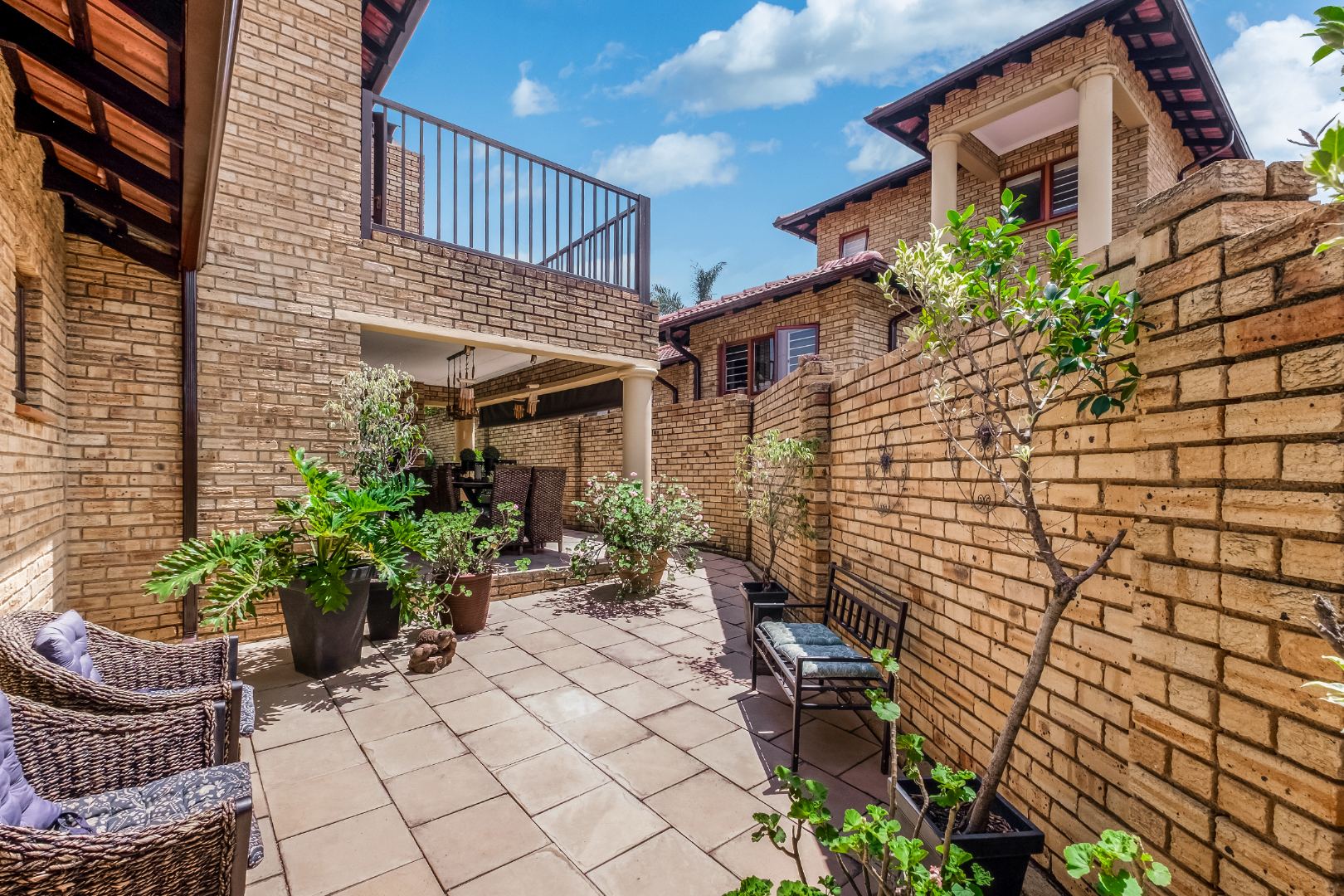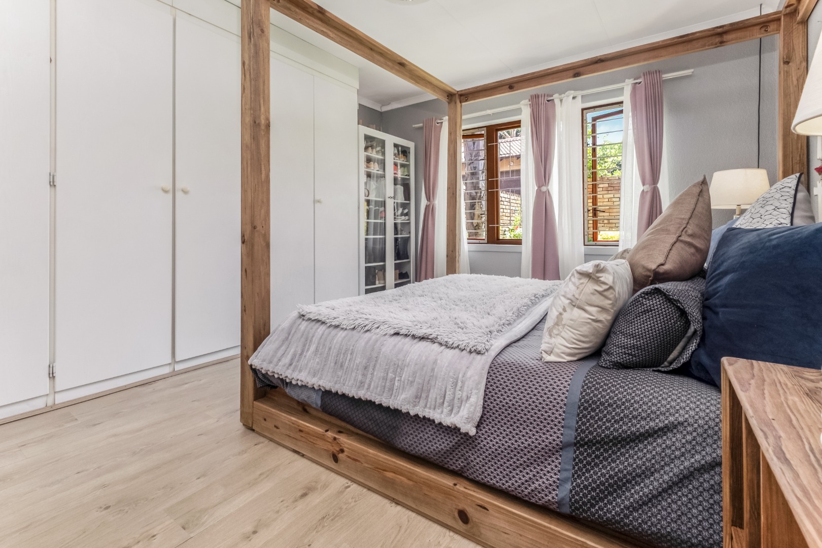 Enter into formal entrance hall with spacious living area with modern Kitchen. The living area leads out to the covered patio with Built in Braai. The Open Plan kitchen offers breakfast bar/counter, ample cupboard and working space, stylish Light fittings. Granite Tops and Pantry cupboard. The scullery and back door lead out to the Private Drying Yard. Three bedrooms with laminated flooring in mint condition. The master bedroom has ample cupboard space with a full bathroom. The one bedroom has French doors leading into the garden. The guest Bathroom offers a bath only. Upstairs offers a family room/PJ Lounge consisting of 65 sqm, the one side could easily be used as work from office or Dry walled for separate space. This property is tucked away in the heart of the complex. The double automated garages offer direct access into the home. The small garden offers a beautiful established garden to the one side and the other side is paved for small pets and grassed drying area all with minimal upkeep. Double Automated garages with direct access into the house. Pet friendly (2) Fibre Ready. This complex is safe and secure with Electric Fence and Affordable Levies. Visitors Parking. This home ideal for starter family with minimal Maintenance. The Invertor and Solar system are owned outright with no lease or contract. Both bathrooms and kitchen have blinds. Bedrooms laminated flooring and Living areas are tiled. The property is full enclosed for pets. Please email us to make arrangements to view.