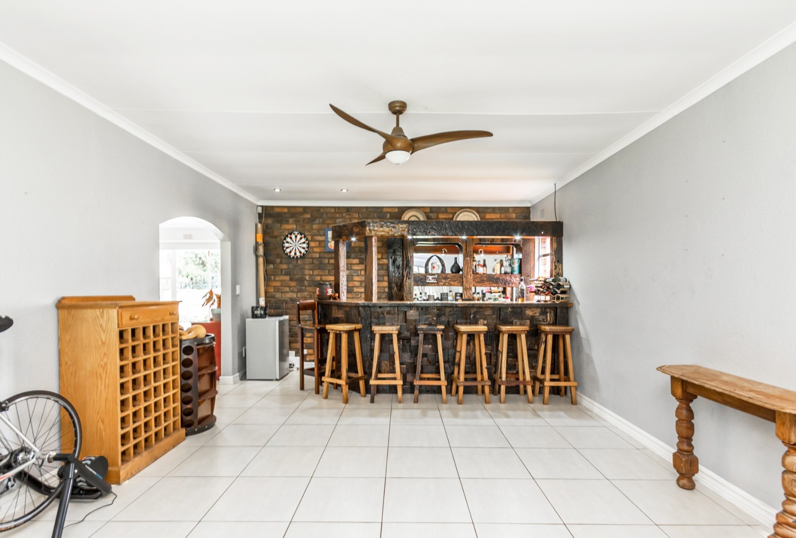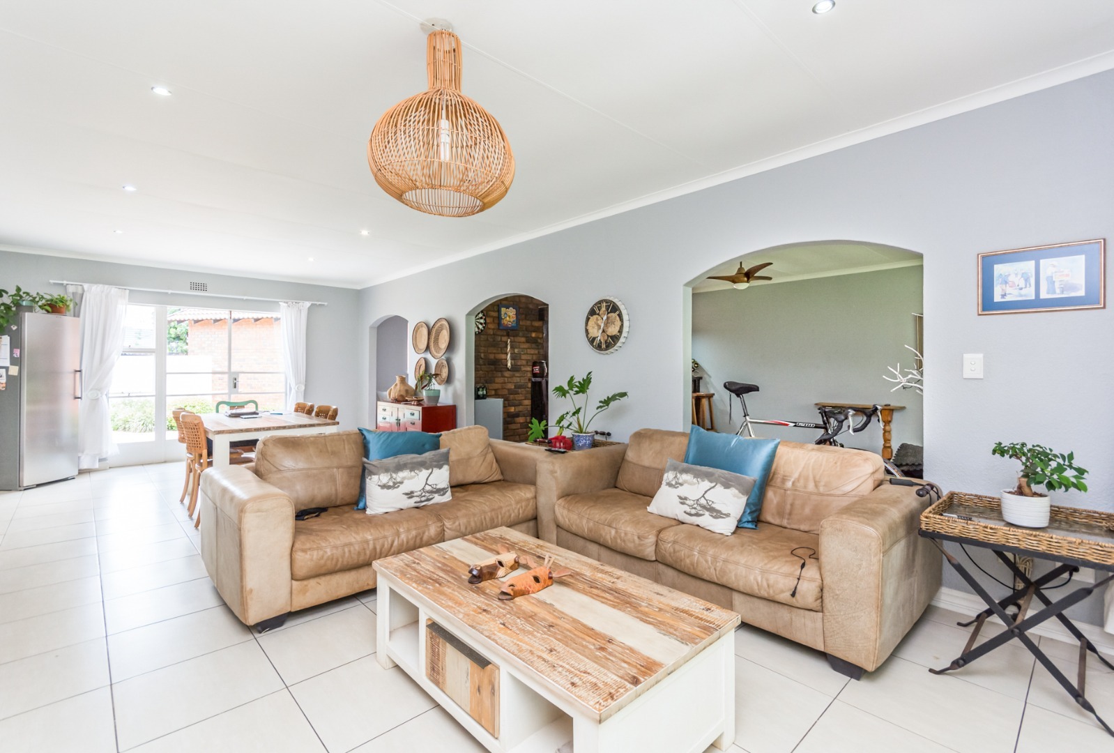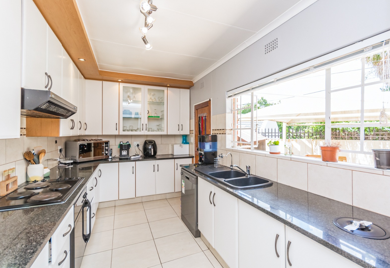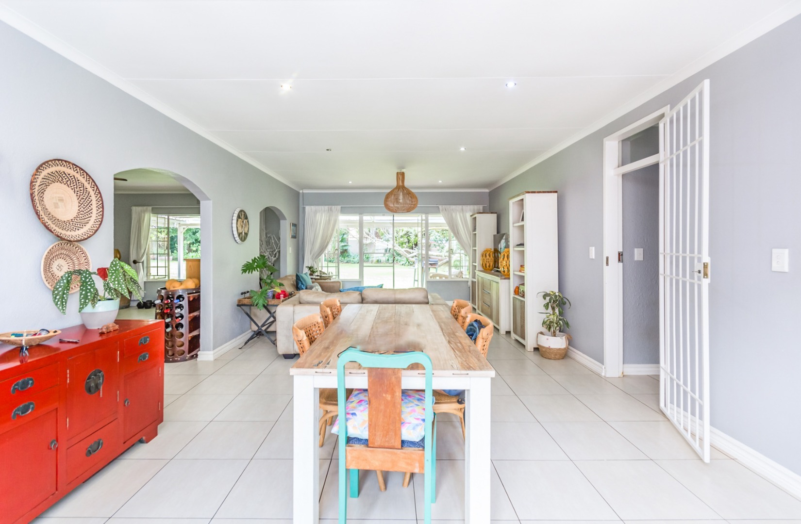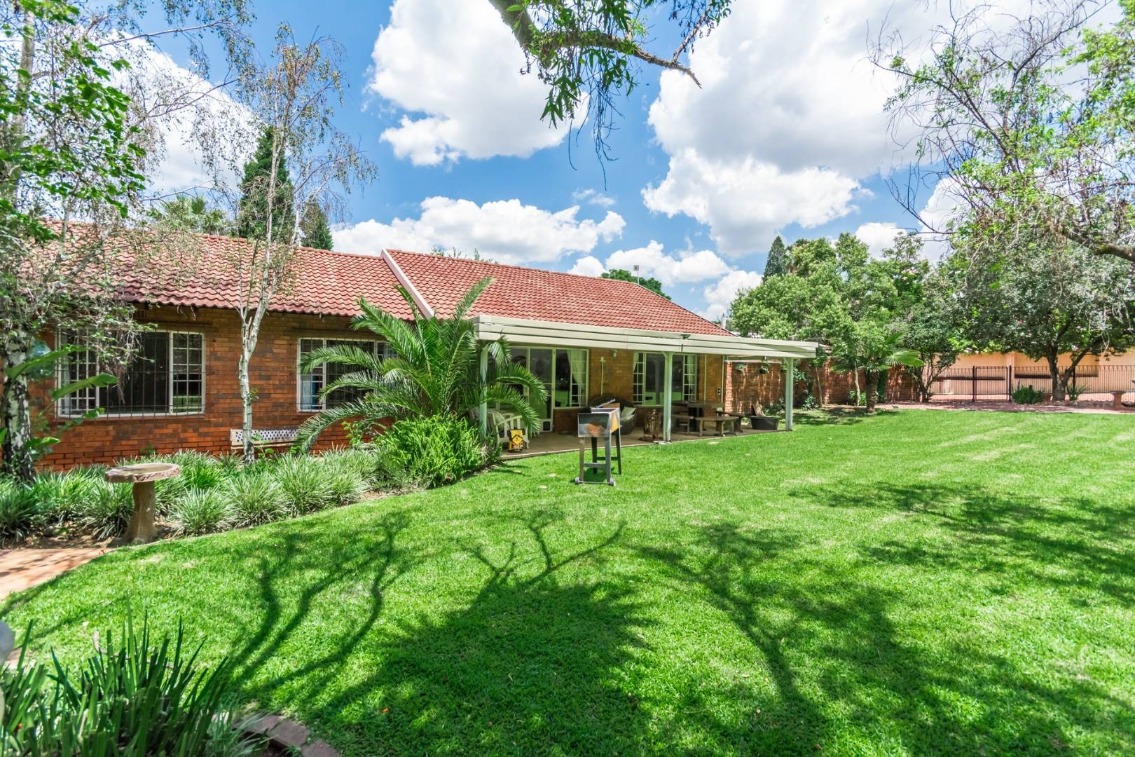 Step into the spacious open-plan lounge, dining room, and family room, which effortlessly flow to the exterior of the home on either side. This layout is ideal for hosting gatherings or enjoying quality family time. The separate kitchen is well-equipped with ample cupboard space and accommodates a double-door fridge, catering to all your culinary needs. Enjoy the outdoors on the covered patio that overlooks a large, lush garden—perfect for children to play and explore. Adjacent to the solar-heated swimming pool, you'll find an additional covered entertainment area, making it an ideal spot for socializing and relaxation. The home features three comfortable bedrooms, including a main bedroom with air-conditioning, and two bathrooms, with the main en-suite.