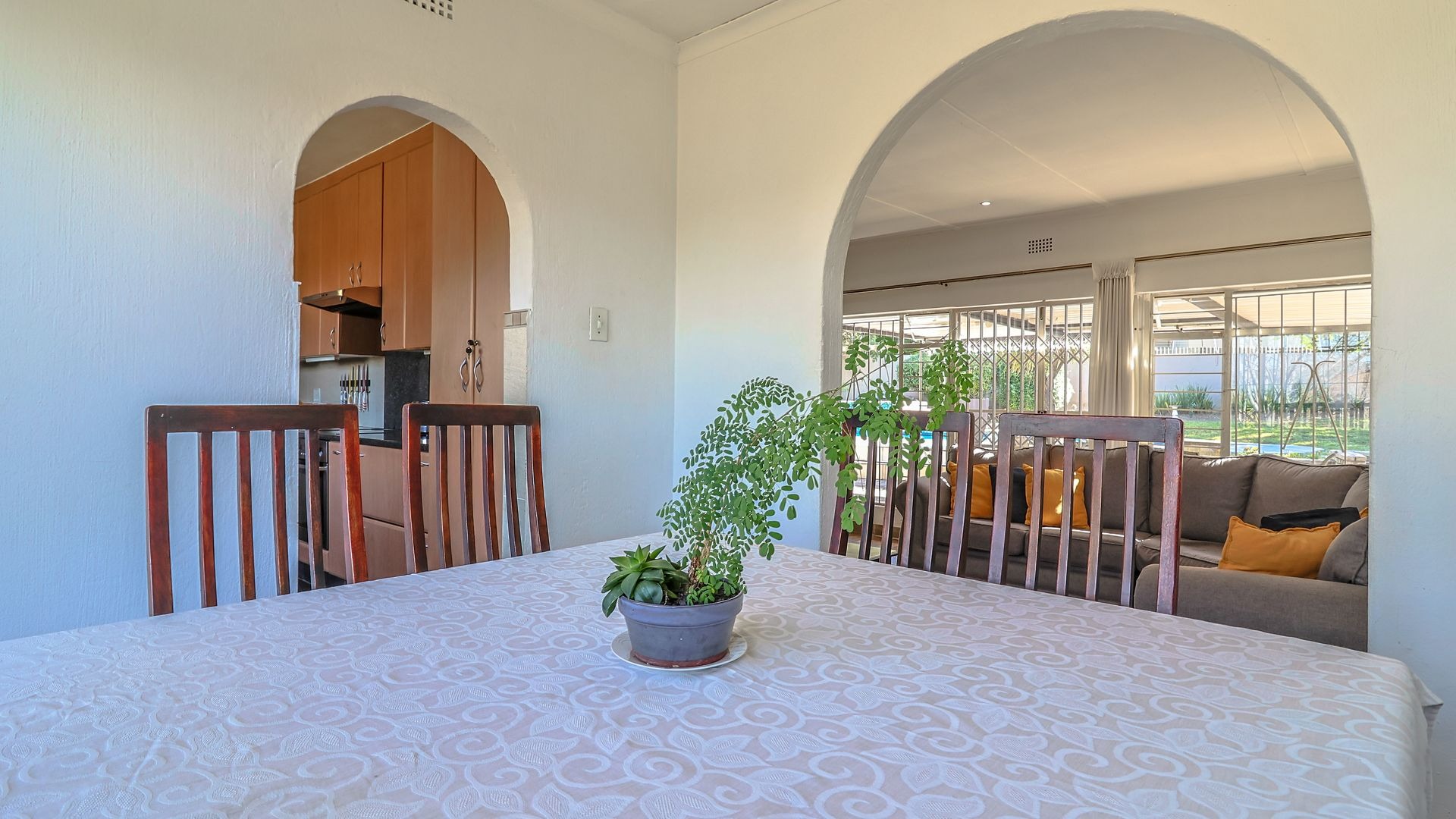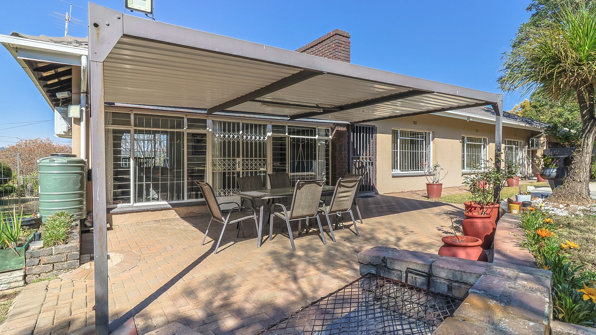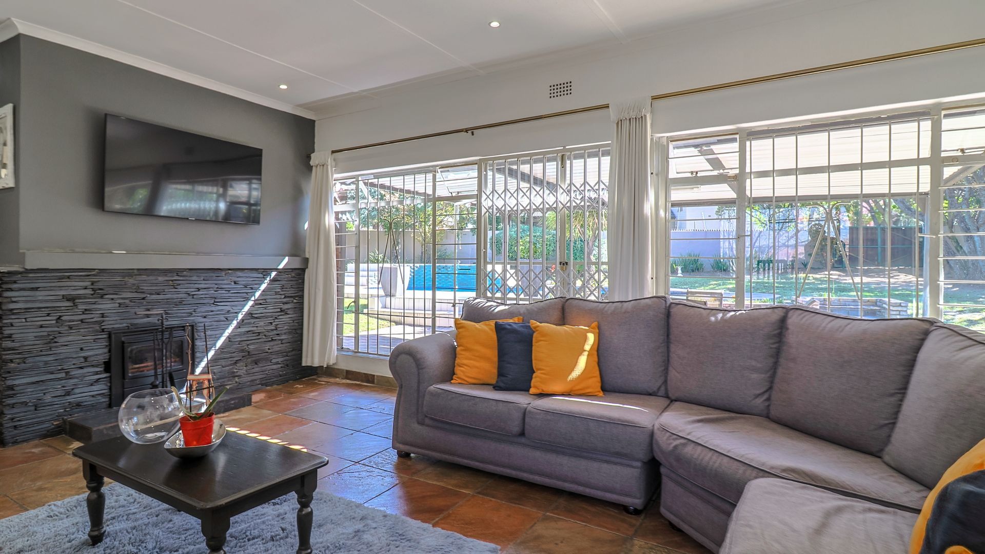 Outside, the pool area is neat, inviting, and built for entertaining, with a lovely sitting and braai area that brings people together — whether it’s family gatherings or laid-back Sunday lunches.
