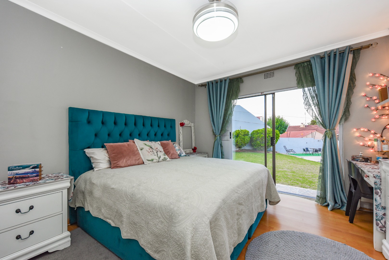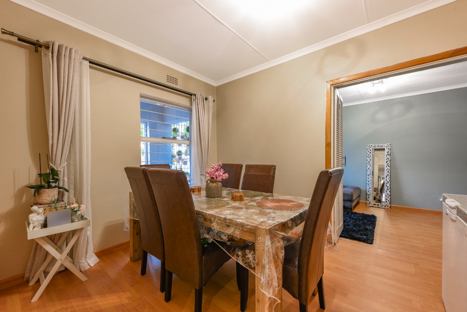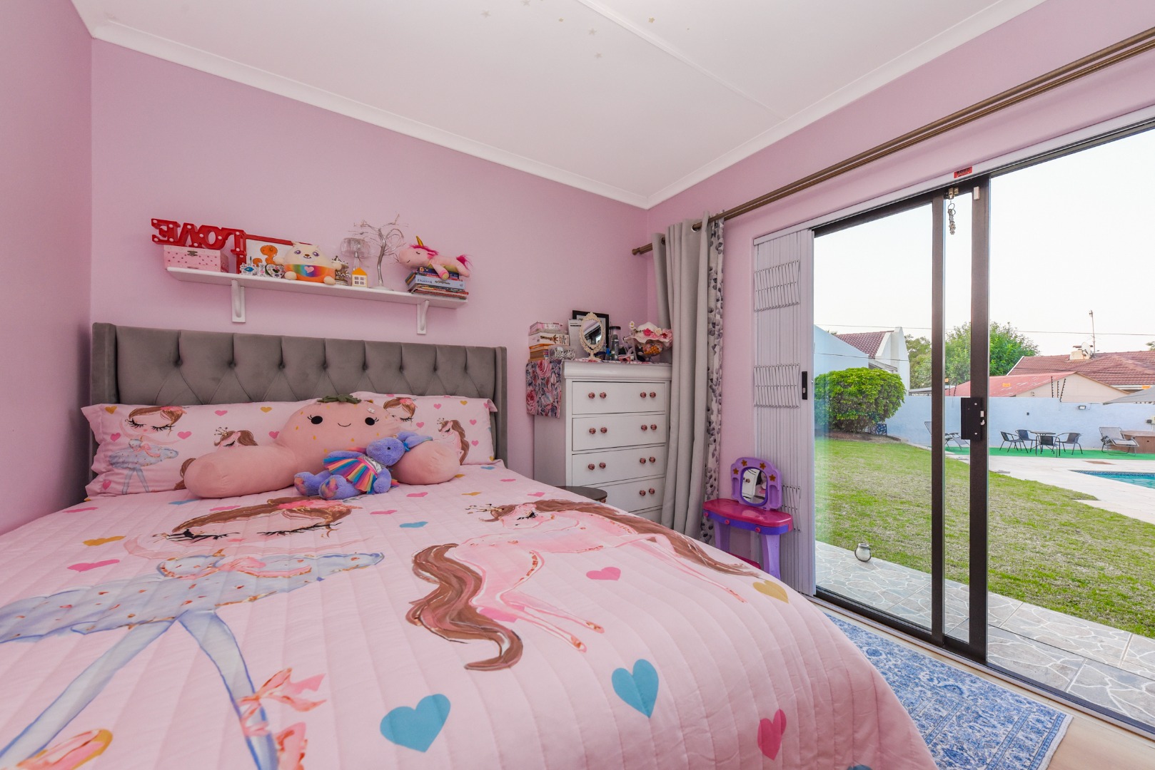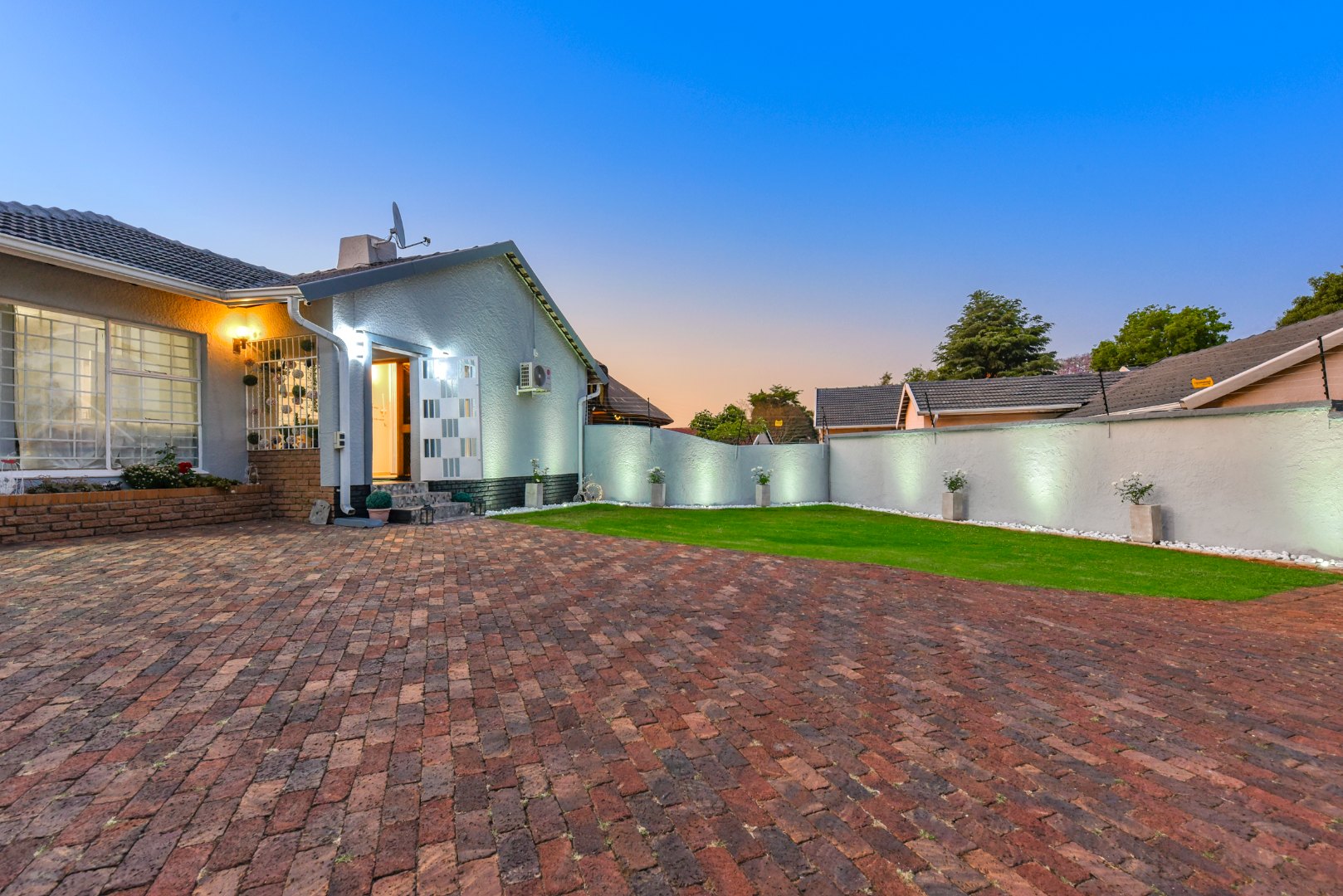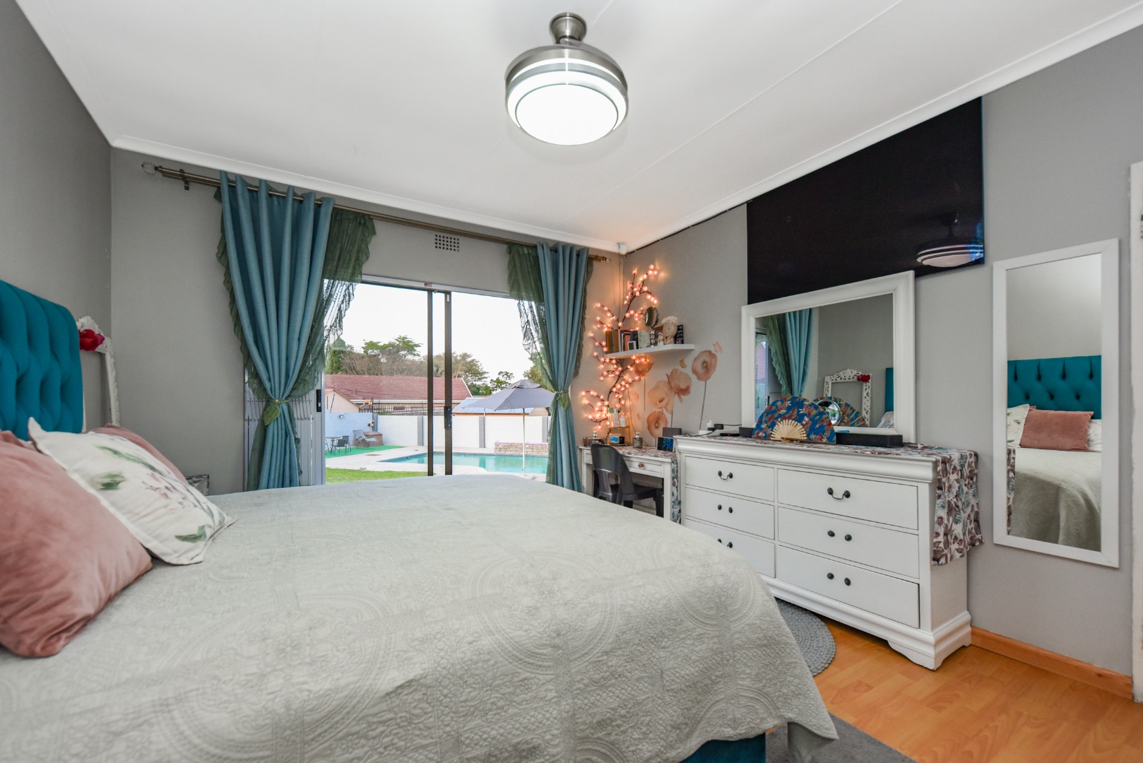 The expansive outdoor area is a true highlight, perfect for the South African lifestyle. A large, sparkling swimming pool and spacious, well-maintained lawn create an ideal setting for recreation. The charming thatched lapa, complete with lighting, offers an excellent entertainment space for gatherings. The property also features a lovely garden, paving, a Wendy house for storage, and generous off-street parking for up to six vehicles.
