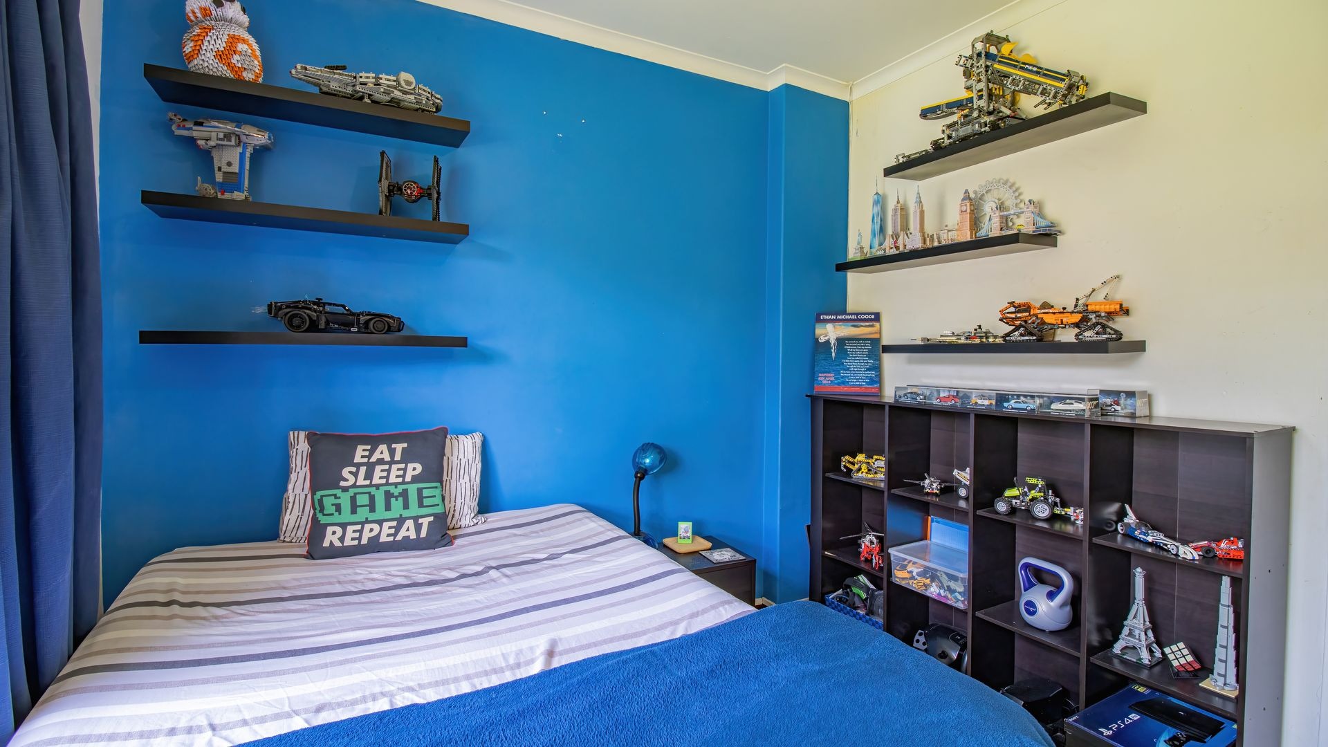 Inside, the home boasts three light-filled bedrooms, all with large windows and ceiling fans. The main bedroom offers an en-suite bathroom with a bath, basin, and toilet, while the second family bathroom includes a shower for added convenience.