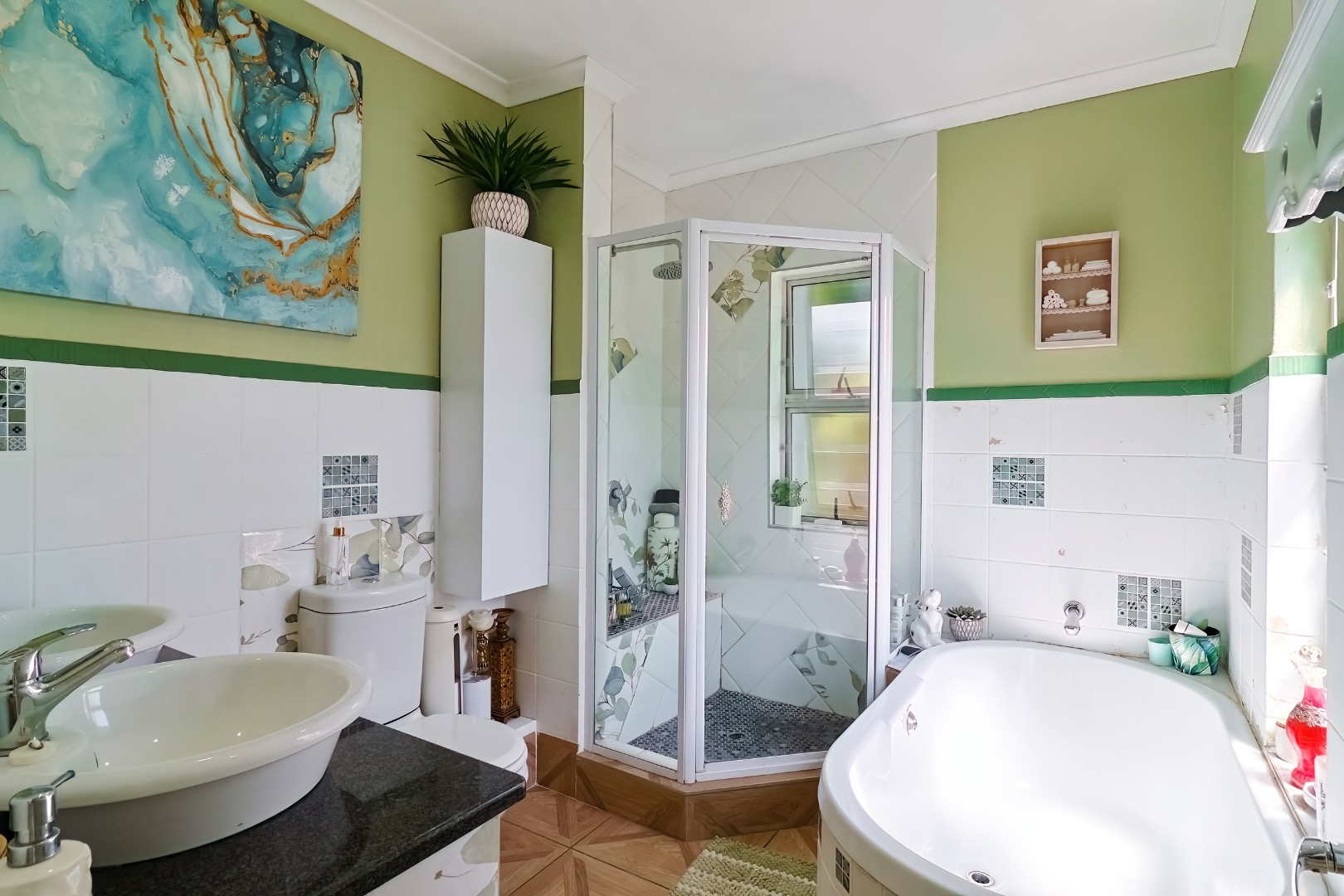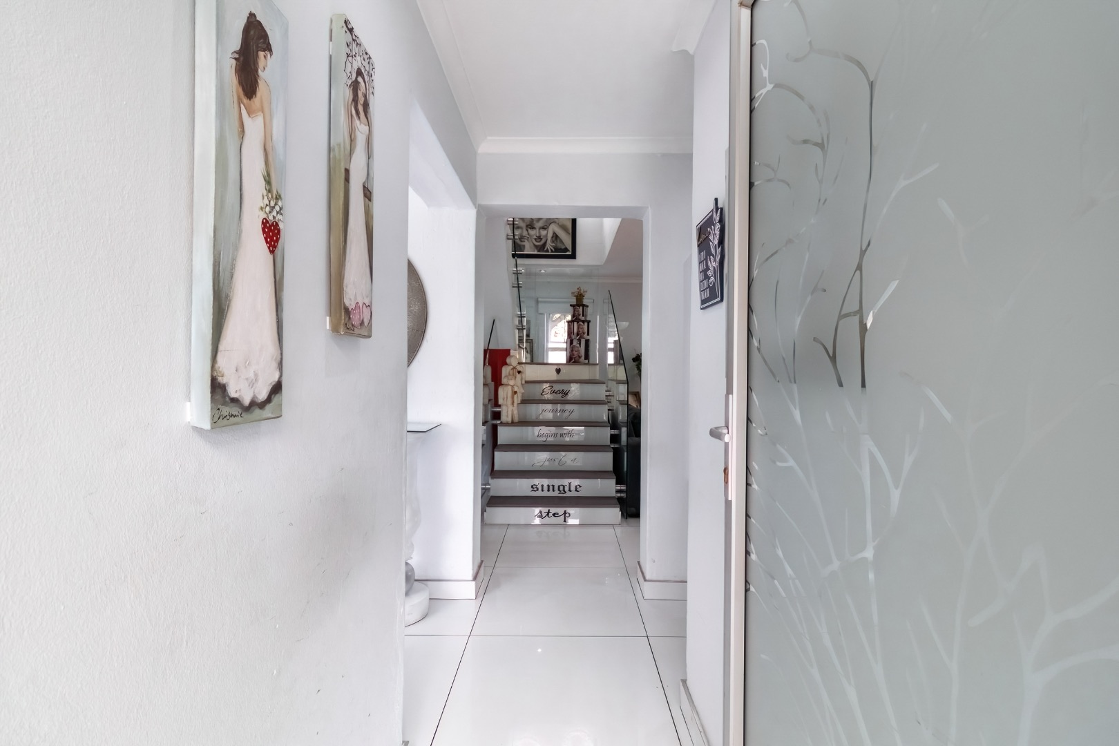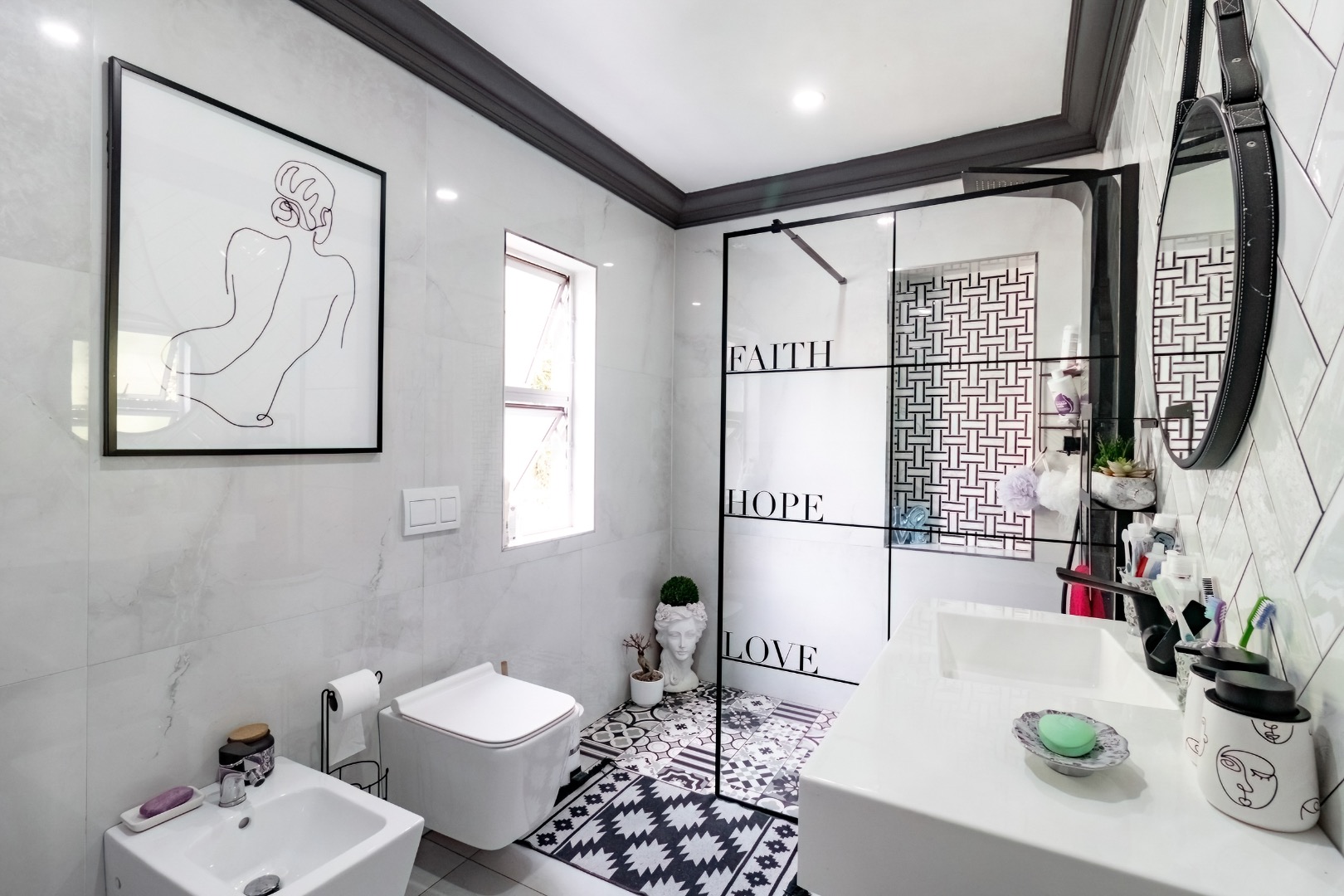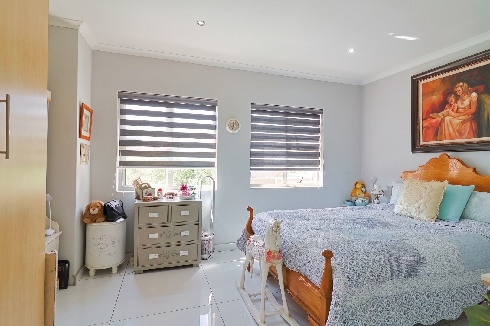 Upstairs you’ll find four generously sized bedrooms, all with built-in cupboards and plenty of natural light. The main bedroom features a modern en-suite bathroom and ample cupboard space, while a stylish second bathroom serves the remaining bedrooms.