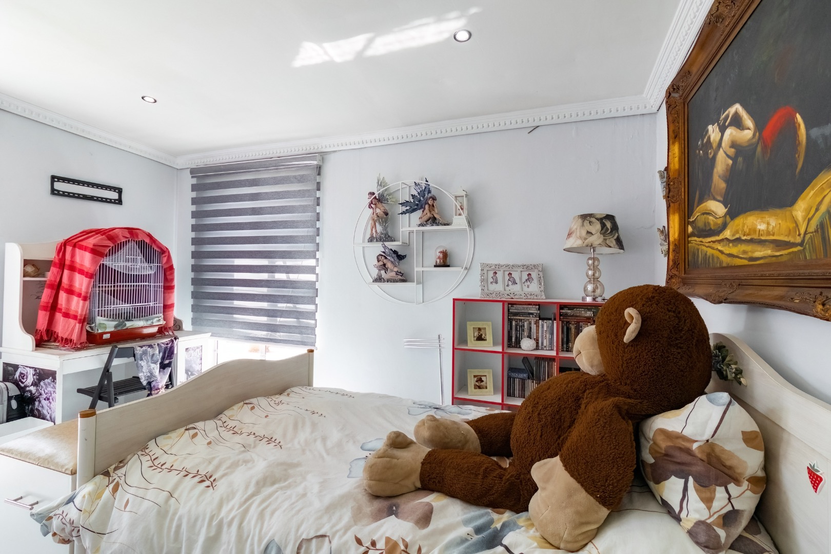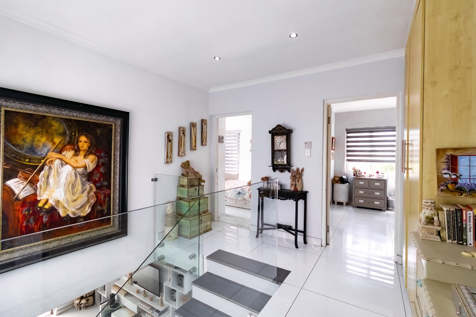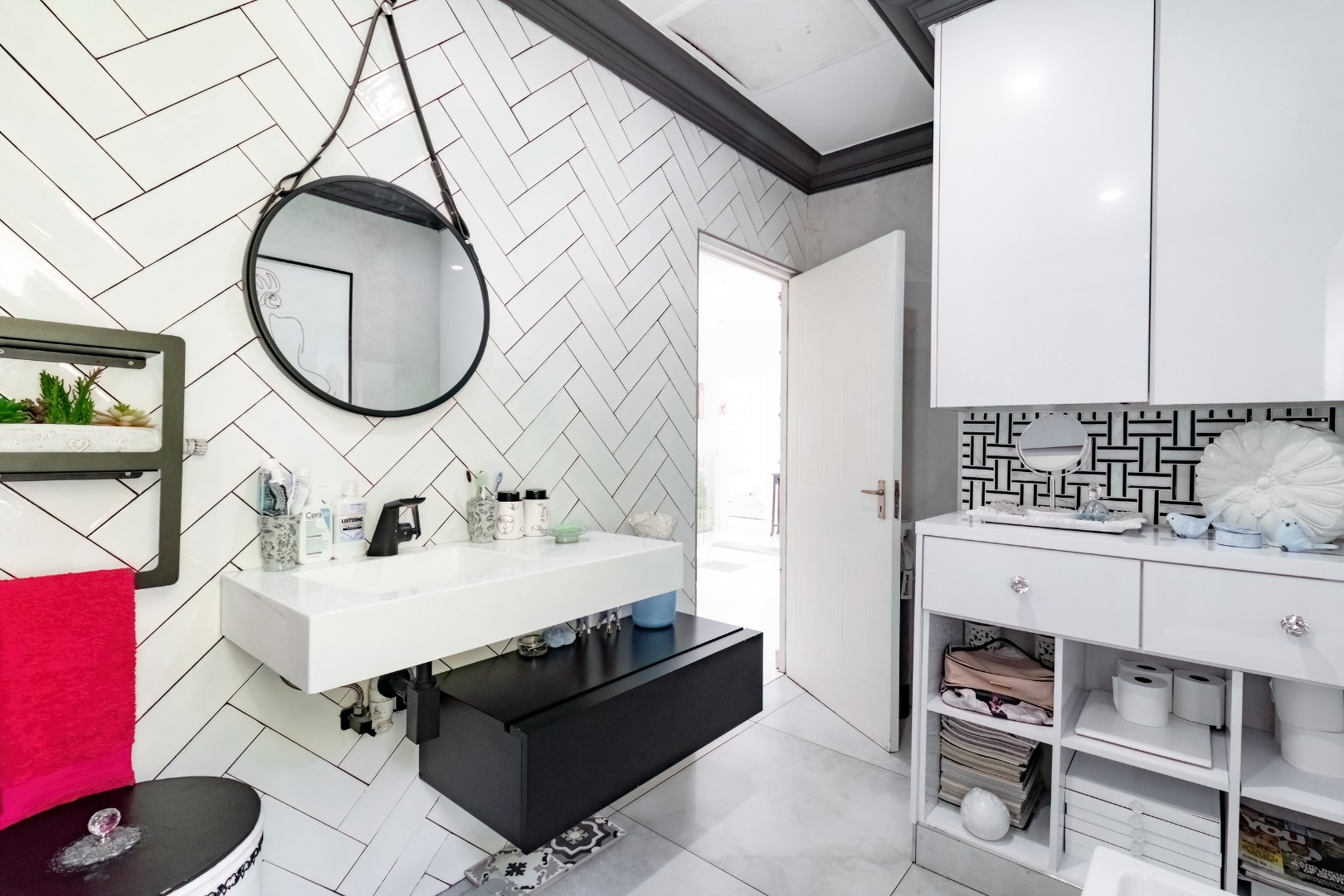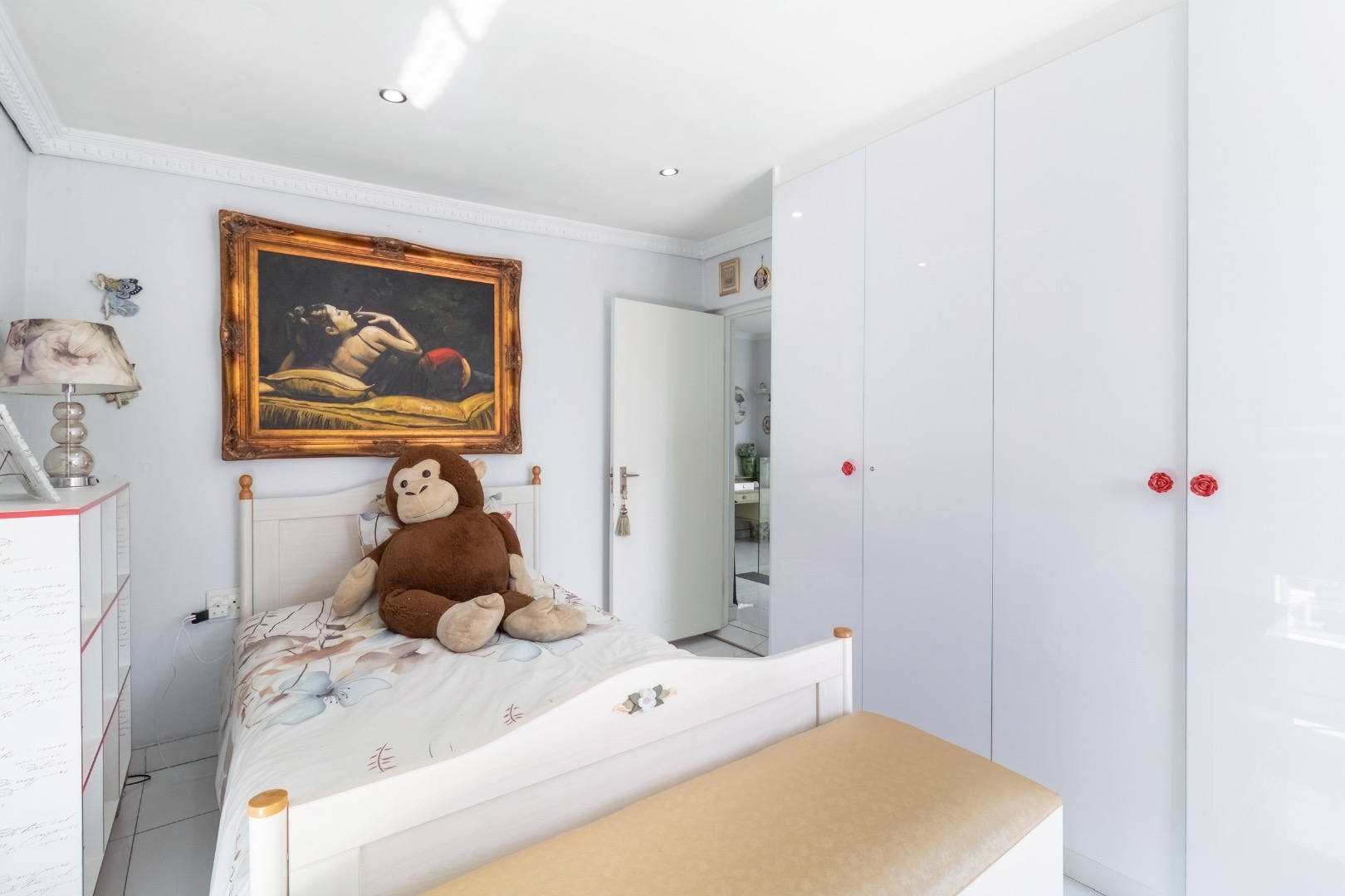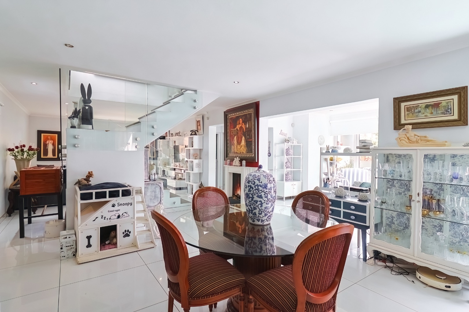 Upstairs you’ll find four generously sized bedrooms, all with built-in cupboards and plenty of natural light. The main bedroom features a modern en-suite bathroom and ample cupboard space, while a stylish second bathroom serves the remaining bedrooms.