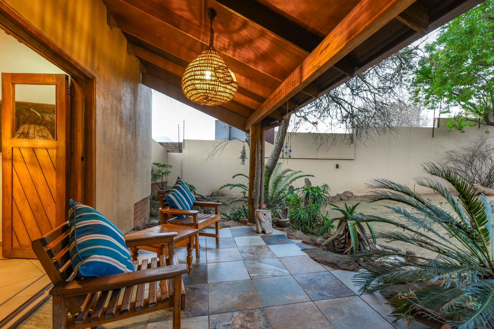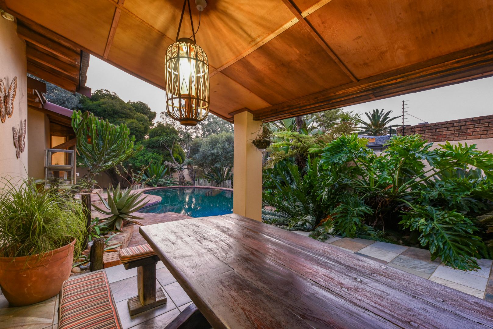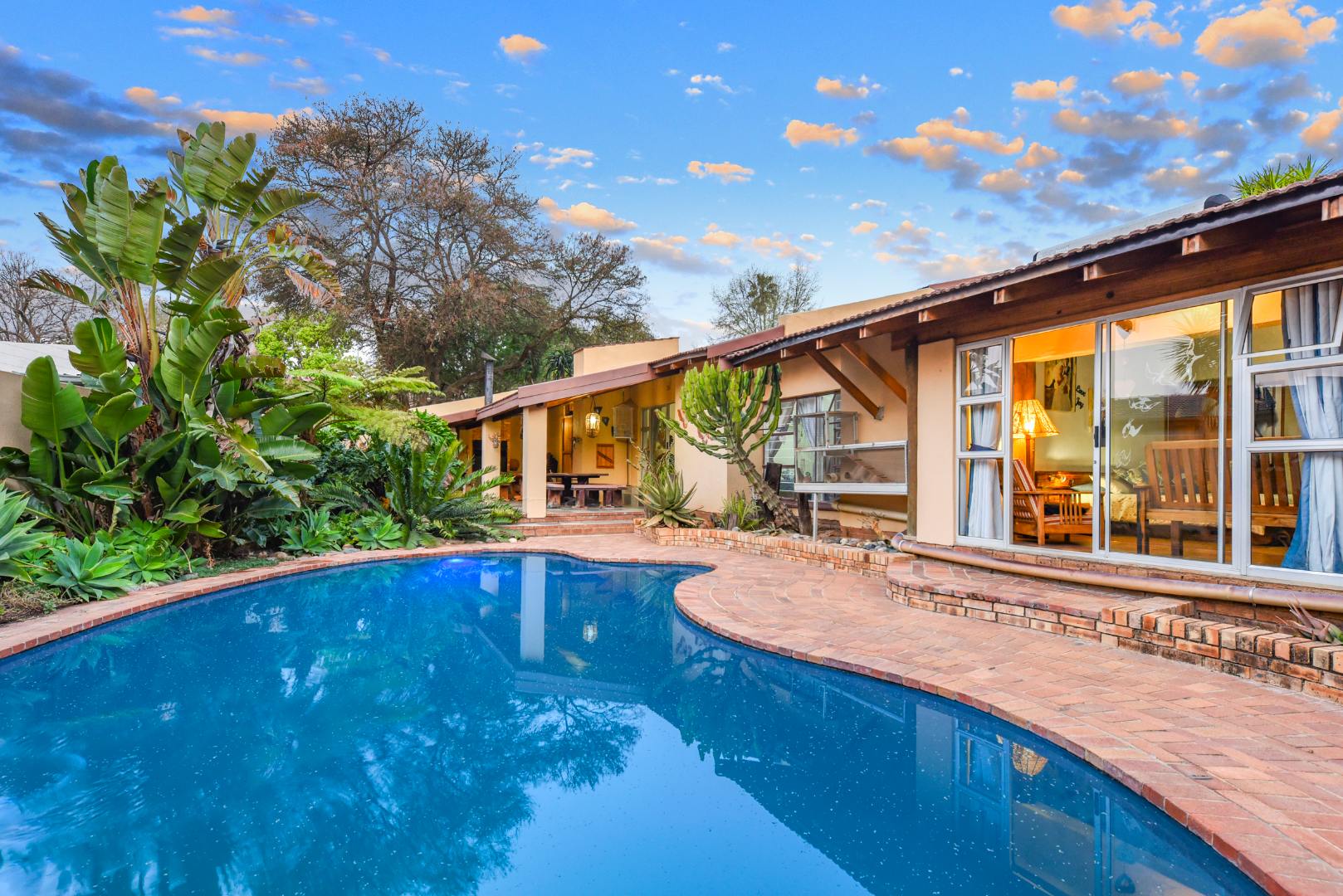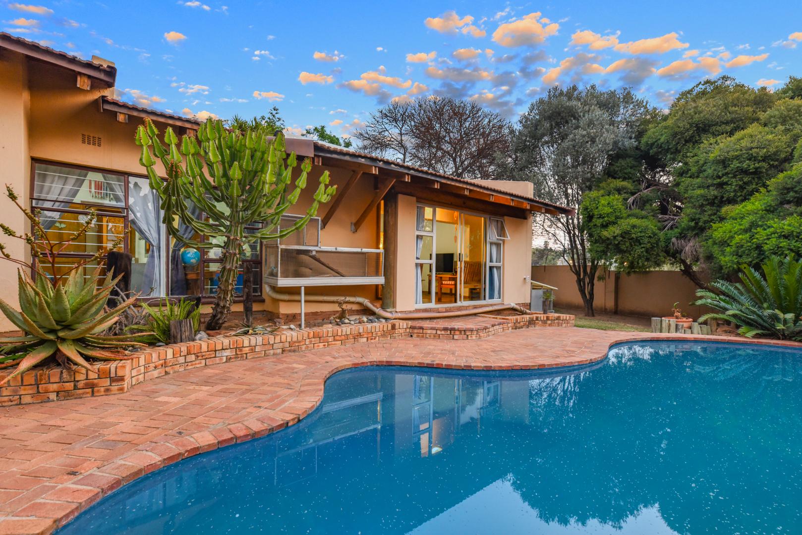 Outside, enjoy the tranquil setting of a lush, manicured garden complete with a sparkling pool and covered entertainment patios — perfect for weekend braais or family gatherings.