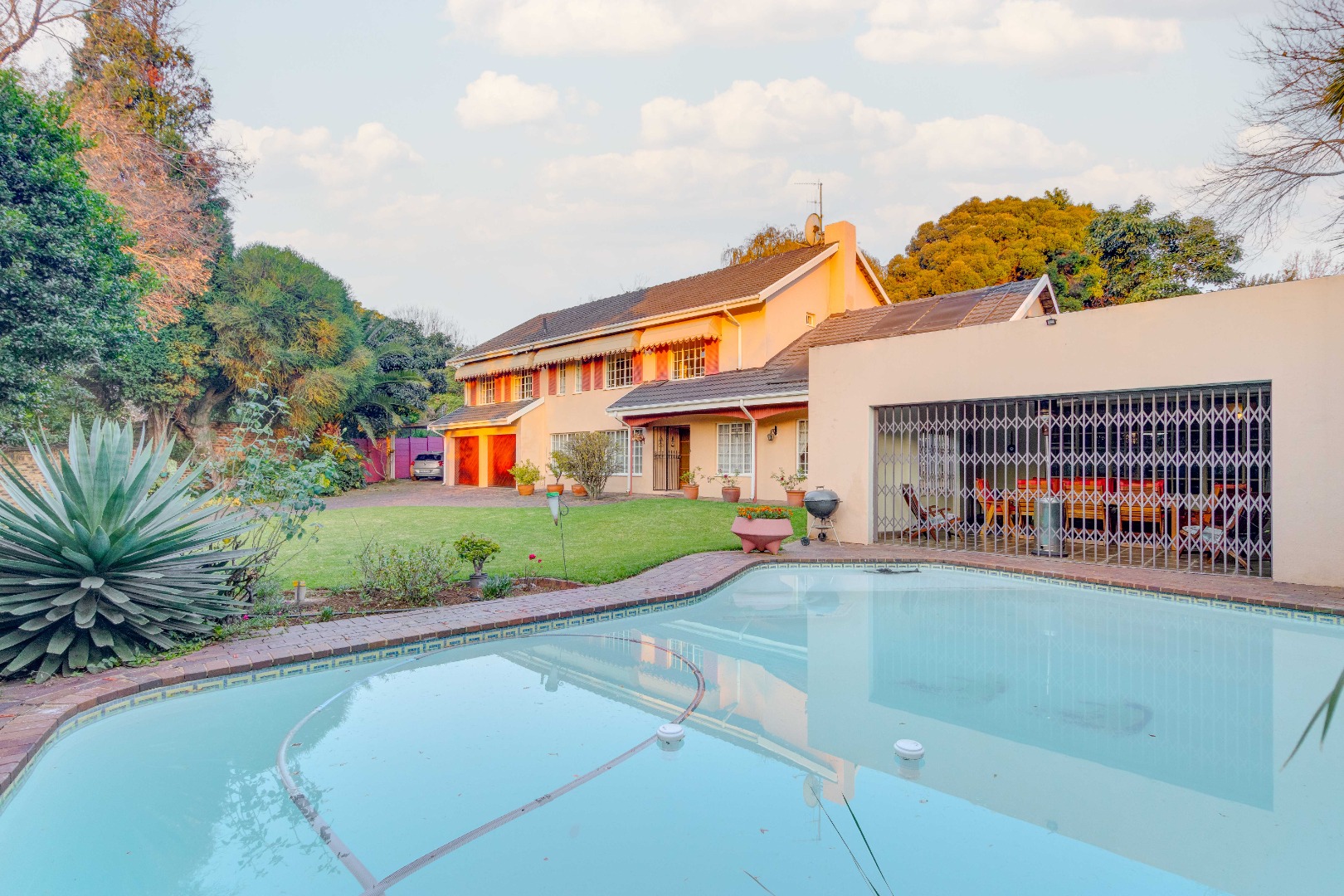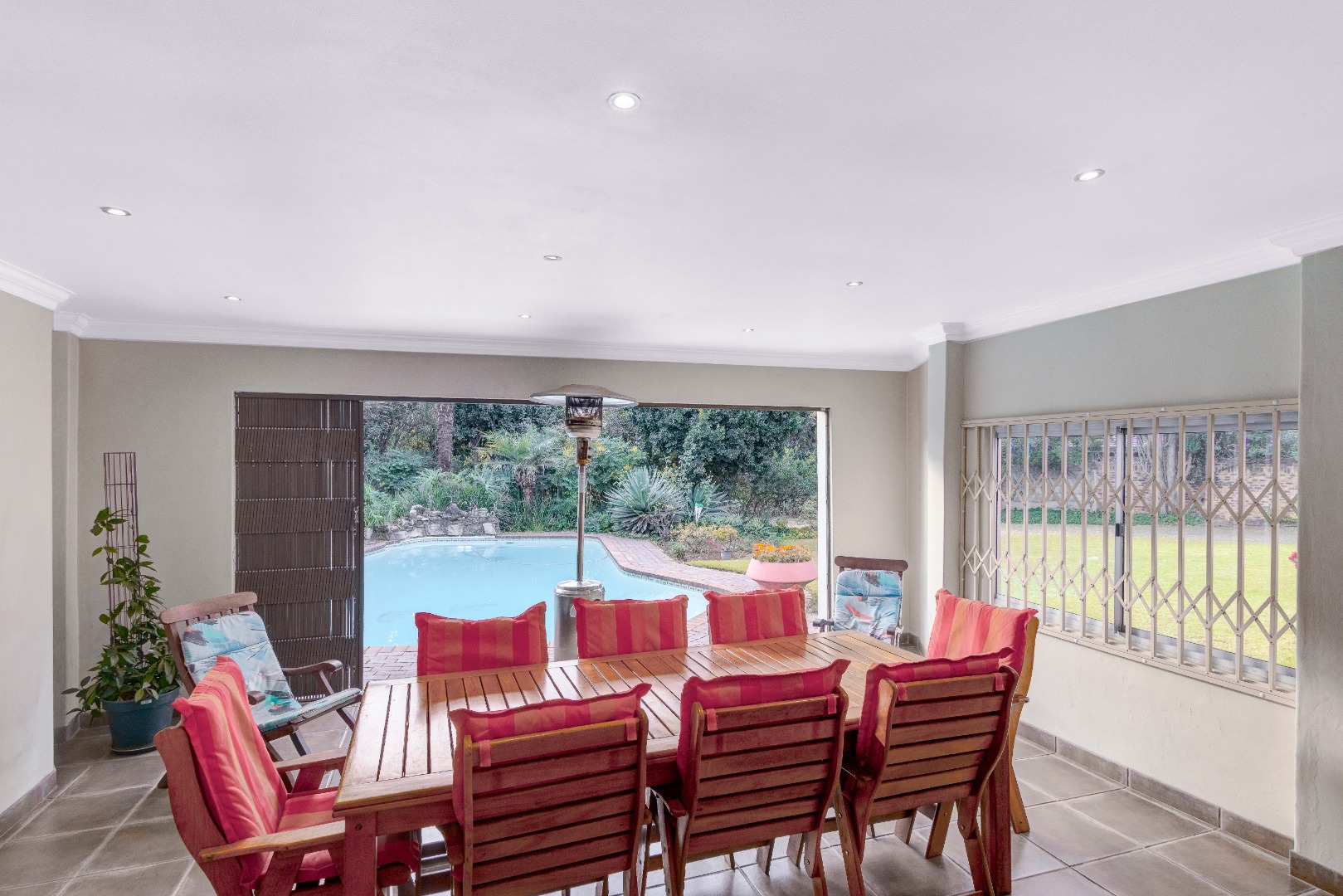 * The entertainment space opens out onto the sparkling pool and expansive garden, perfect for family fun or outdoor gatherings