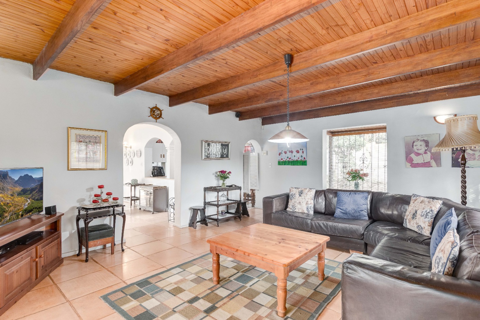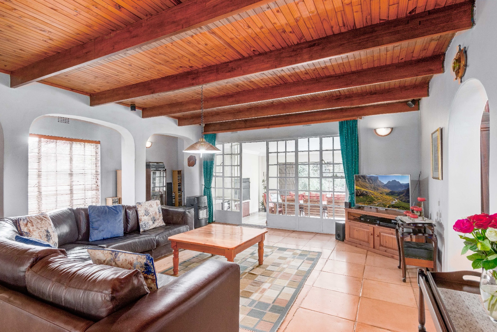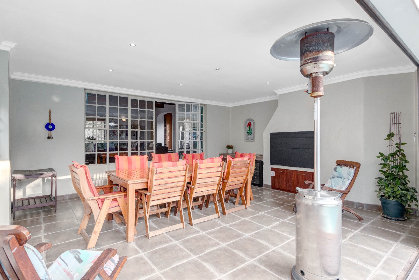 * A warm and welcoming family/TV lounge that flows seamlessly into a bright, airy indoor entertainment area with a built-in braai ideal for year-round hosting