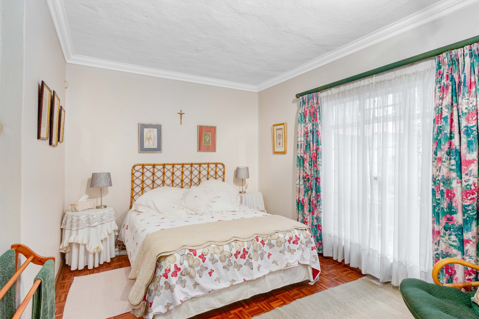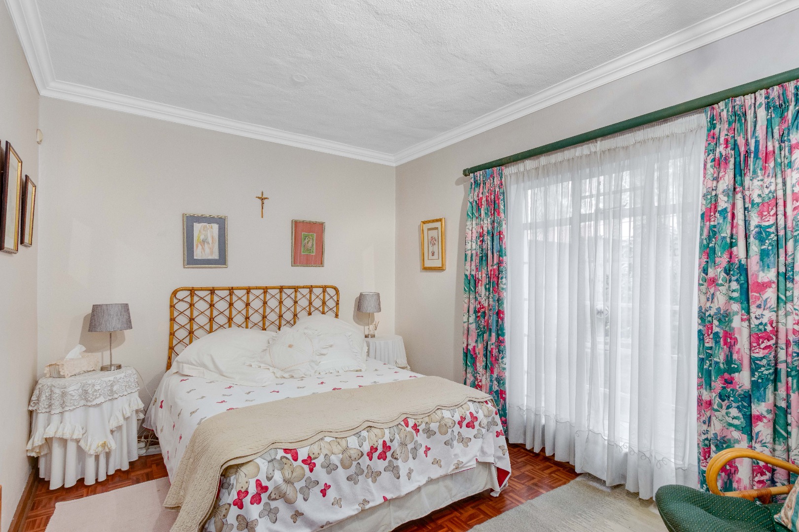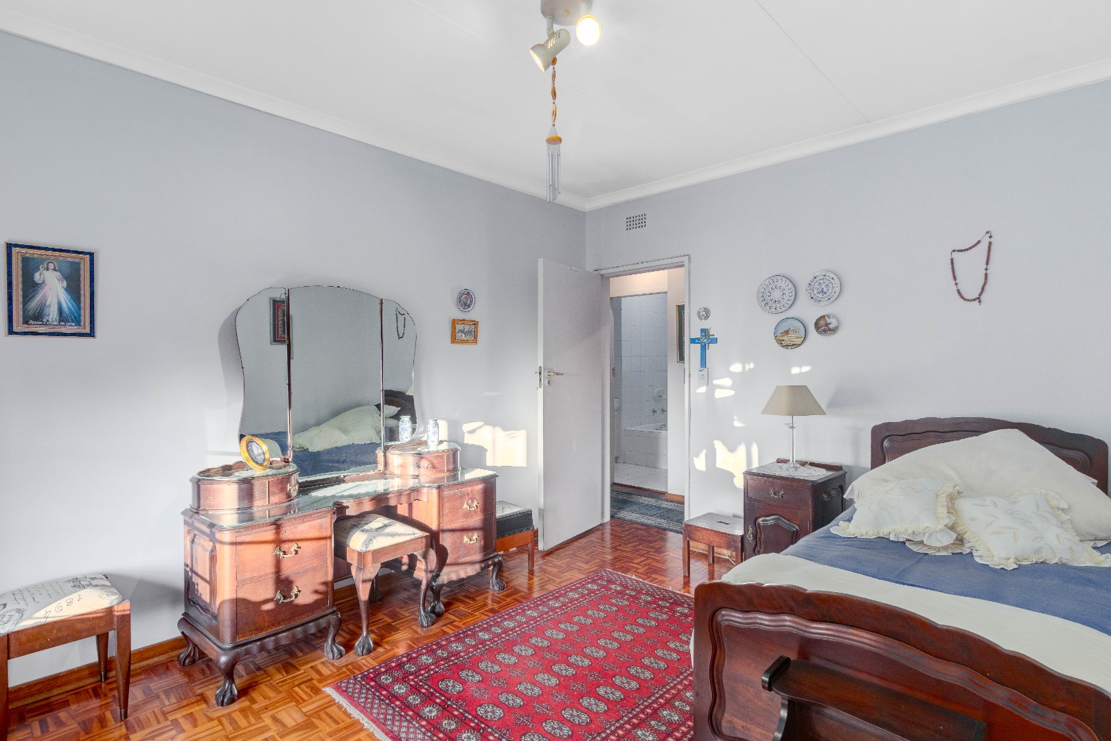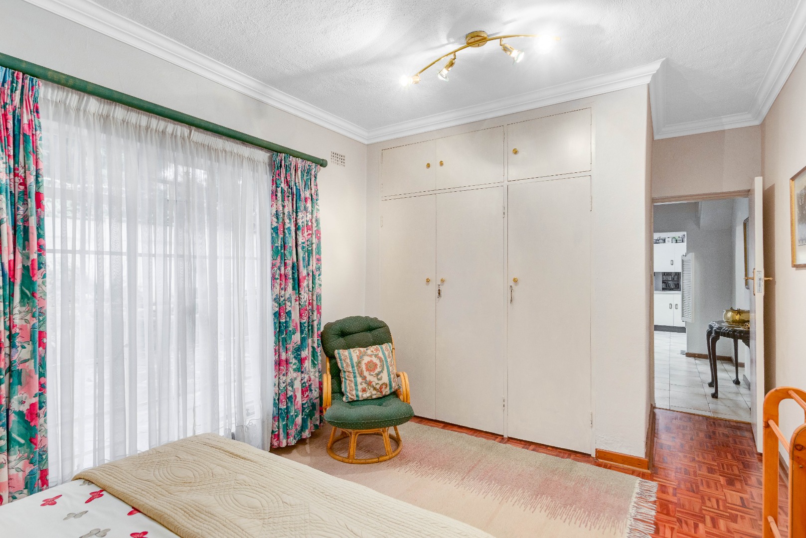 The grand arched entrance hints at the classic design and sturdy build of a house that has stood the test of time. Built for memories, built for life. Inside, warm parquet flooring flows throughout the home, complementing the solid finishes and timeless elegance.
