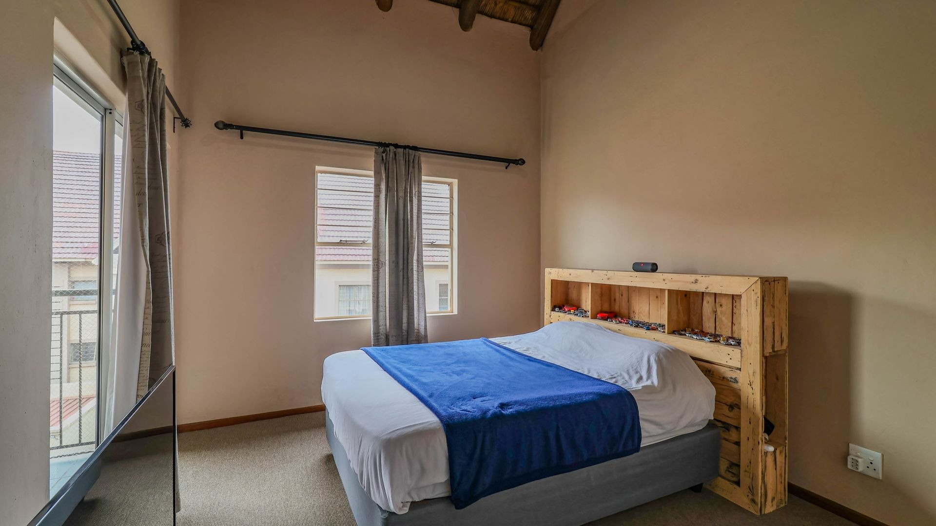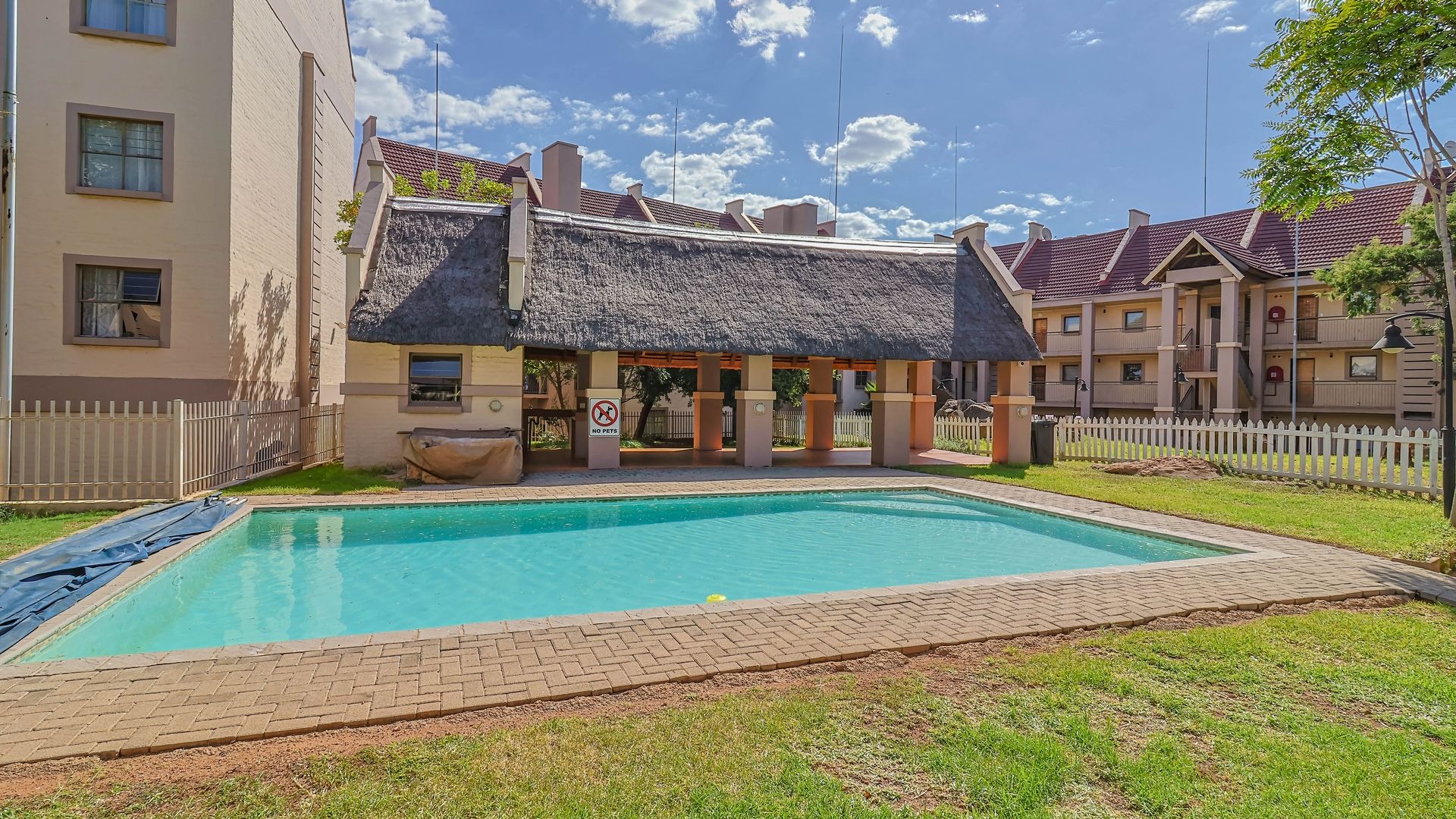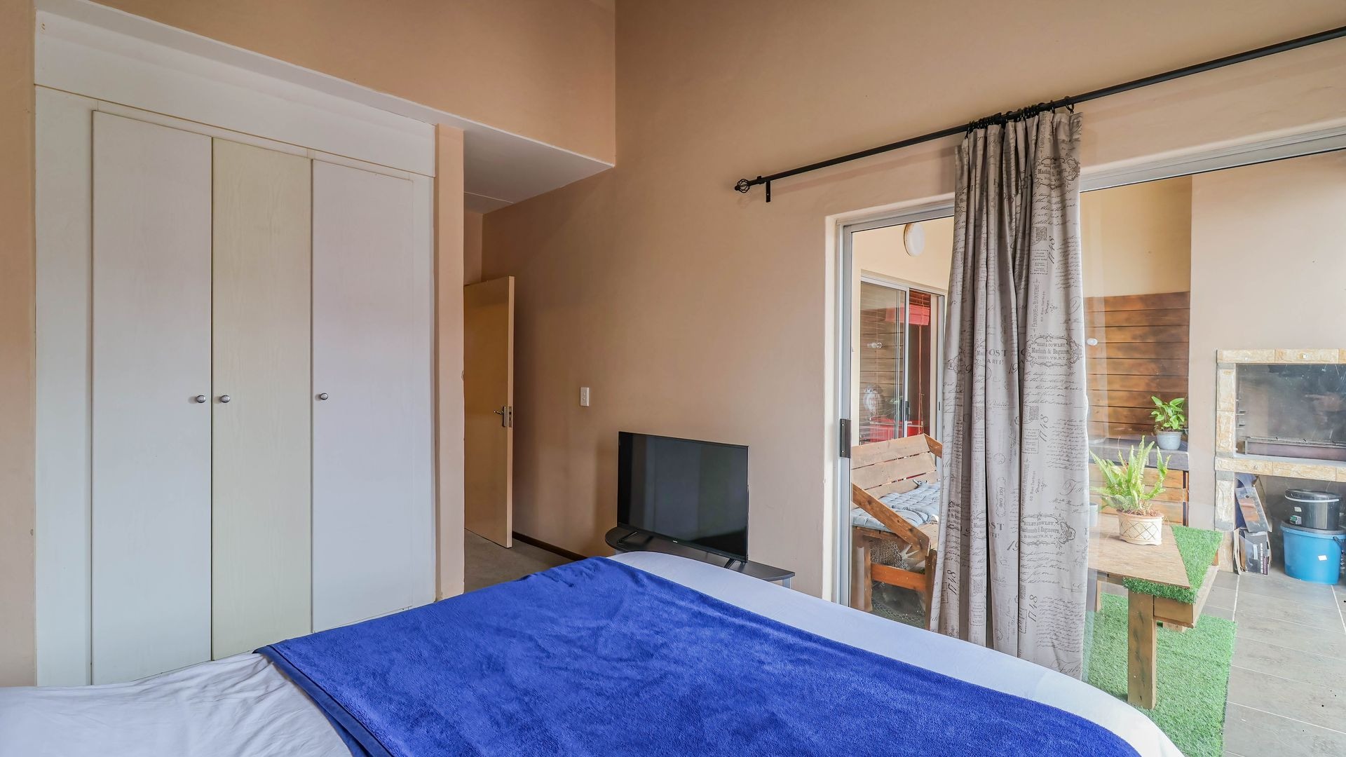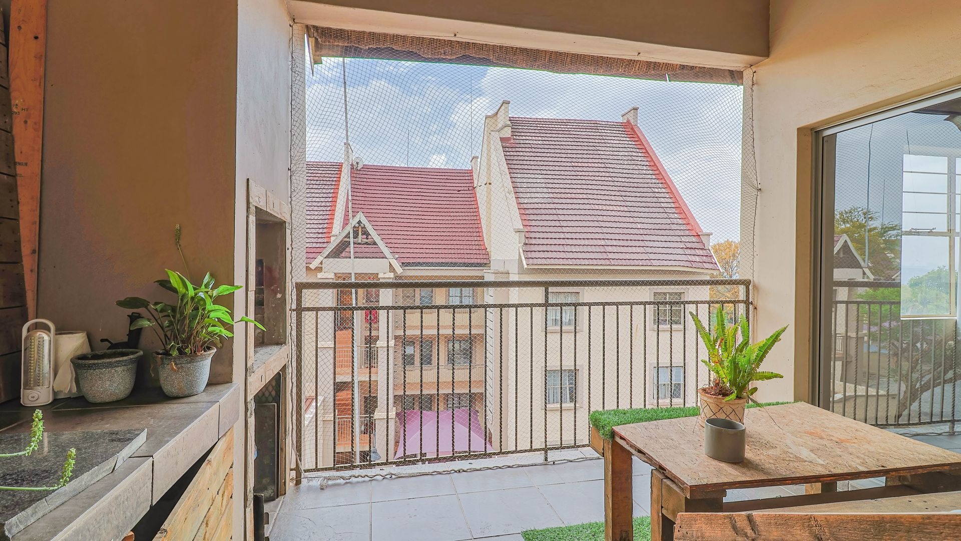 Enter through the front door/security gate into beautiful kitchen with granite tops, undercover oven, glass hob,(Bosch), space for 1 appliance, double sink, lovely breakfast bar, lots of cupboards with soft close. New plumbing, geyser 3mths old. Double volume with ambient lights, lounge/dining room with a slider to the tiled, enclosed patio with built-in braai. Birdnetting to prevent nesting. Patio set to stay. Main Bedroom, carpeted (3 BIC) slider to same patio, MES Loo, basin and walk-in shower, 2nd bedroom carpeted (2 BIC), 2nd bathroom, loo, basin and bath, vanity. Bookshelf/display stand to stay. Go upstairs to the loft room. Use as lounge/entertainment room or use as 3rd bedroom. 2 basement covered parking bays. Blinds throughout except main. Not Pet friendly. 24 hr Guard, Pool in complex. Potential rental income R8500/R9000pm.