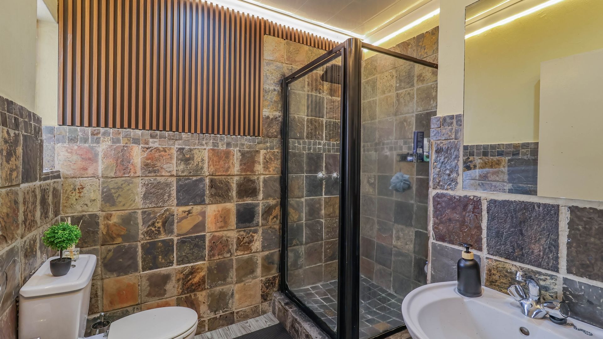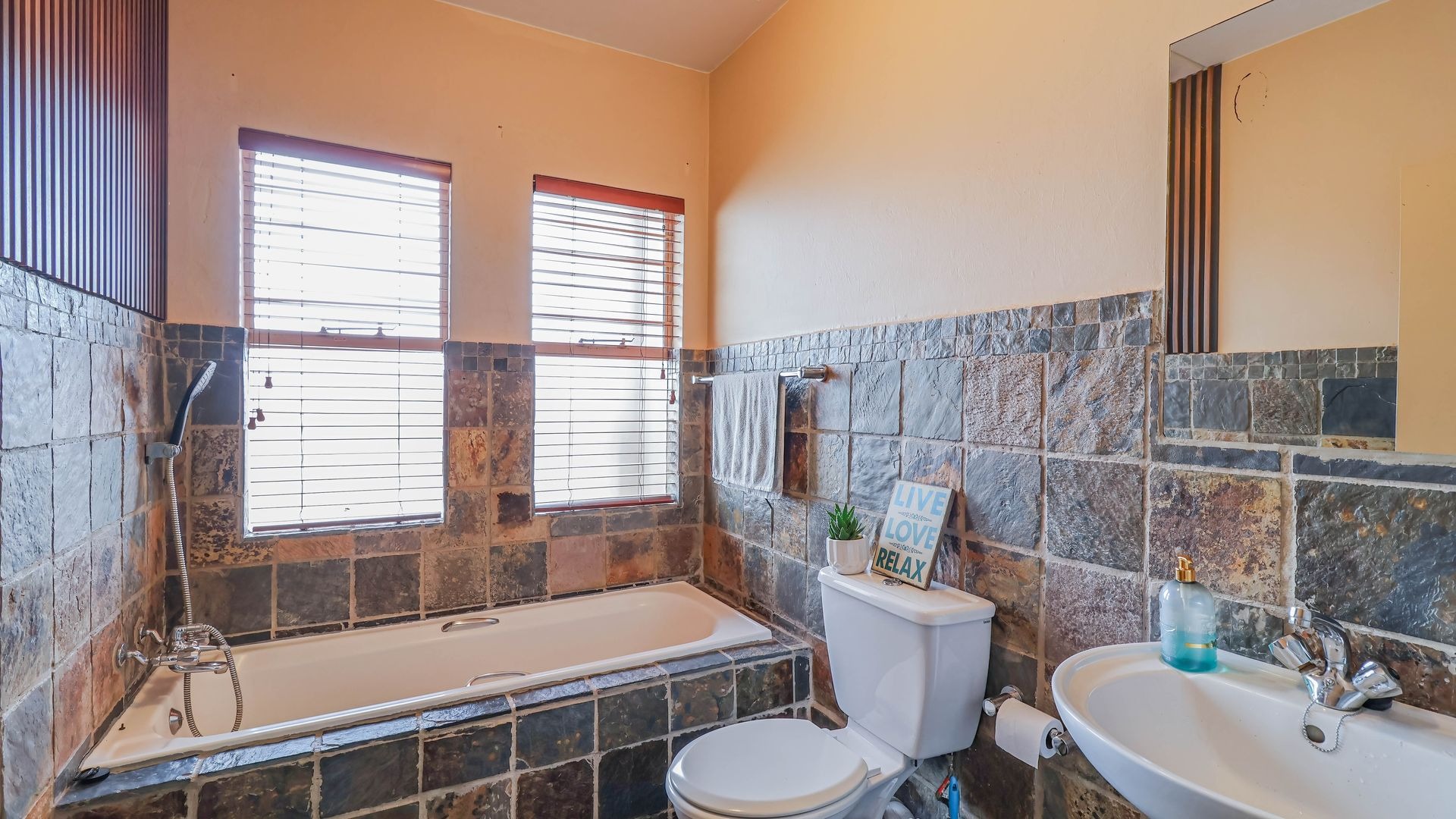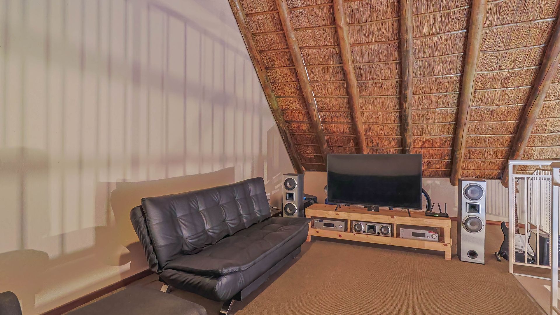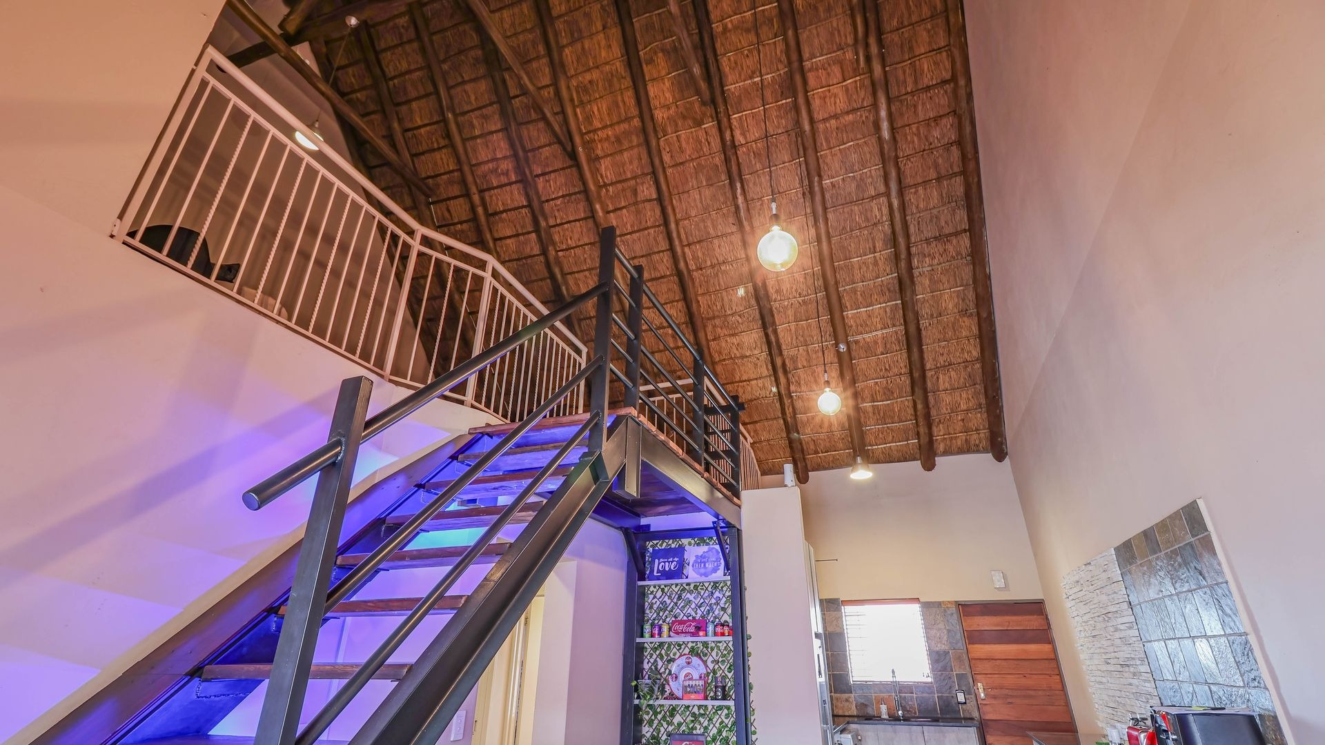 Enter through the front door/security gate into beautiful kitchen with granite tops, undercover oven, glass hob,(Bosch), space for 1 appliance, double sink, lovely breakfast bar, lots of cupboards with soft close. New plumbing, geyser 3mths old. Double volume with ambient lights, lounge/dining room with a slider to the tiled, enclosed patio with built-in braai. Birdnetting to prevent nesting. Patio set to stay. Main Bedroom, carpeted (3 BIC) slider to same patio, MES Loo, basin and walk-in shower, 2nd bedroom carpeted (2 BIC), 2nd bathroom, loo, basin and bath, vanity. Bookshelf/display stand to stay. Go upstairs to the loft room. Use as lounge/entertainment room or use as 3rd bedroom. 2 basement covered parking bays. Blinds throughout except main. Not Pet friendly. 24 hr Guard, Pool in complex. Potential rental income R8500/R9000pm.