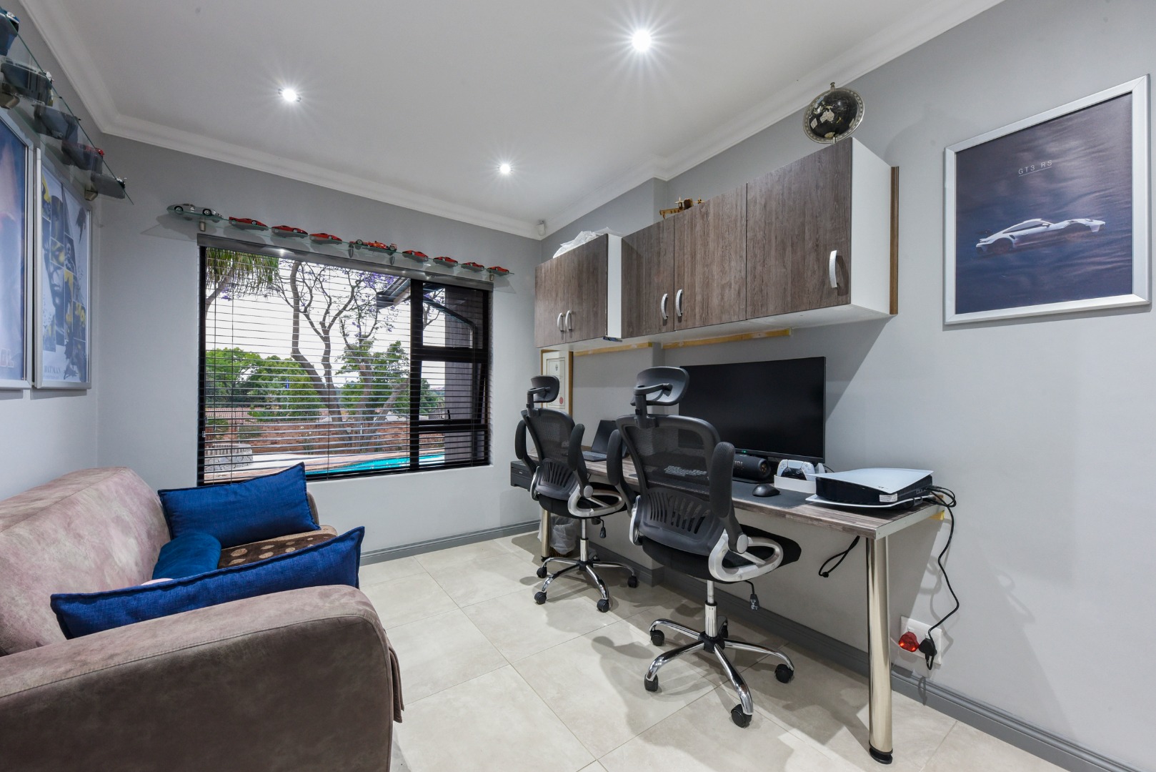 There is also a workshop at the back of the property, ideal for hobbies or easily converted into a home office, along with a Wendy house for storage and two carports that accommodates up to three cars.