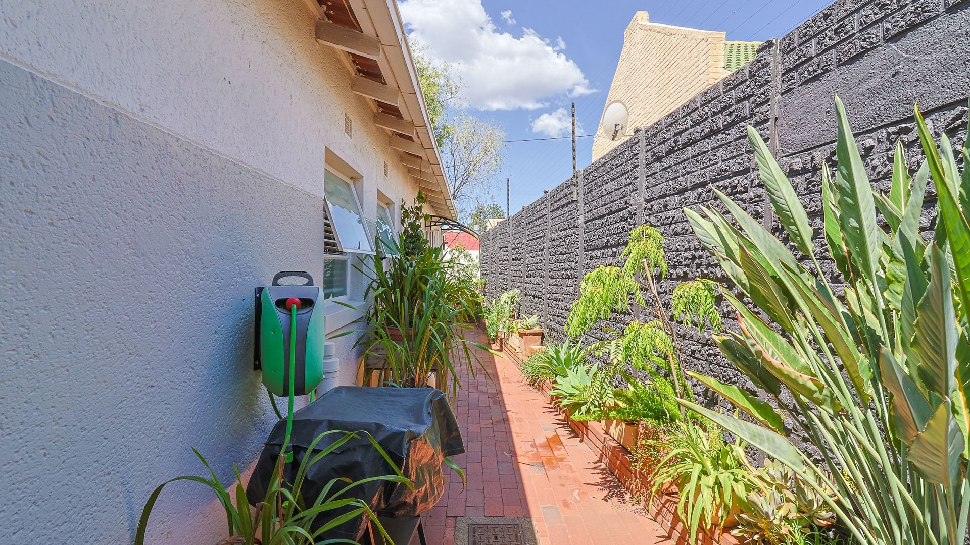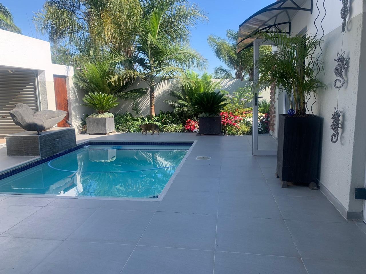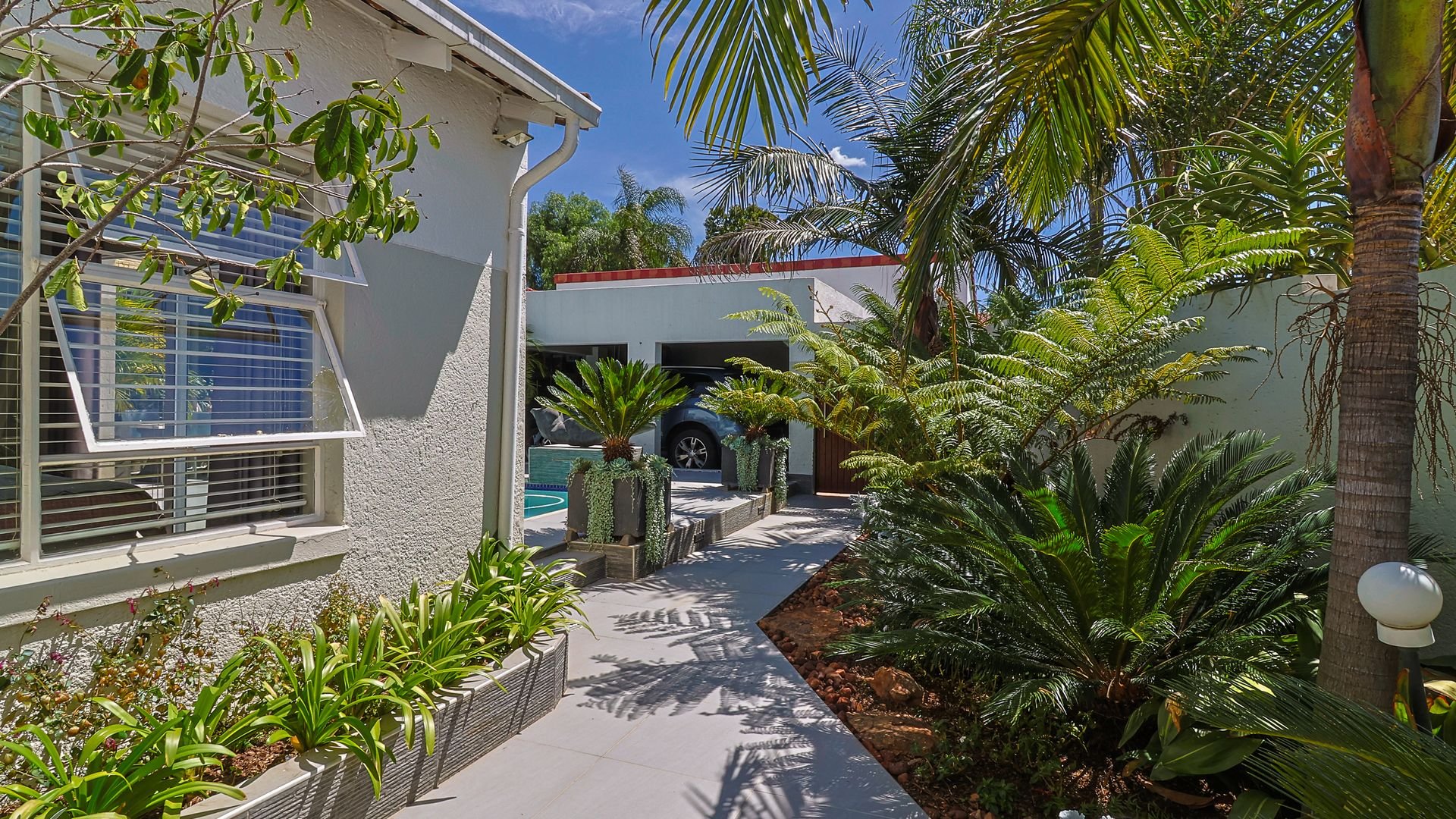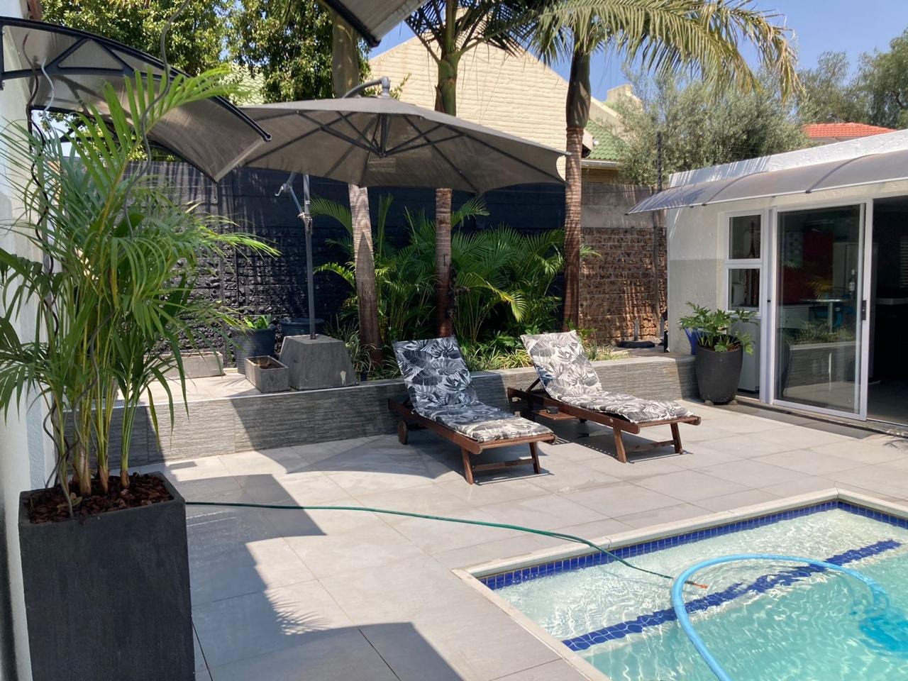 A double automated garage offers secure parking, while the solar-heated swimming pool and outdoor shower with both hot and cold water provide the ultimate in relaxation and entertainment.