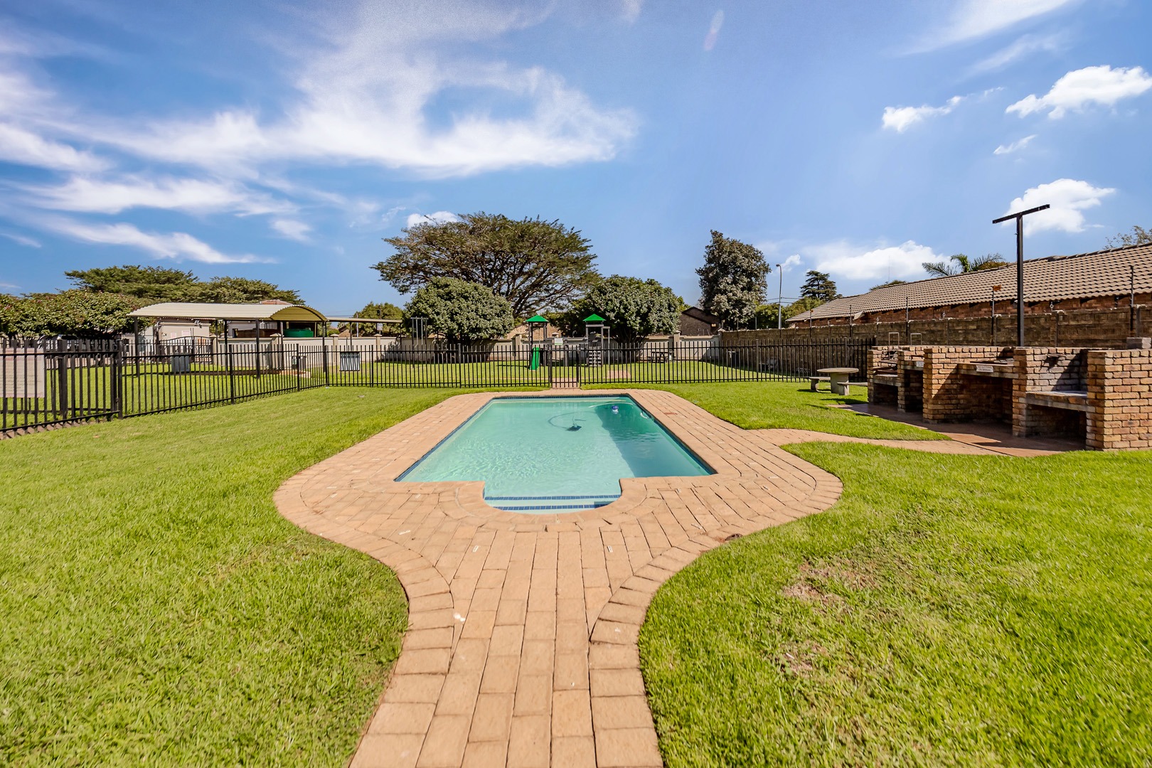 Situated within a secure, gated community, residents benefit from 24-hour security, electric fencing, security posts, and access gates, ensuring peace of mind. The meticulously maintained complex offers an array of communal amenities for a vibrant lifestyle. Enjoy leisurely afternoons by the sparkling pool, entertain guests at the clubhouse, or utilise the communal braai area. Families will appreciate the dedicated jungle gym and expansive, well-kept gardens.