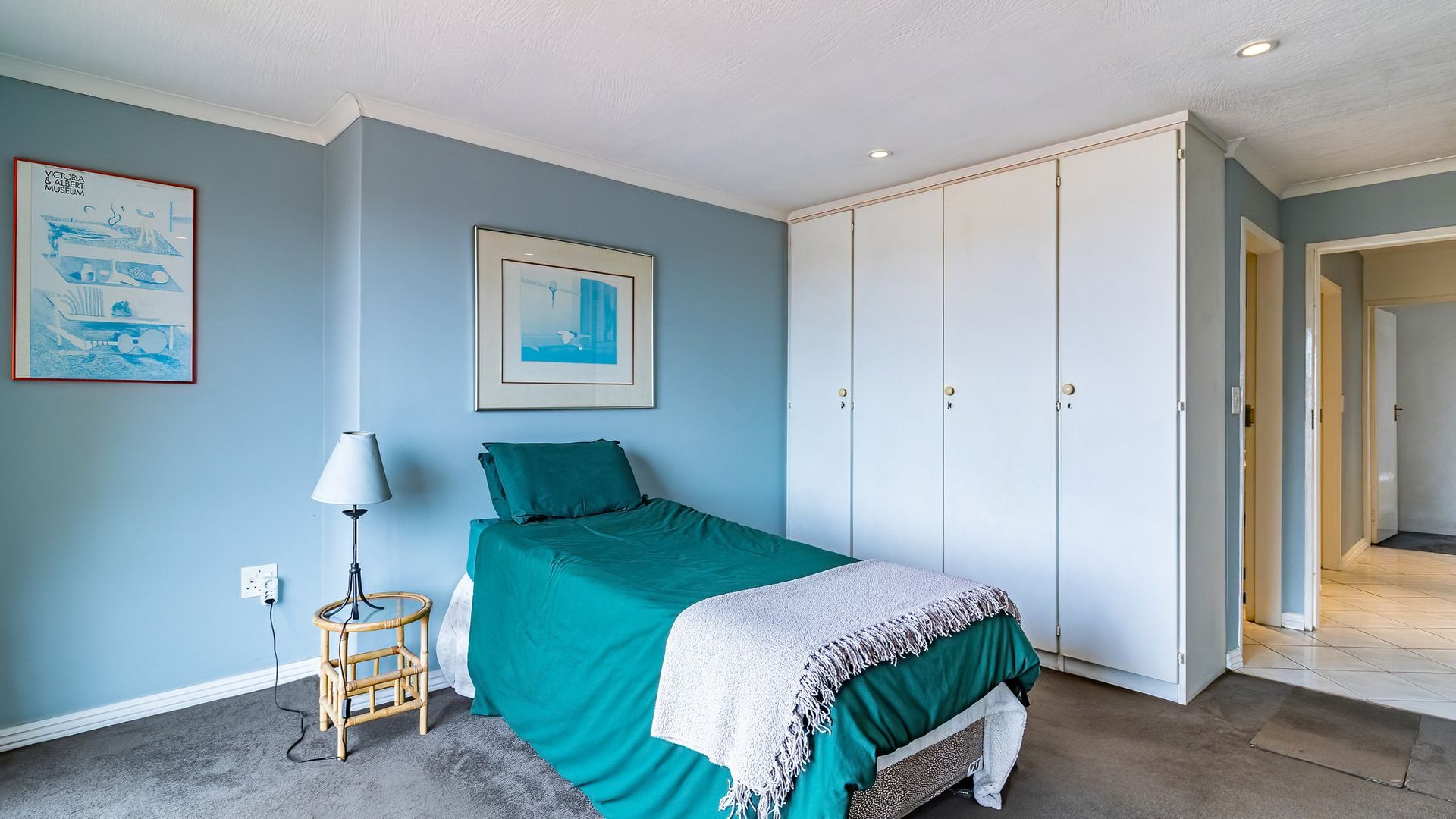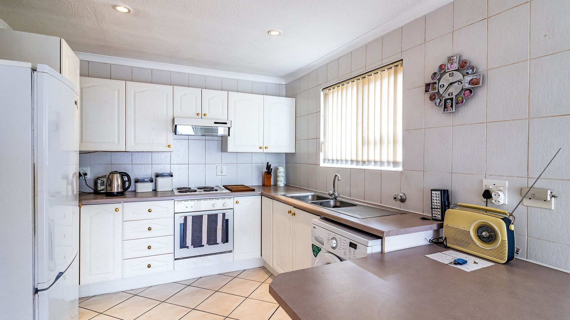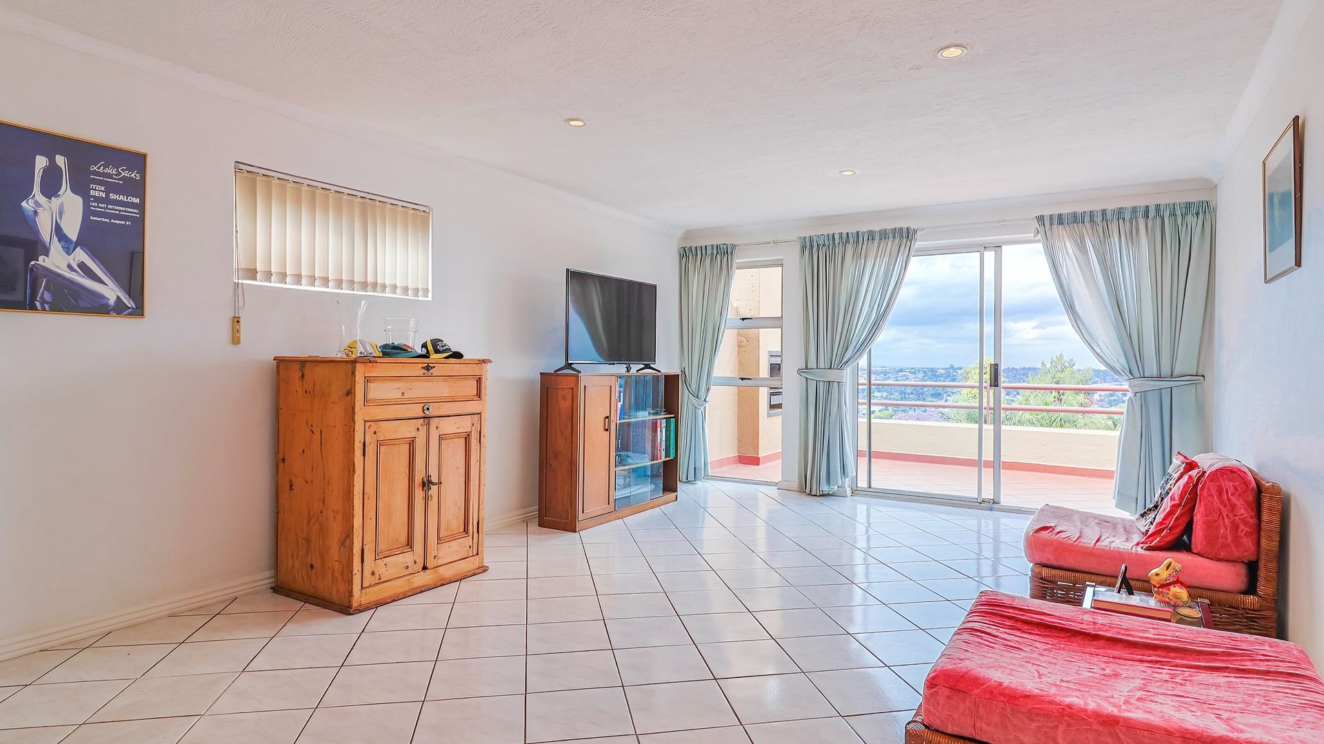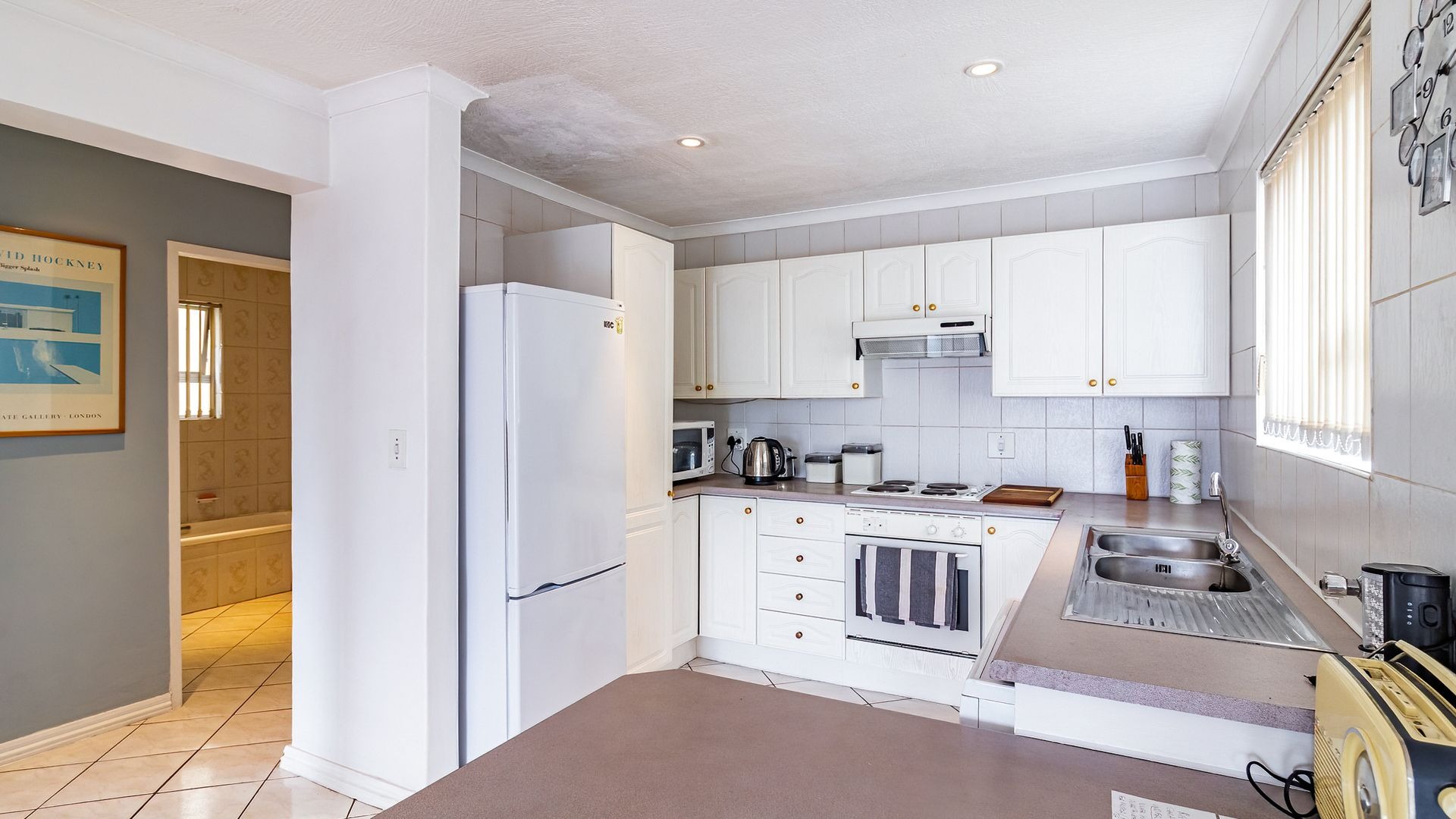 Enter through front door/security gate into a spacious tiled lounge and dining room, with sliders onto lovely balcony, built-in braai with magnificent view. Open-plan kitchen with breakfast bar, granite tops, under counter oven, solid hob, extractor, broom cupboard, space for washing machine and double sink. Lots of BIC. Large main bedroom, carpeted 4 Bic with slider to same tiled balcony, MES with shower, loo and vanity, 2nd bedroom carpeted 3 BIC , 2nd bathroom has bath loo and basin. 2 garages, Visitors parking. 24hr guard. Not pet friendly.