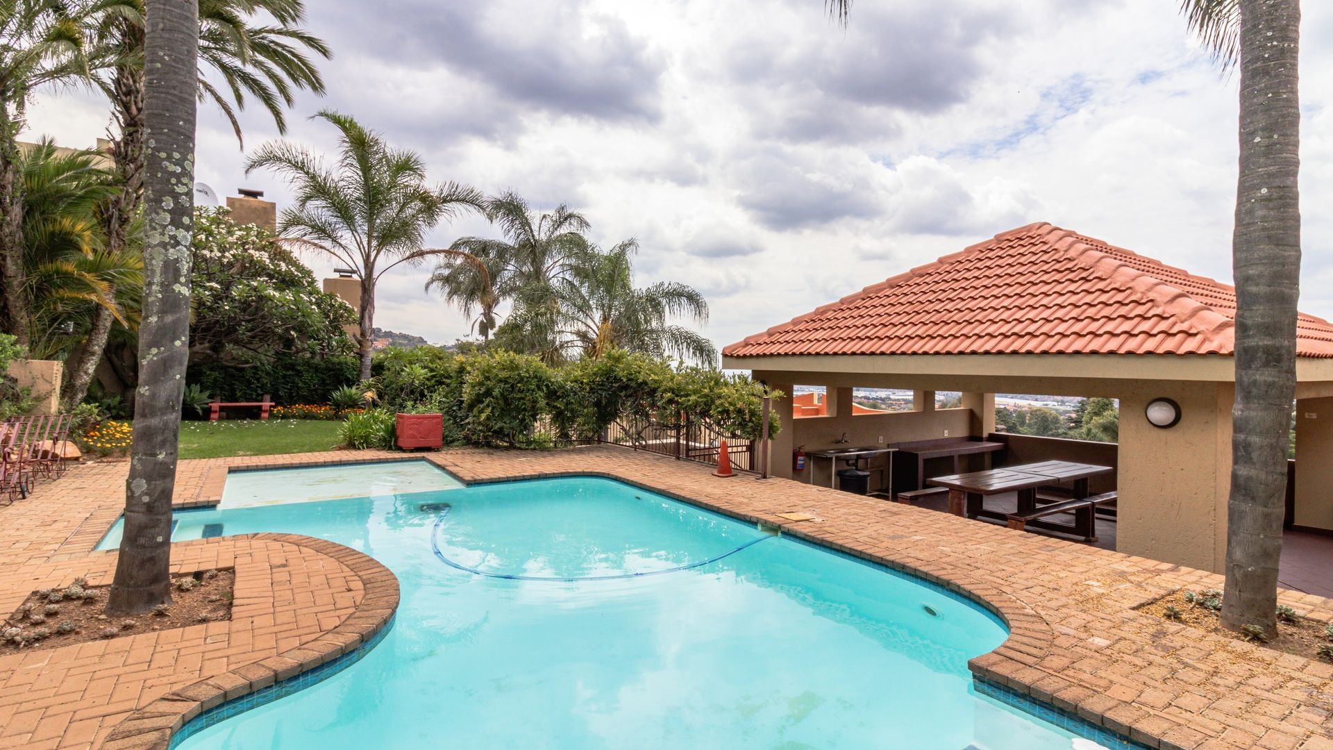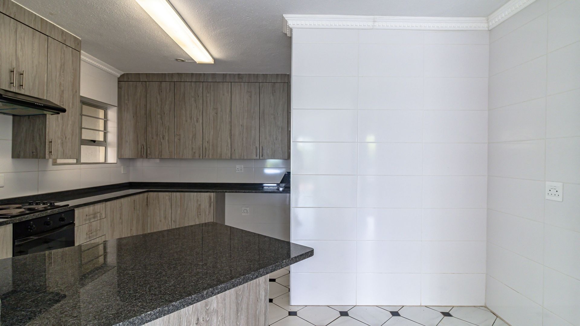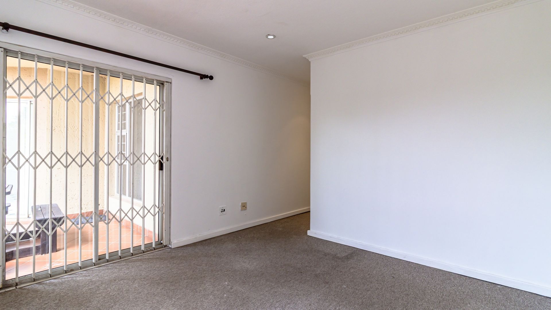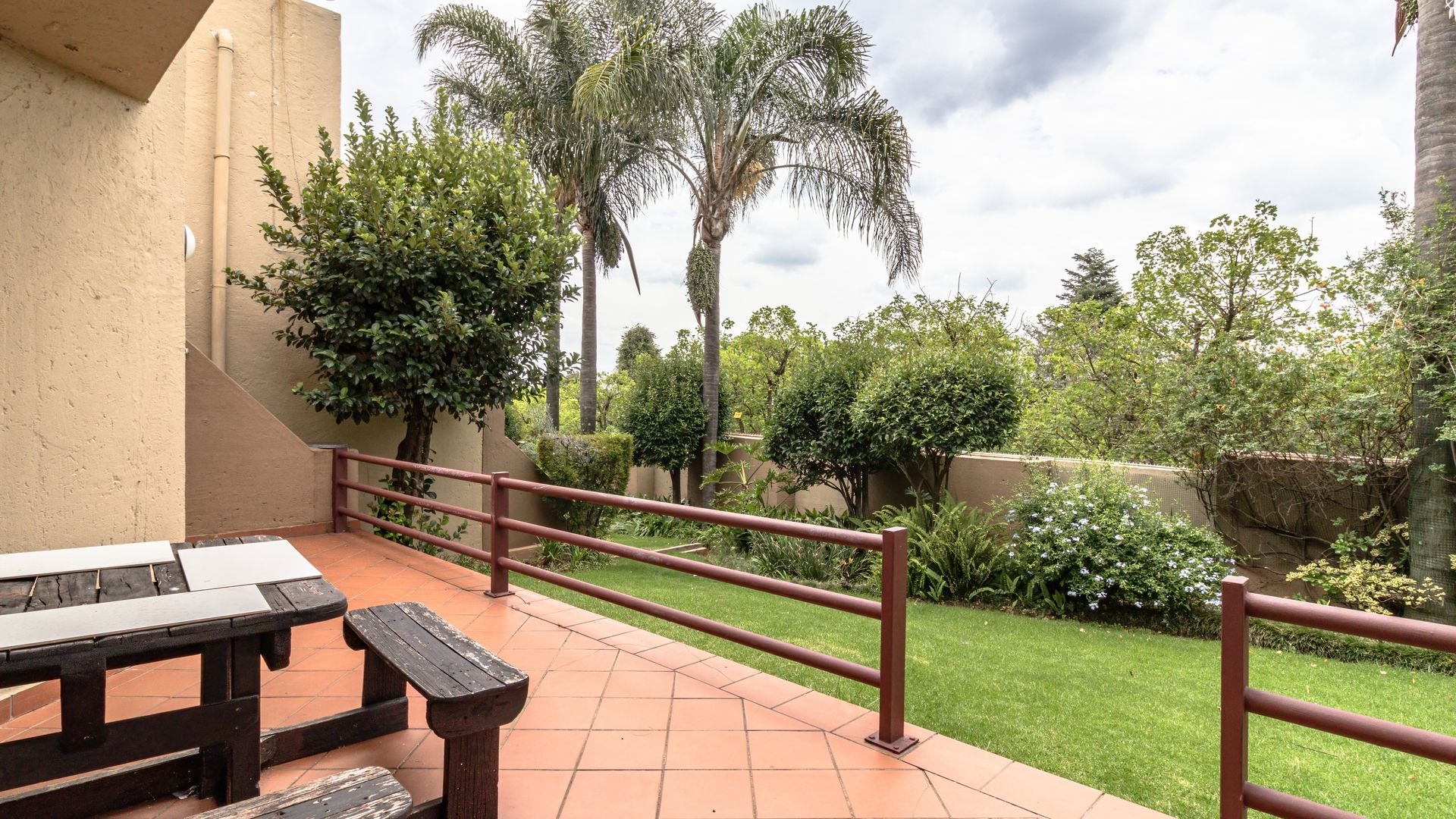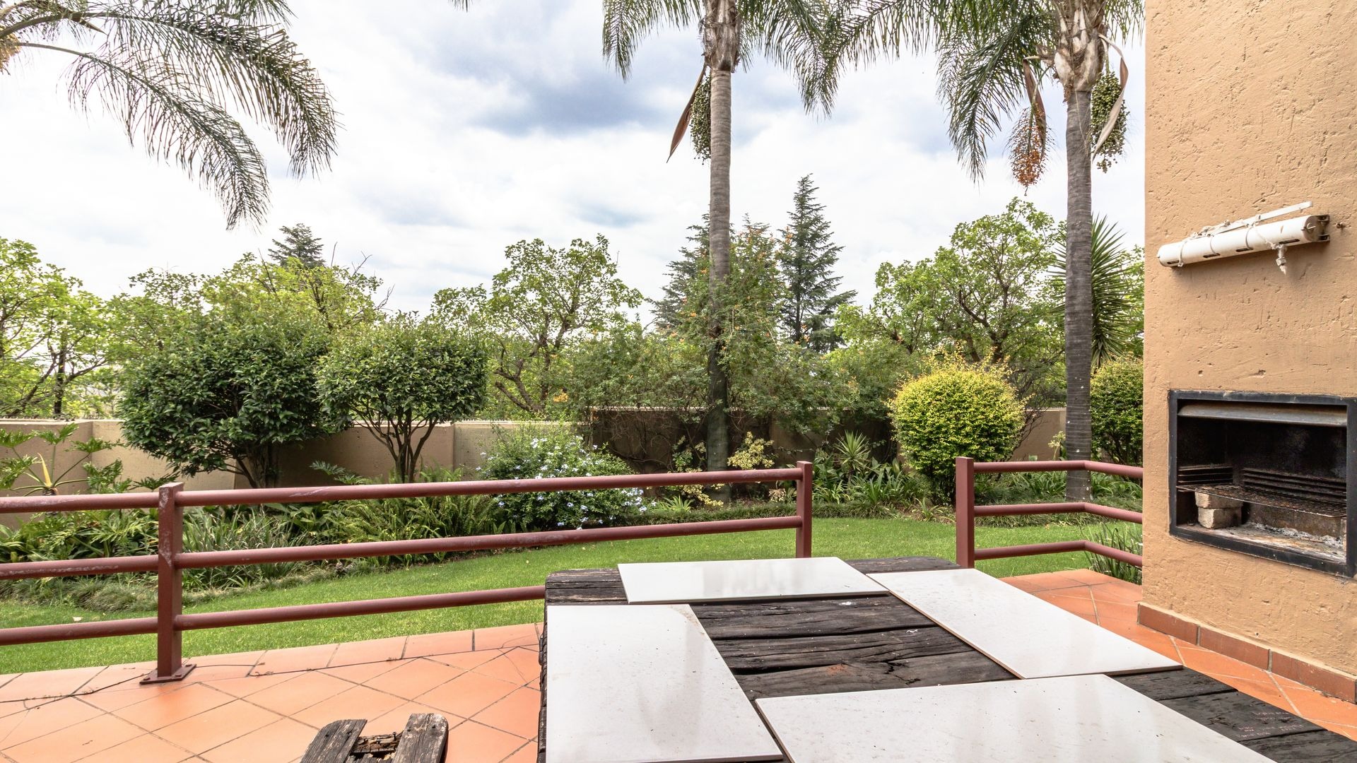 Front entrance with security gate leading to spacious, tiled lounge and dining area with slider/security gate to patio with built-in braai and communal garden. Open-plan kitchen, granite tops, space for double door fridge, space for washing machine and dishwasher. Under counter oven and solid hob, extractor, breakfast bar, double sink. Lots of cupboards. Main bedroom (carpeted) (walk-in dressing room) and sliders onto patio, MES has Jacuzzi bath, (not working), loo and double basin, 2nd bedroom (carpeted) (3 BIC). 3rd Bedroom, (Carpeted) (3BIC) Bathroom has a shower, vanity and toilet. Linen cupboard. Double garage (auto). Facilities include complex pool and lapa. 24 hr guard at entrance.
