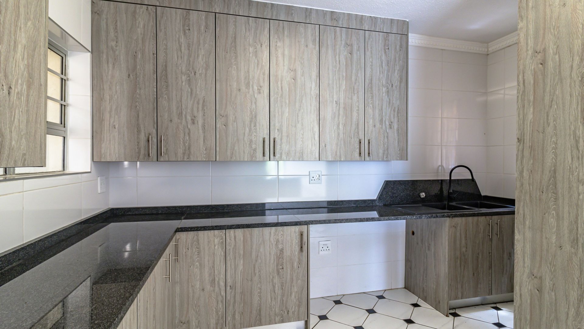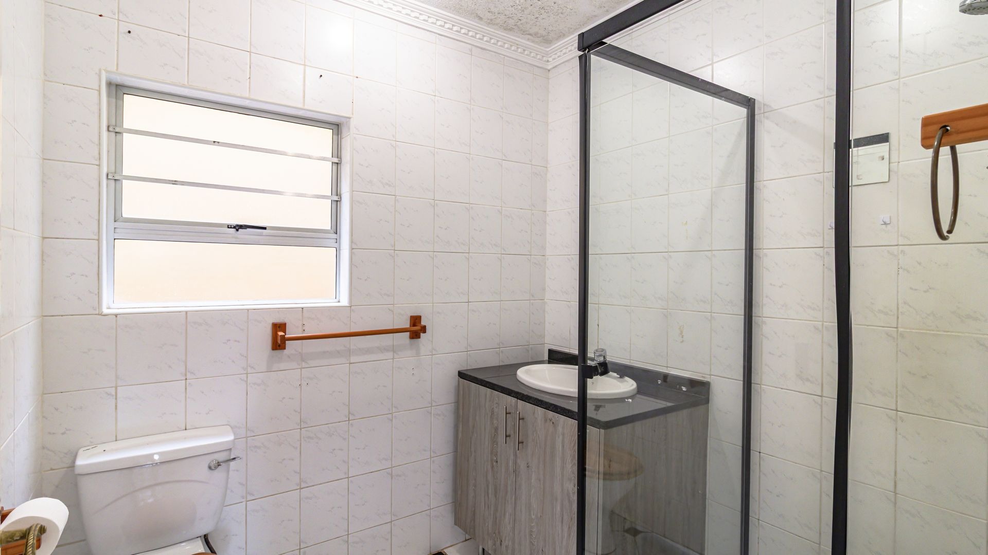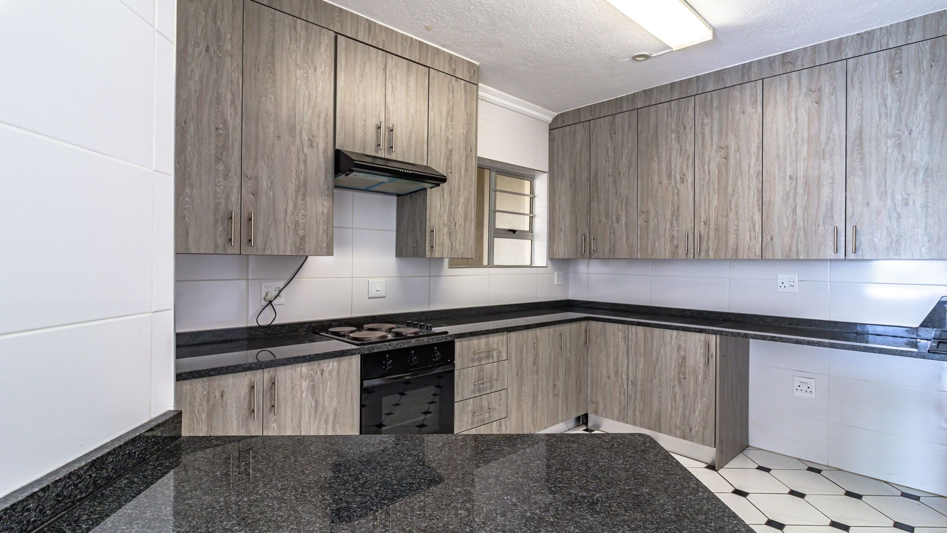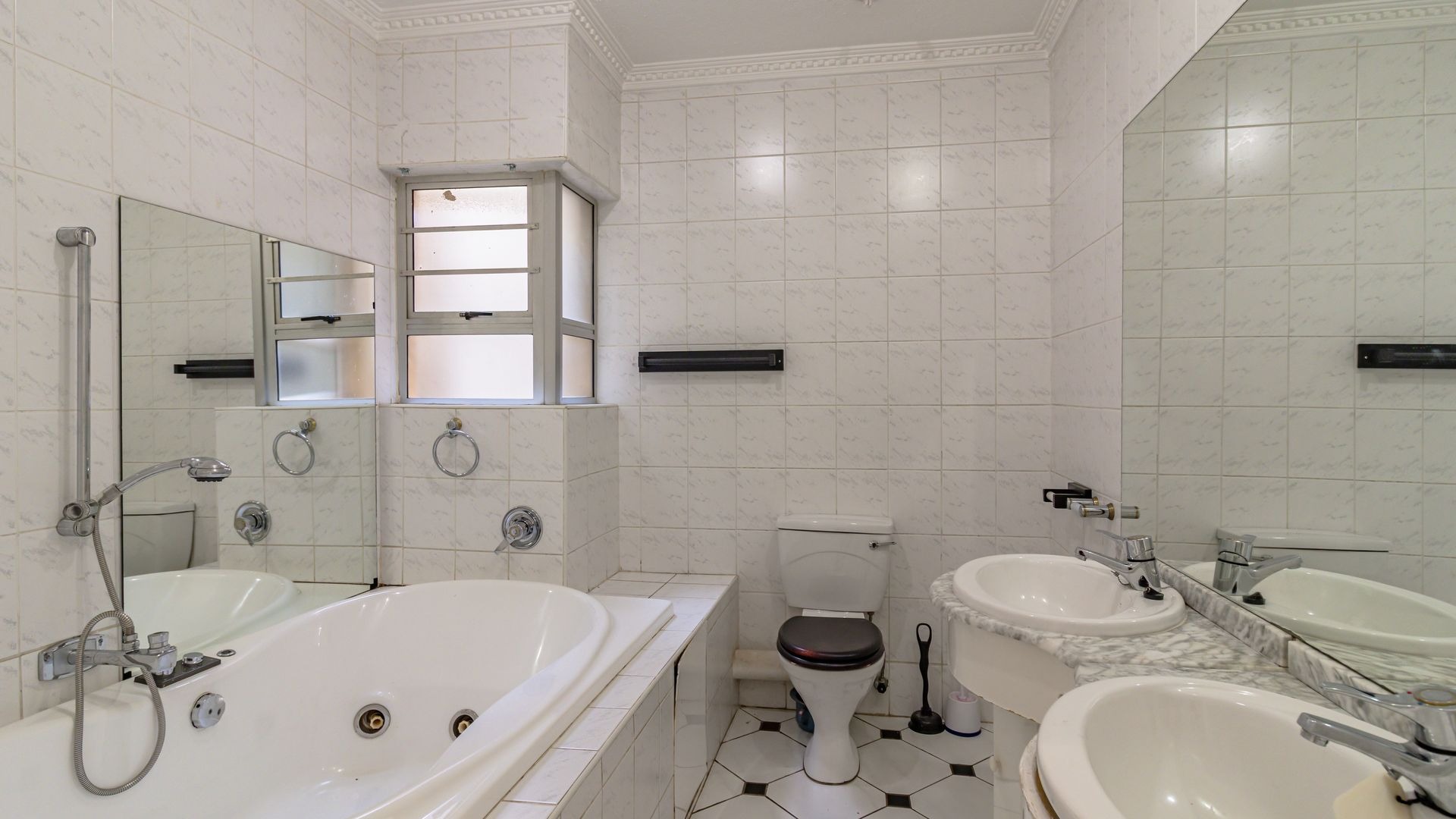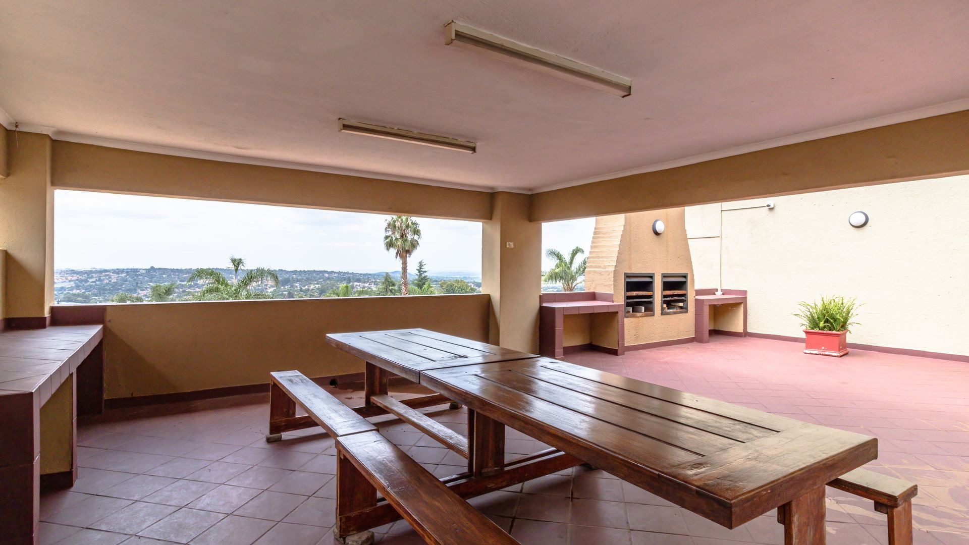 Front entrance with security gate leading to spacious, tiled lounge and dining area with slider/security gate to patio with built-in braai and communal garden. Open-plan kitchen, granite tops, space for double door fridge, space for washing machine and dishwasher. Under counter oven and solid hob, extractor, breakfast bar, double sink. Lots of cupboards. Main bedroom (carpeted) (walk-in dressing room) and sliders onto patio, MES has Jacuzzi bath, (not working), loo and double basin, 2nd bedroom (carpeted) (3 BIC). 3rd Bedroom, (Carpeted) (3BIC) Bathroom has a shower, vanity and toilet. Linen cupboard. Double garage (auto). Facilities include complex pool and lapa. 24 hr guard at entrance.