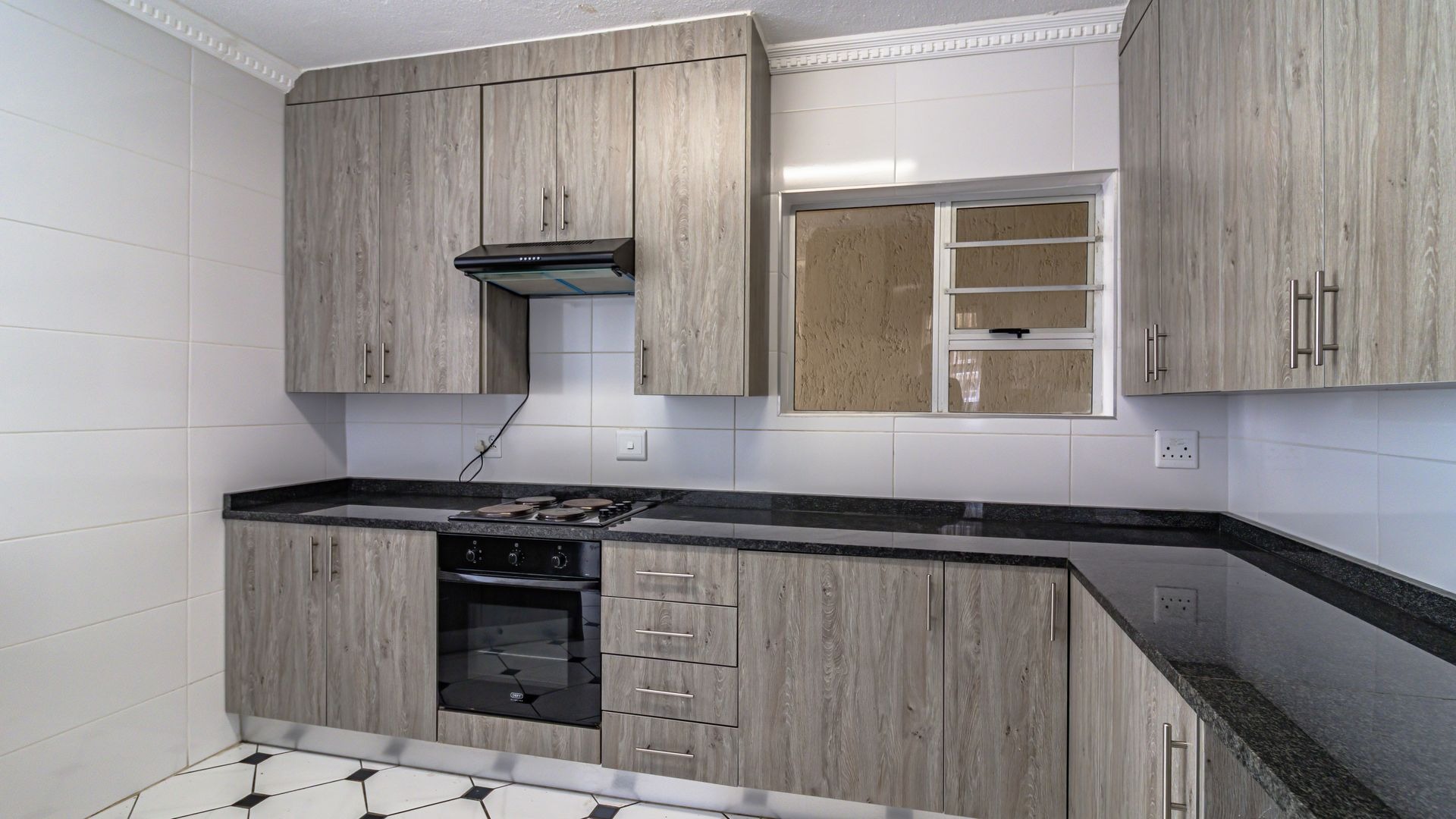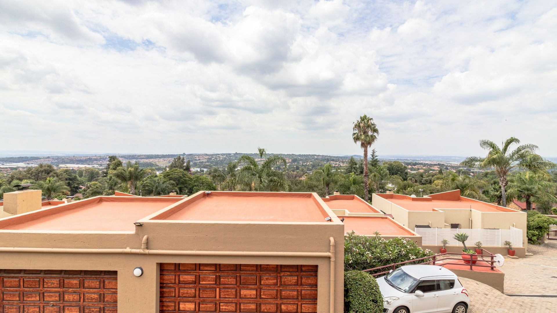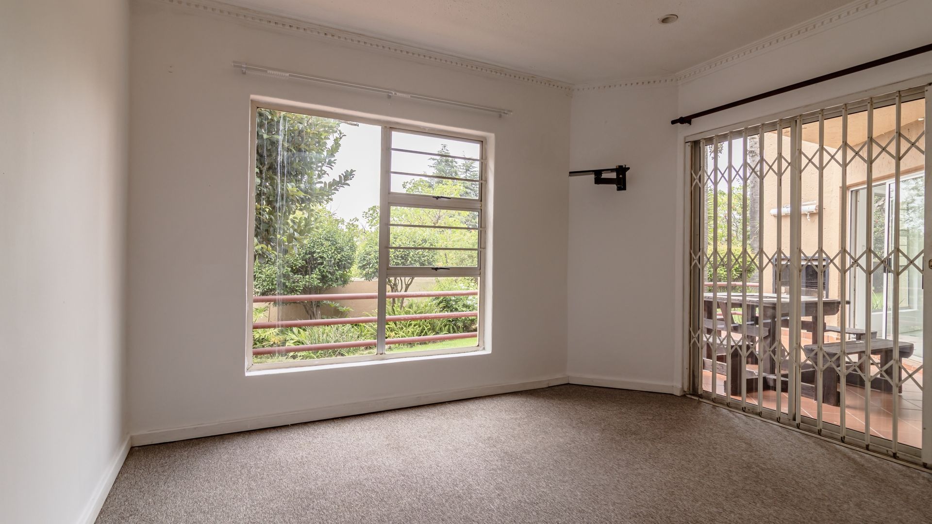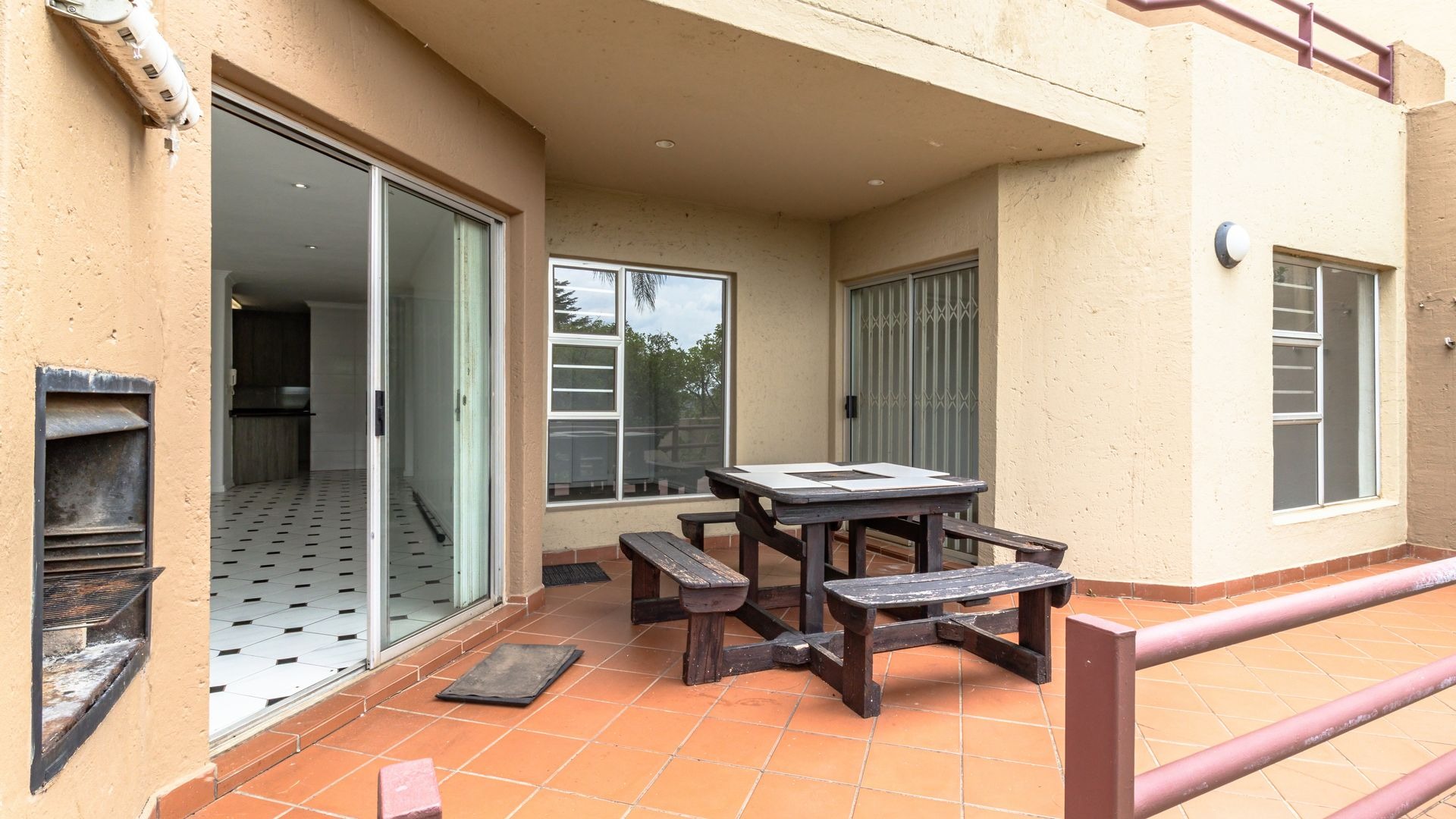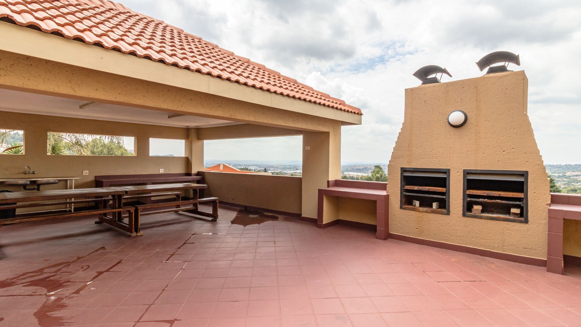 Front entrance with security gate leading to spacious, tiled lounge and dining area with slider/security gate to patio with built-in braai and communal garden. Open-plan kitchen, granite tops, space for double door fridge, space for washing machine and dishwasher. Under counter oven and solid hob, extractor, breakfast bar, double sink. Lots of cupboards. Main bedroom (carpeted) (walk-in dressing room) and sliders onto patio, MES has Jacuzzi bath, (not working), loo and double basin, 2nd bedroom (carpeted) (3 BIC). 3rd Bedroom, (Carpeted) (3BIC) Bathroom has a shower, vanity and toilet. Linen cupboard. Double garage (auto). Facilities include complex pool and lapa. 24 hr guard at entrance.