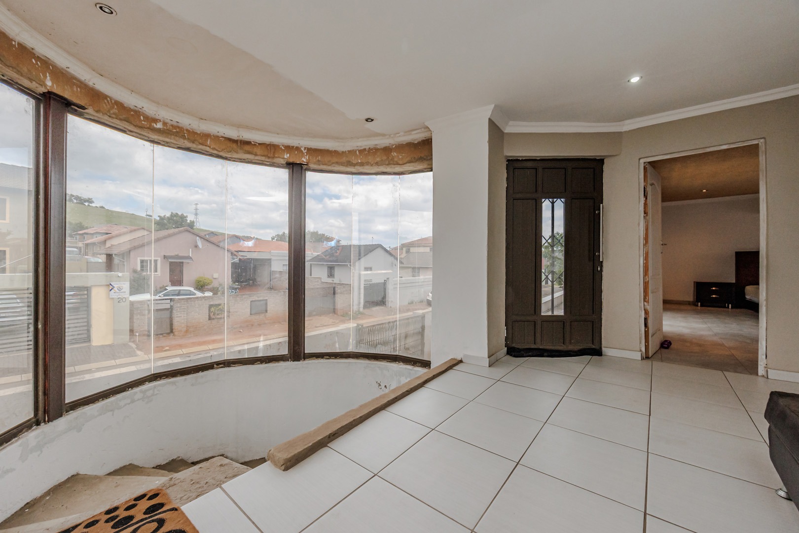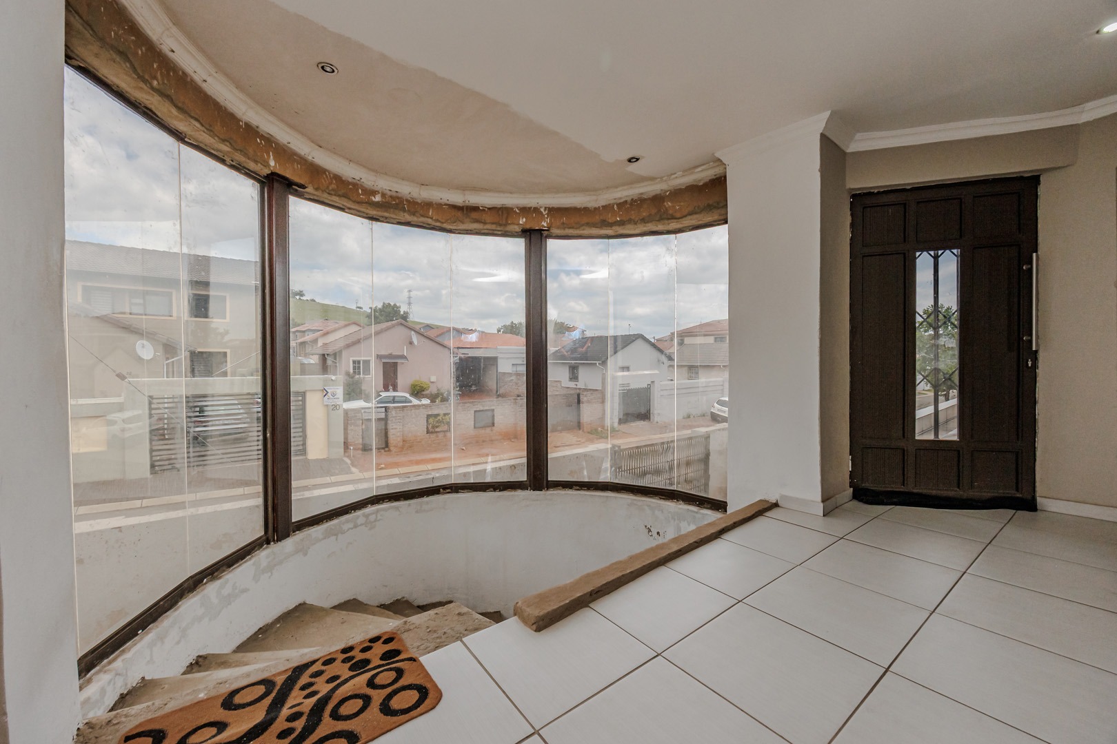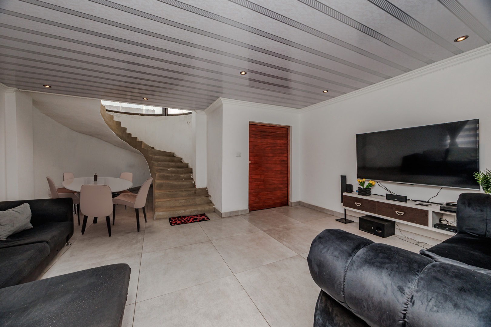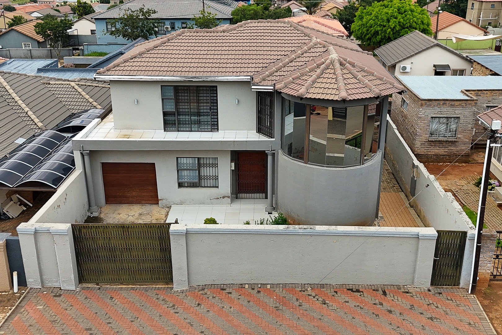 This modern double-story home in Cosmo City presents a striking architectural design with a distinctive curved glass window making it stand out to the rest. The property offer 4 bedrooms(2 Up & 2 Downstairs) and 3 bathrooms.