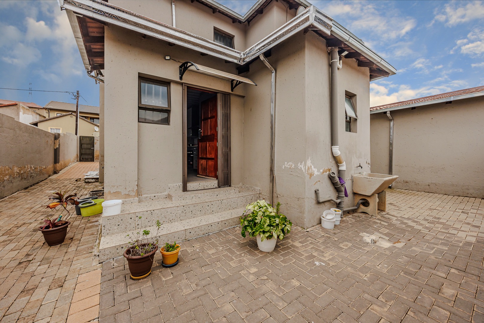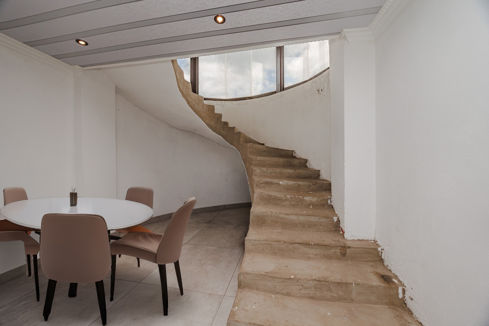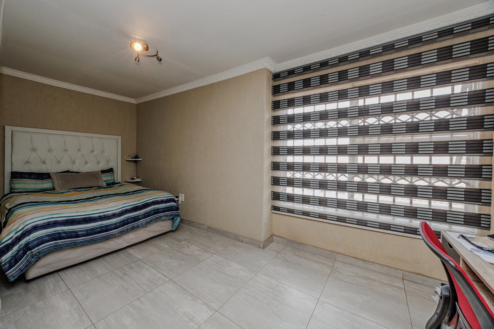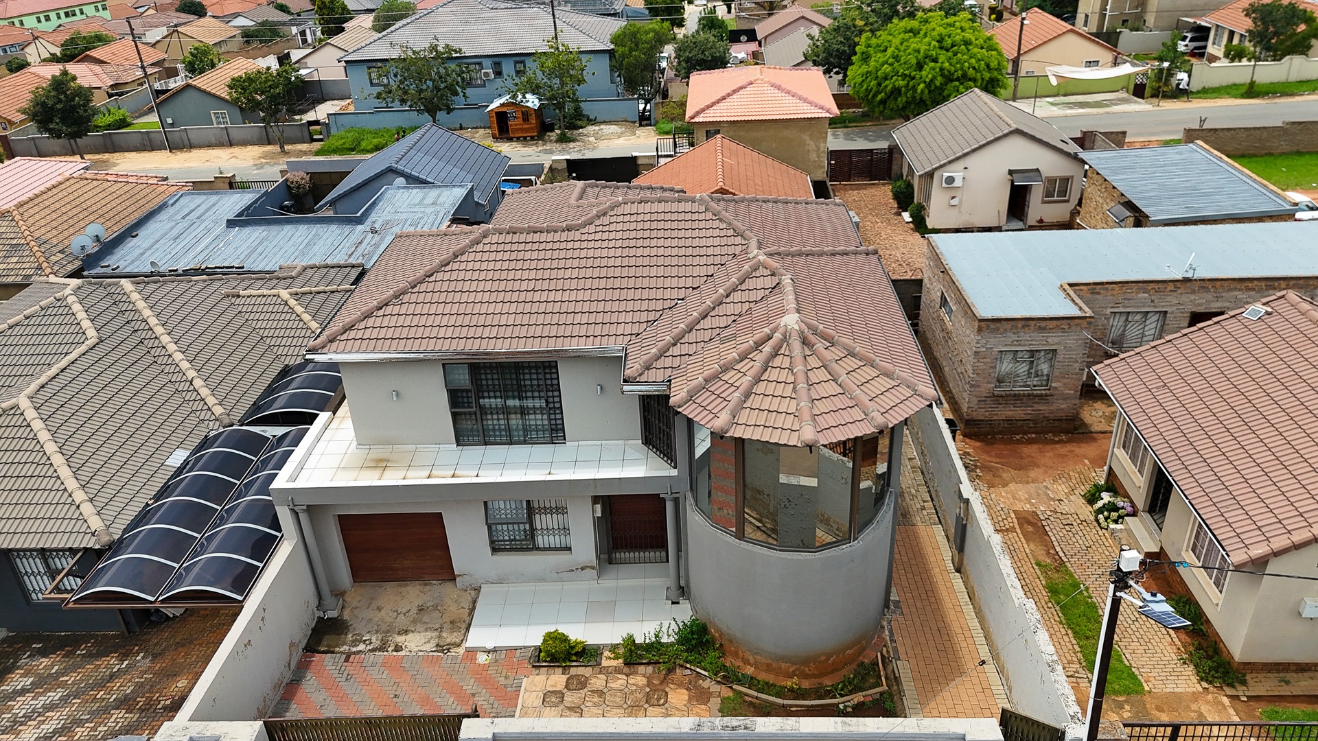 This modern double-story home in Cosmo City presents a striking architectural design with a distinctive curved glass window making it stand out to the rest. The property offer 4 bedrooms(2 Up & 2 Downstairs) and 3 bathrooms.