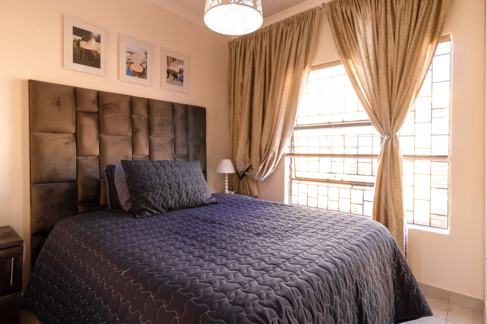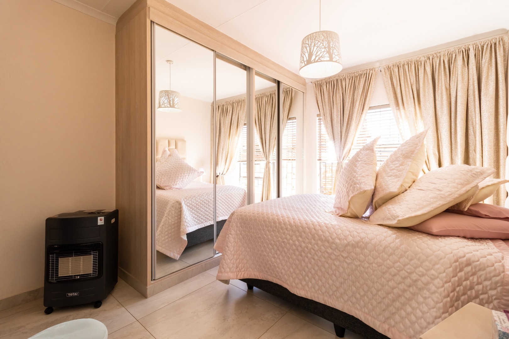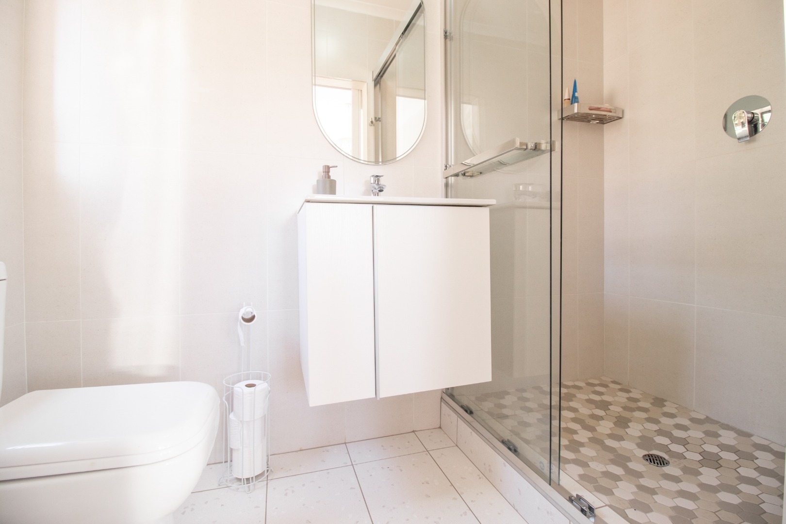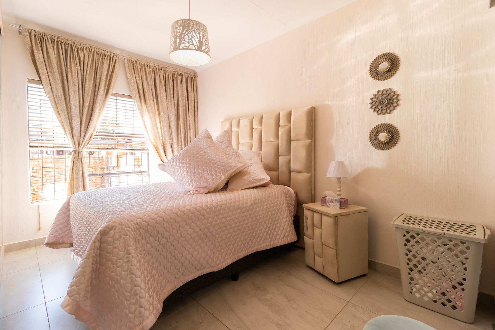 2 spacious bedrooms with built-in cupboards and tiled floors.