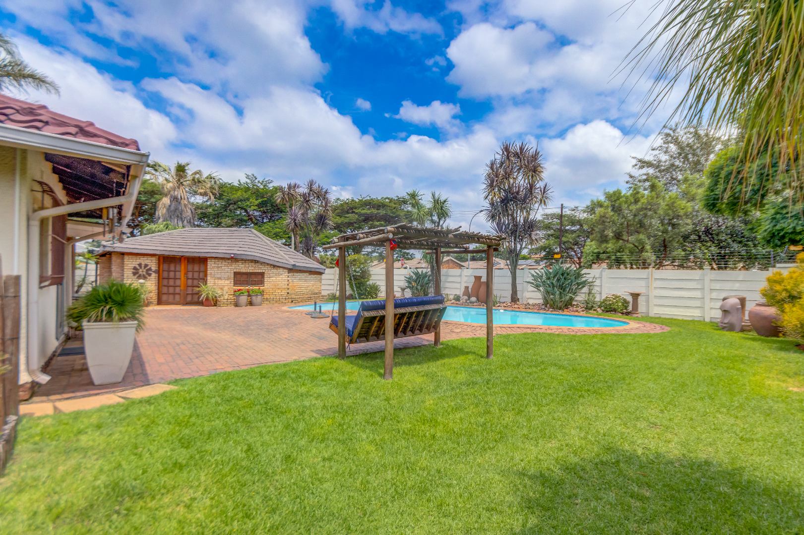 Outside, enjoy a sparkling swimming pool, a closed lapa, and a dedicated boma area—perfect for relaxed outdoor entertaining.