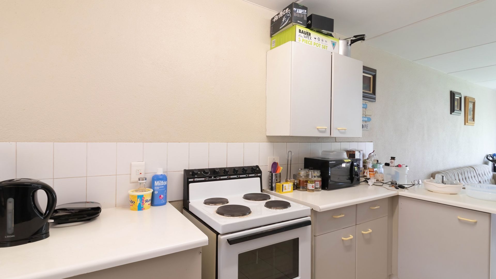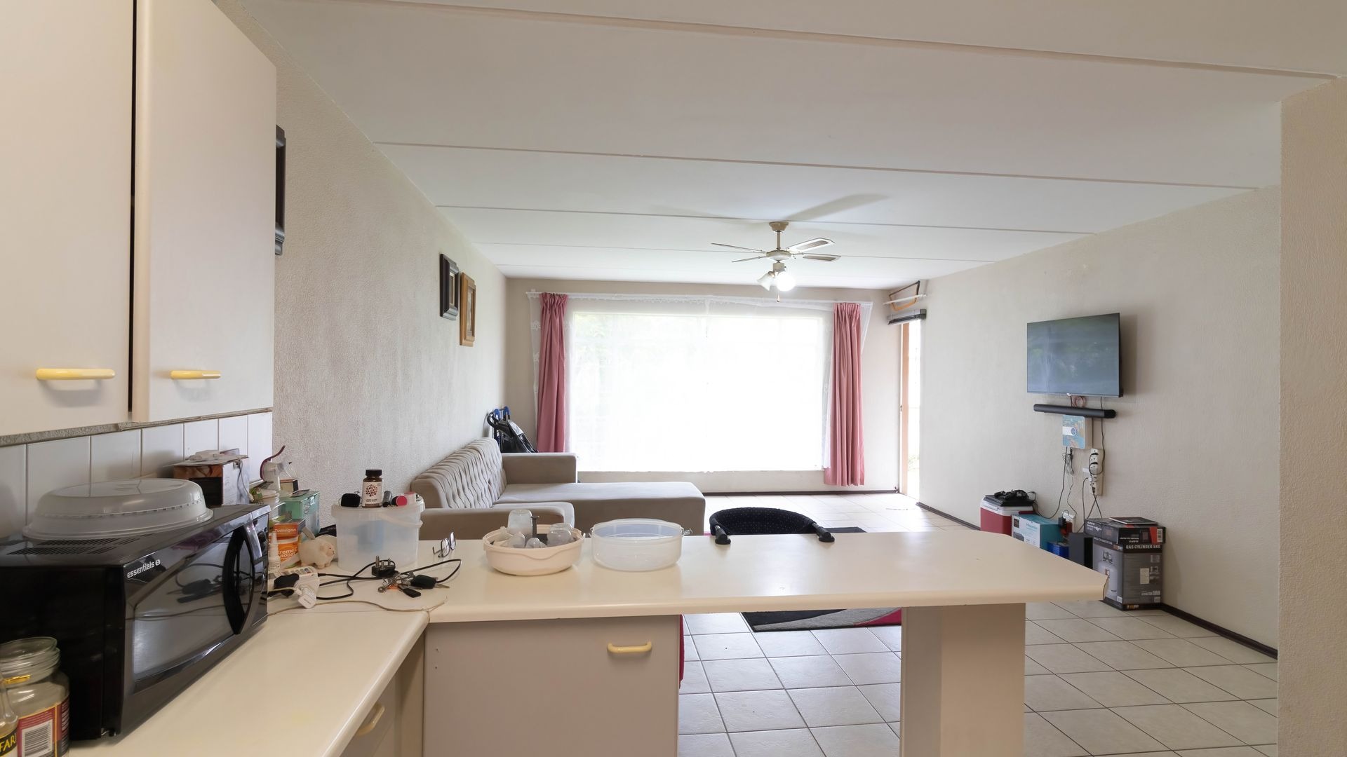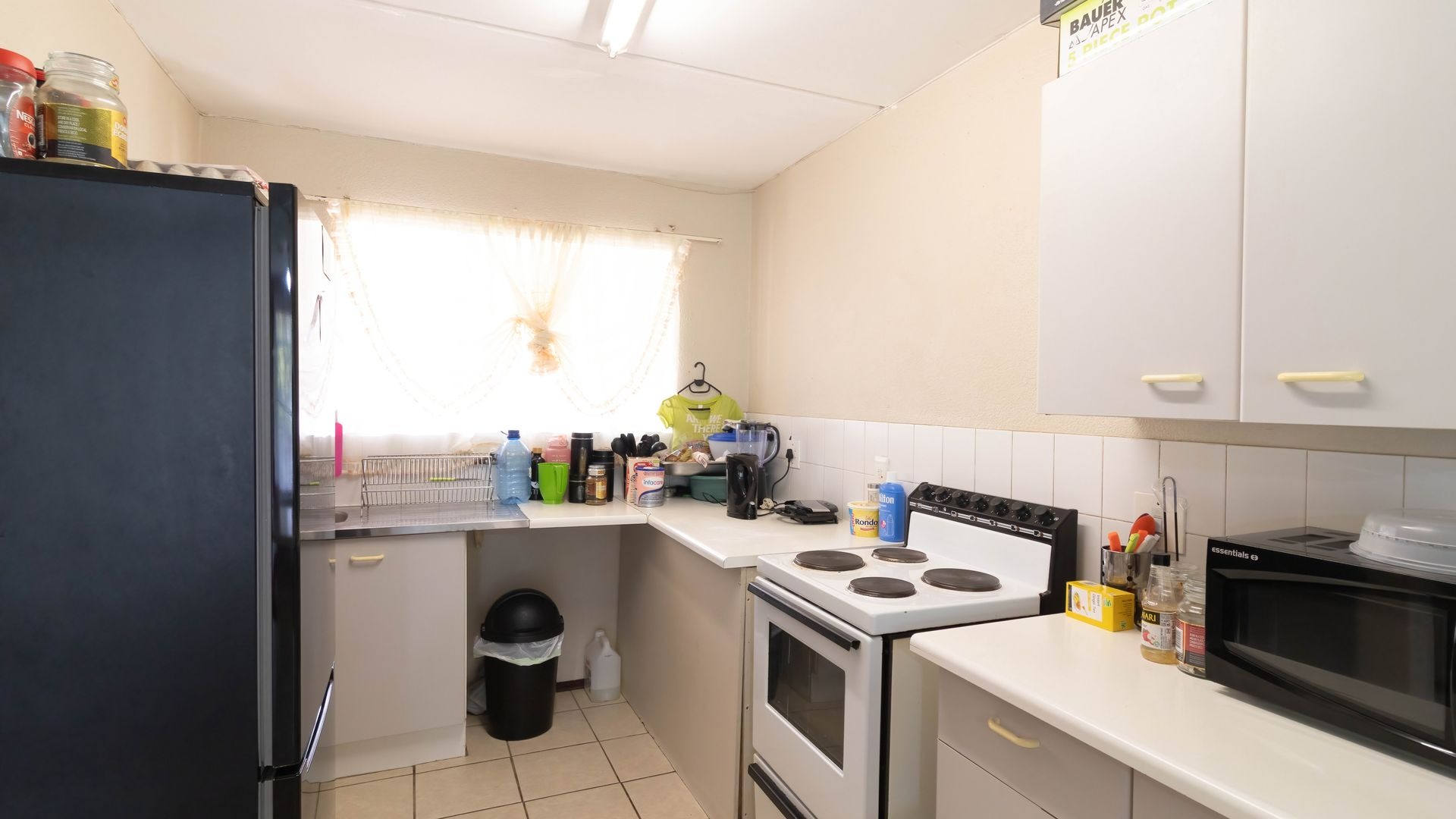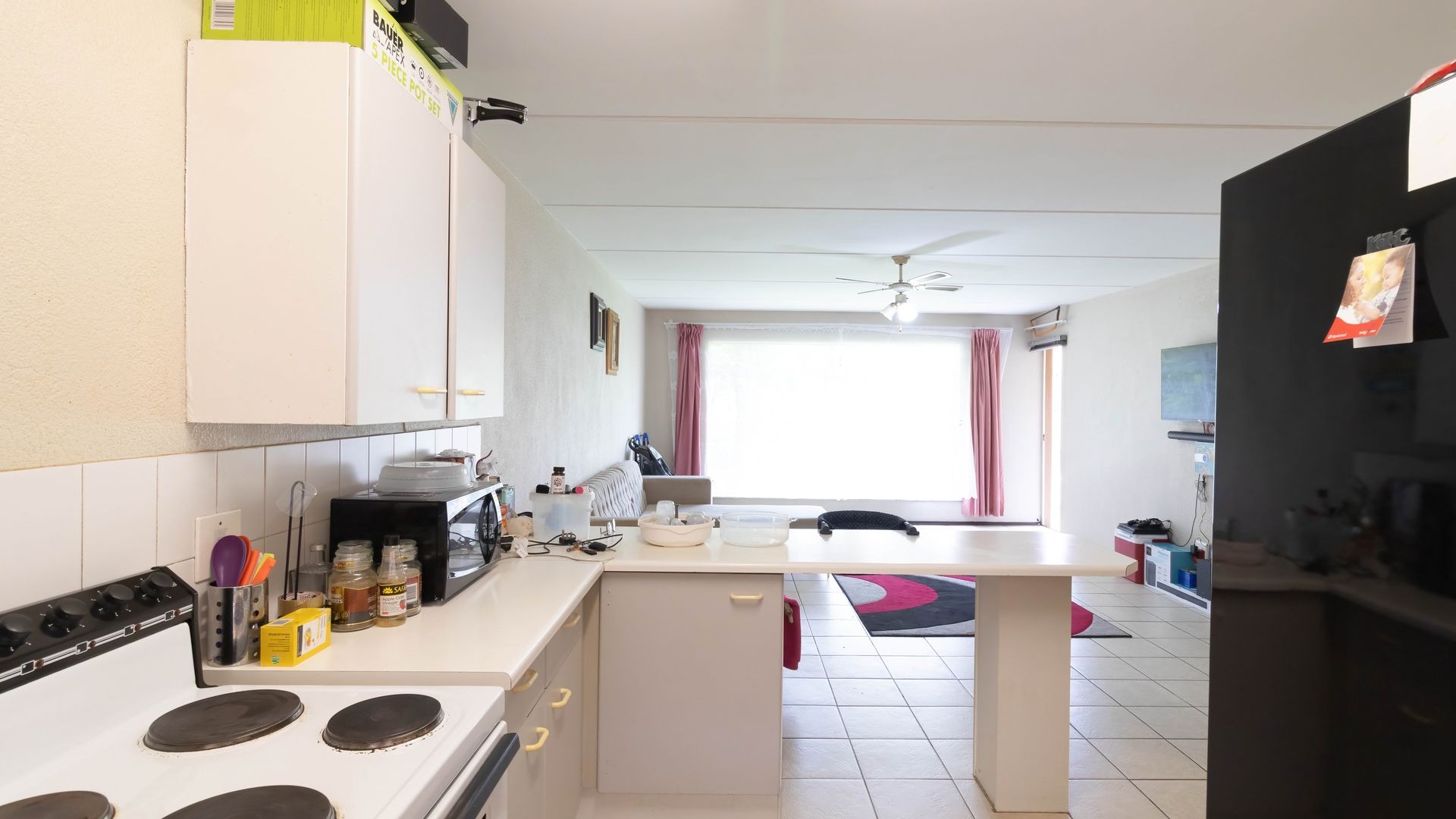 The kitchen is a comfortable size with direct sun coming through the kitchen window