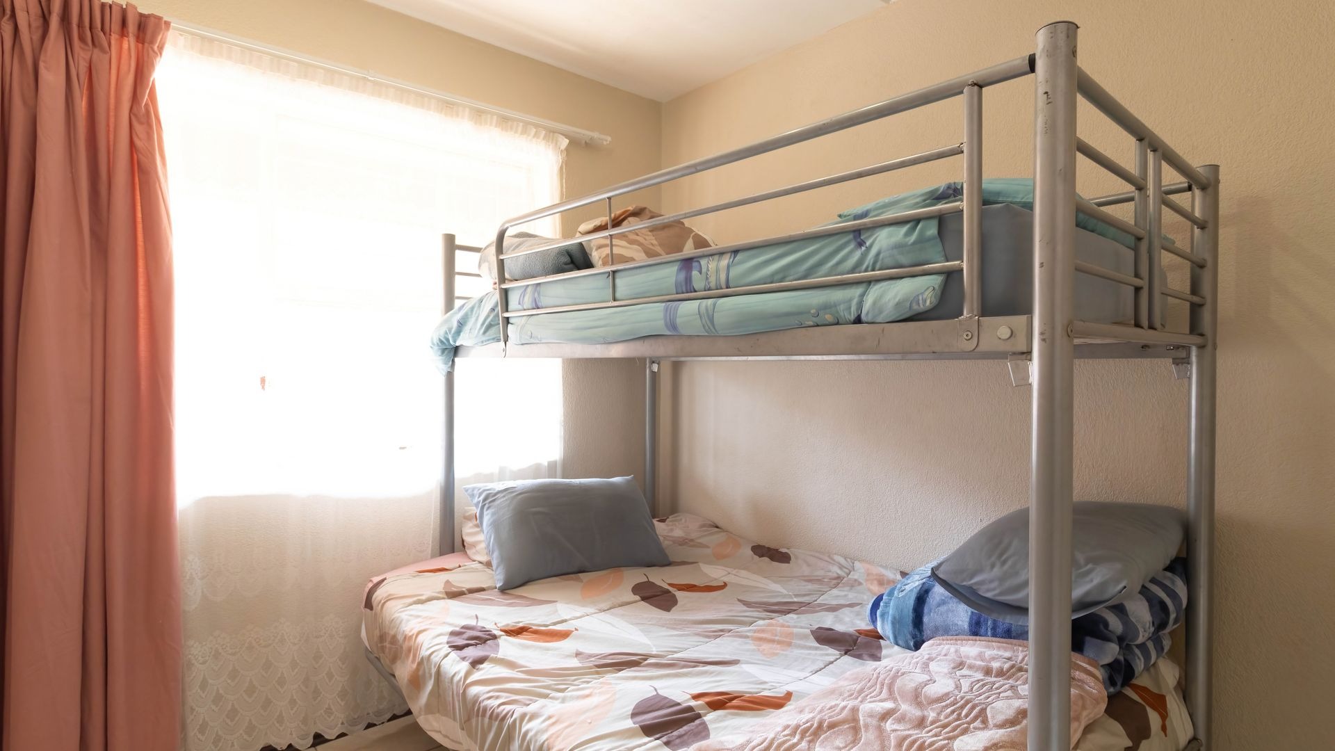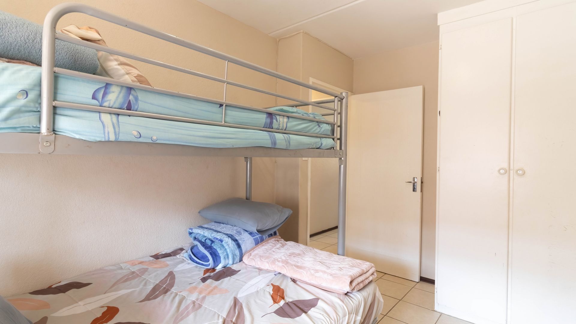 The 2nd bedroom is smaller in size and can accommodate one single or a double bunk bed or be converted into a workstation