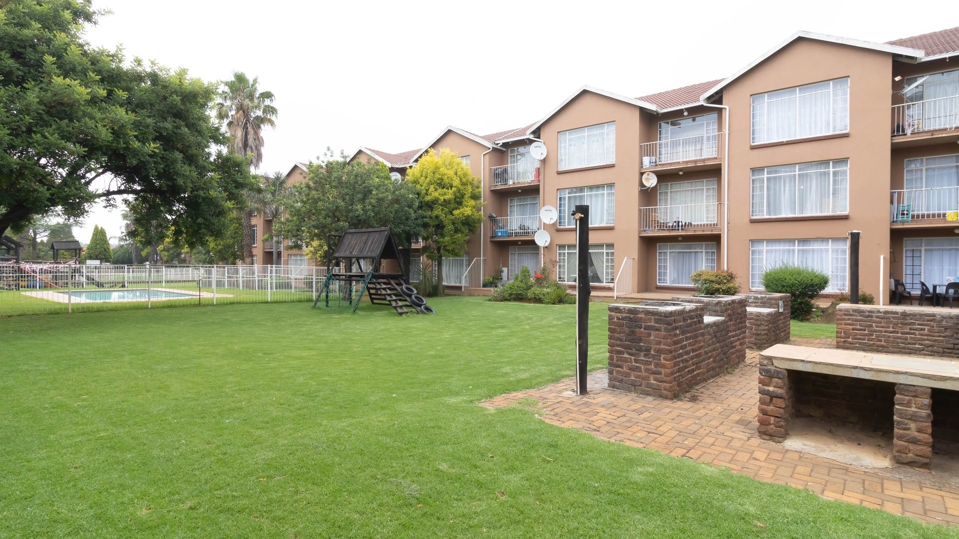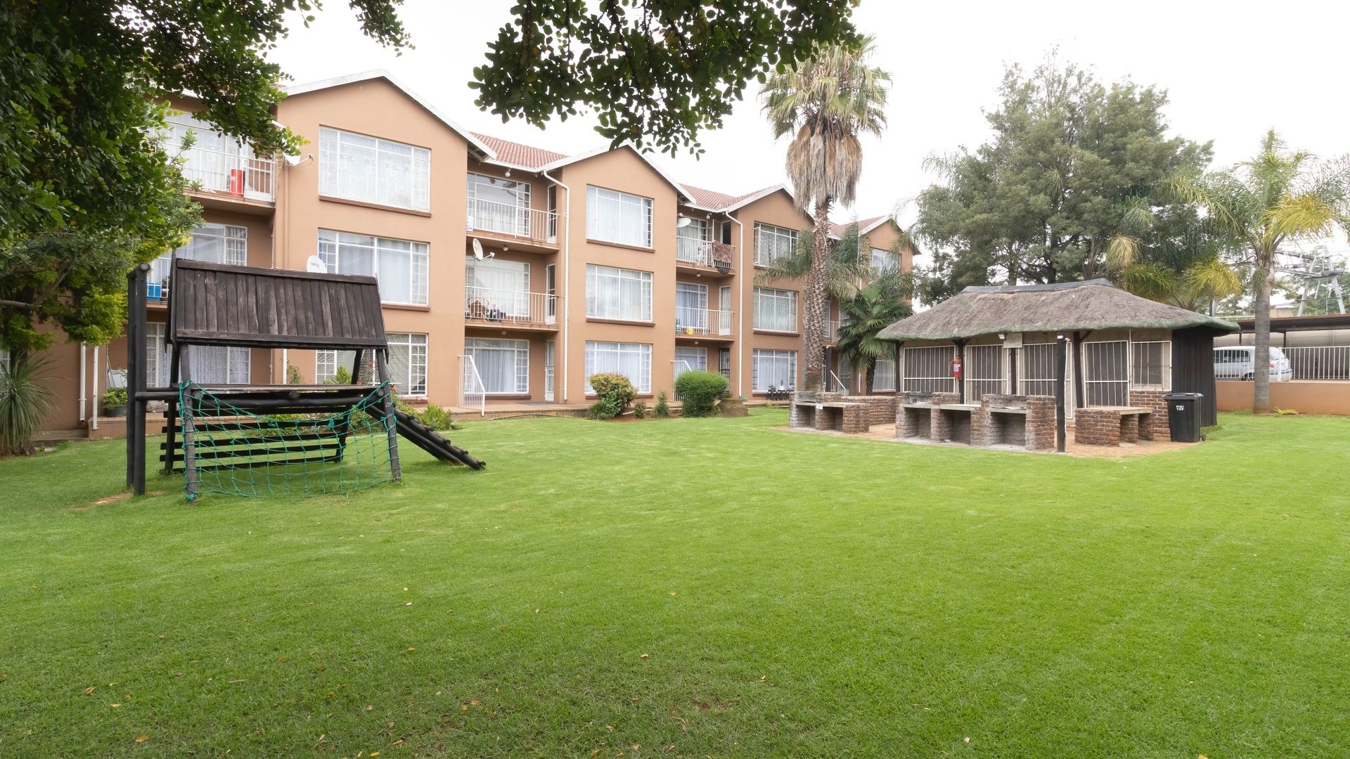 The communal gardens include a clubhouse and braai area for family get-togethers