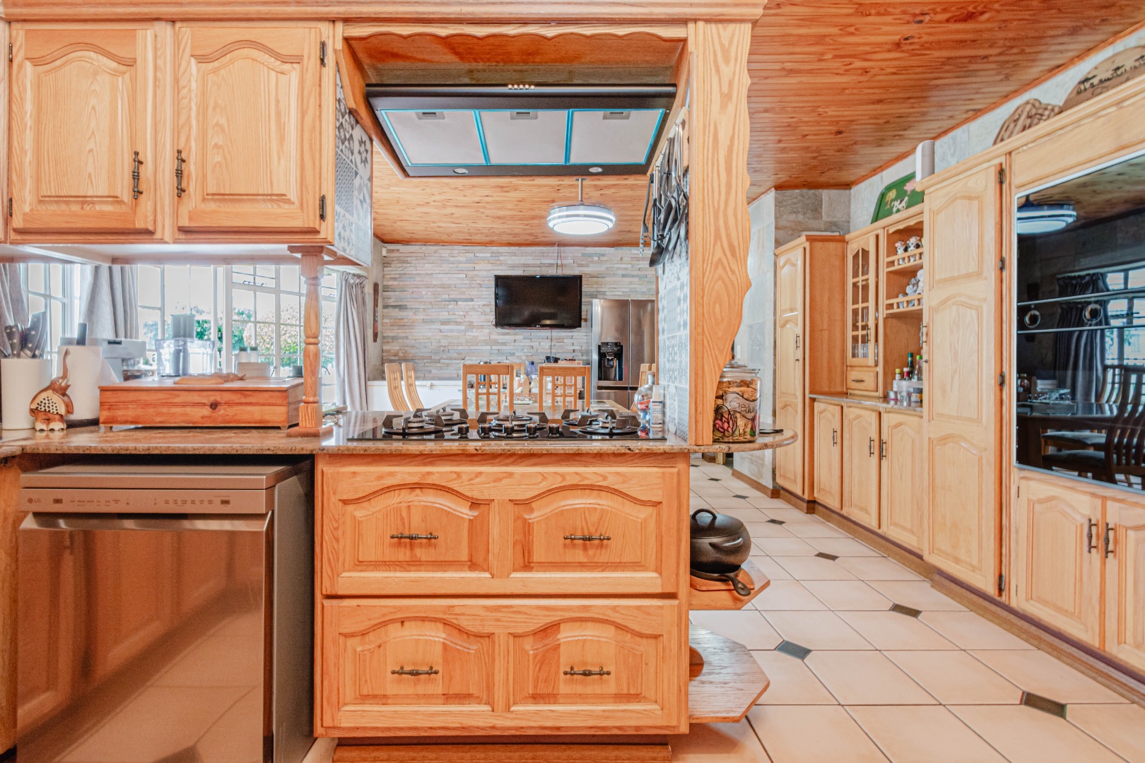 - Solid wood kitchen featuring granite countertops and gas cooking